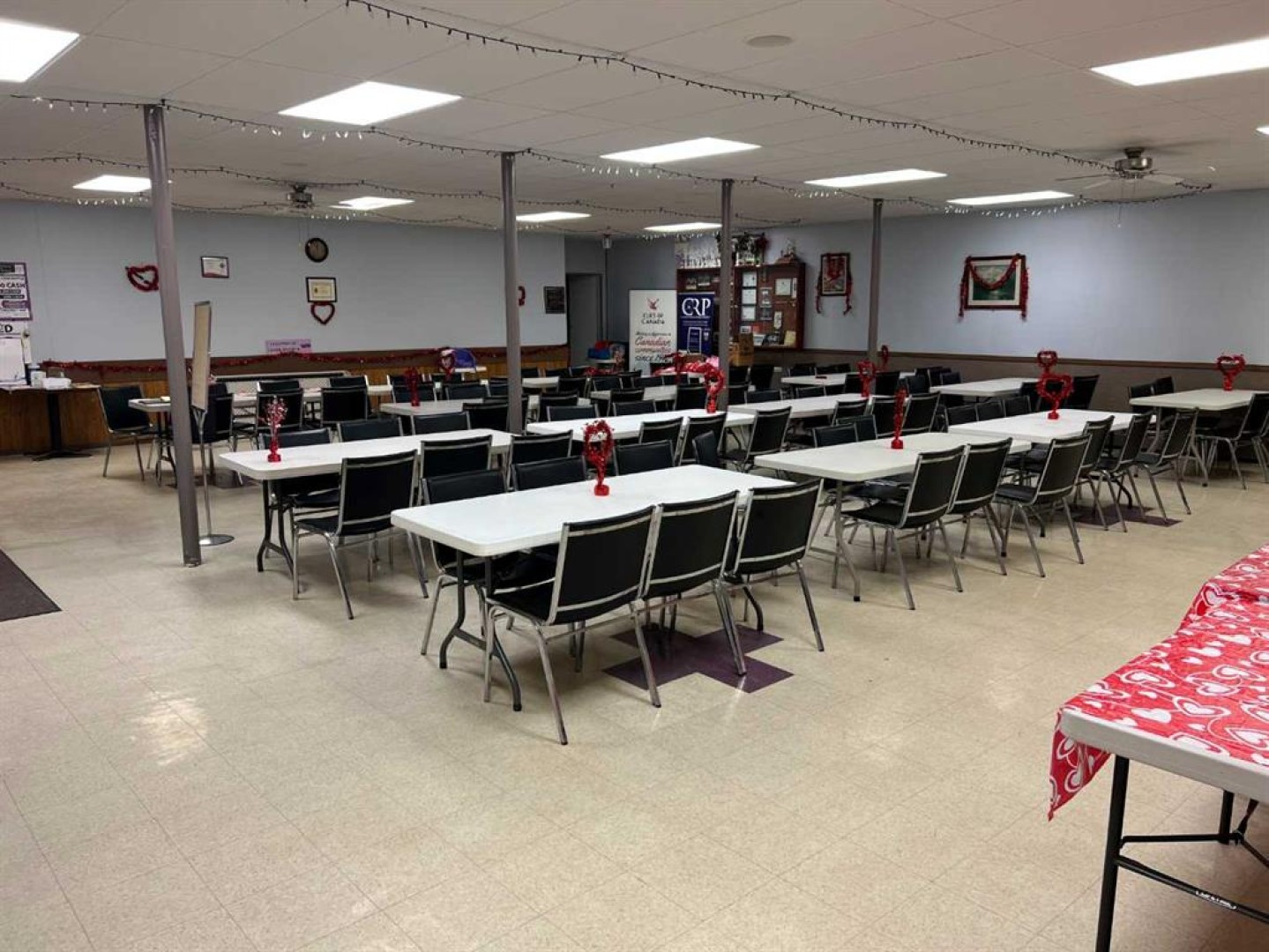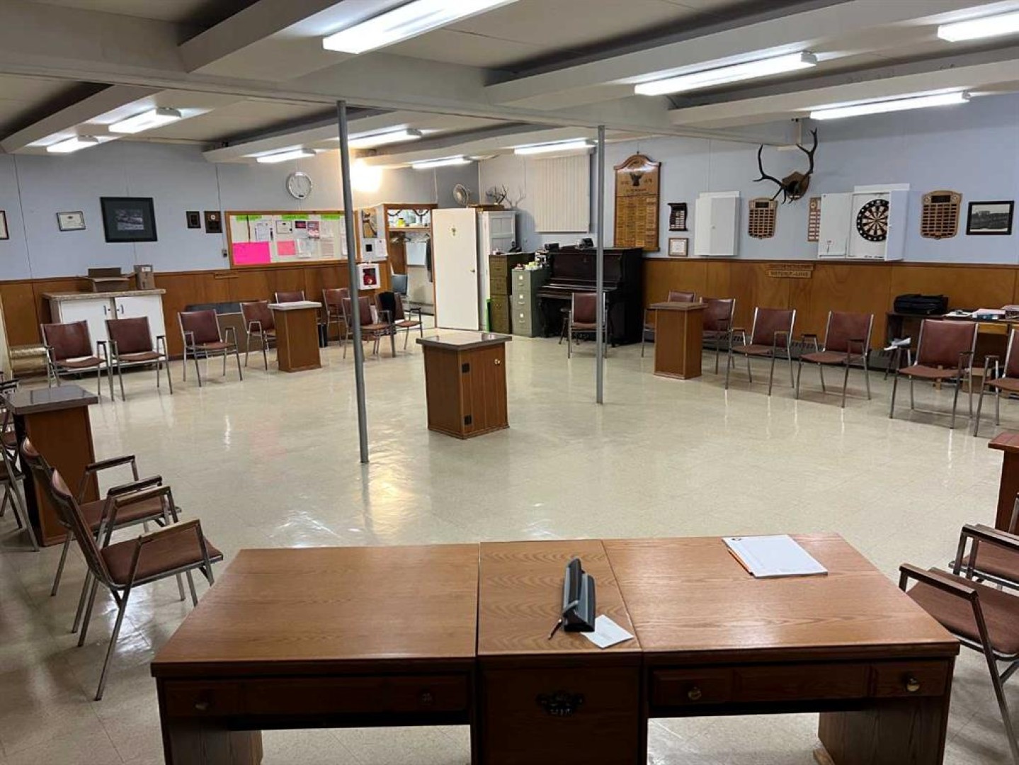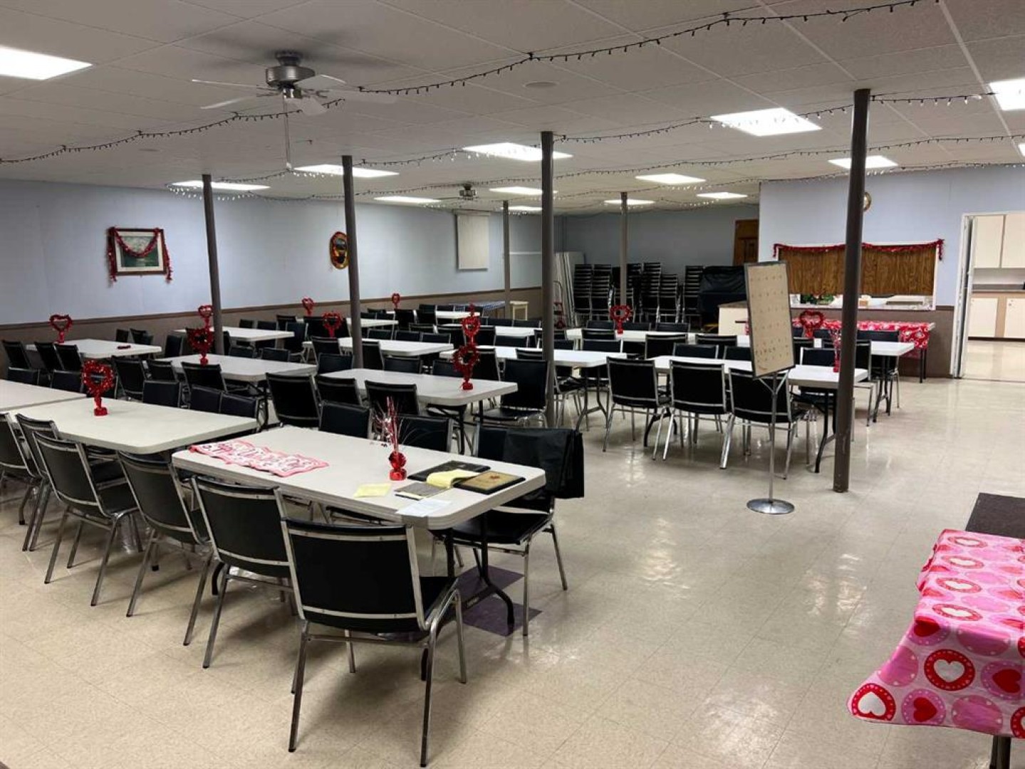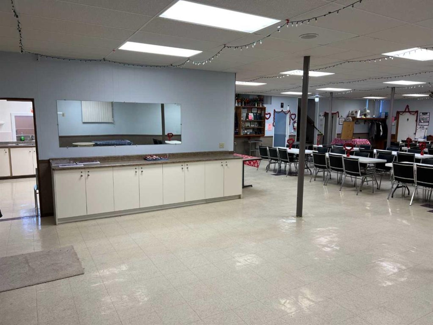 This building is ideally suited for a variety of uses and has potential for church organizations, farmer's market, studio, etc. This building is equipped for accessibility, including a ramp and an elevator lift. The roof was re-shingled in 2012. New hot water heater in 2021, new furnace in 2025. Main floor includes large foyer & hall, storage rooms, stage area, kitchen, prep & serving space and washrooms. The basement includes another large hall space, separate conference room, commercial kitchen, prep and serving areas, and washrooms.