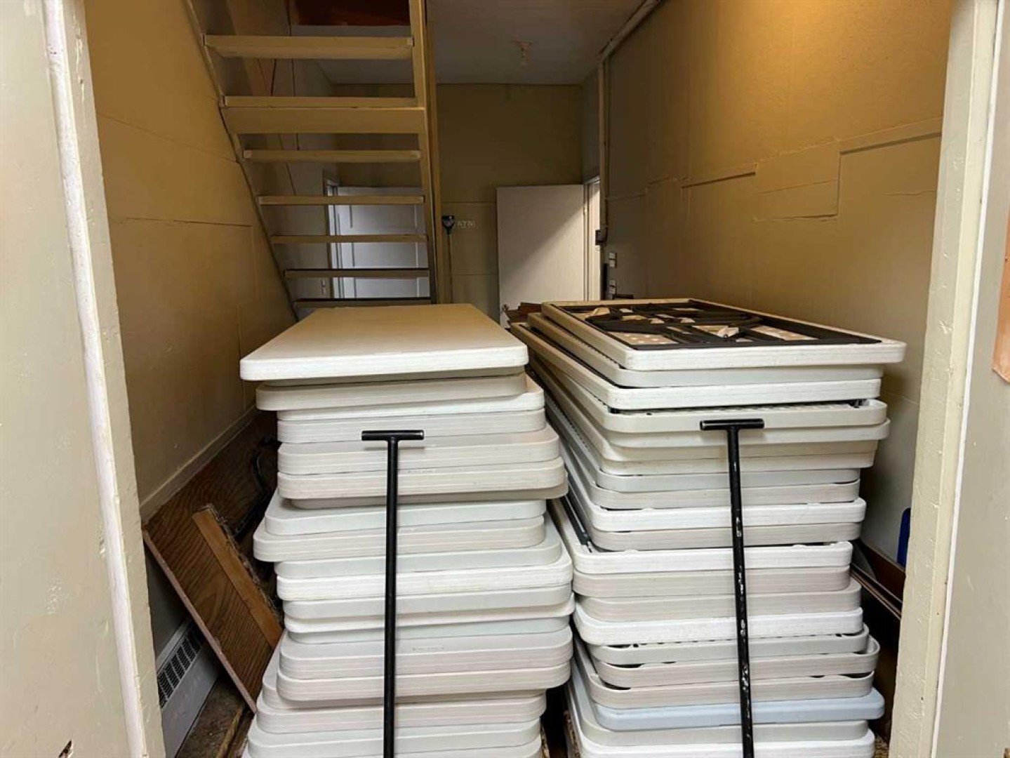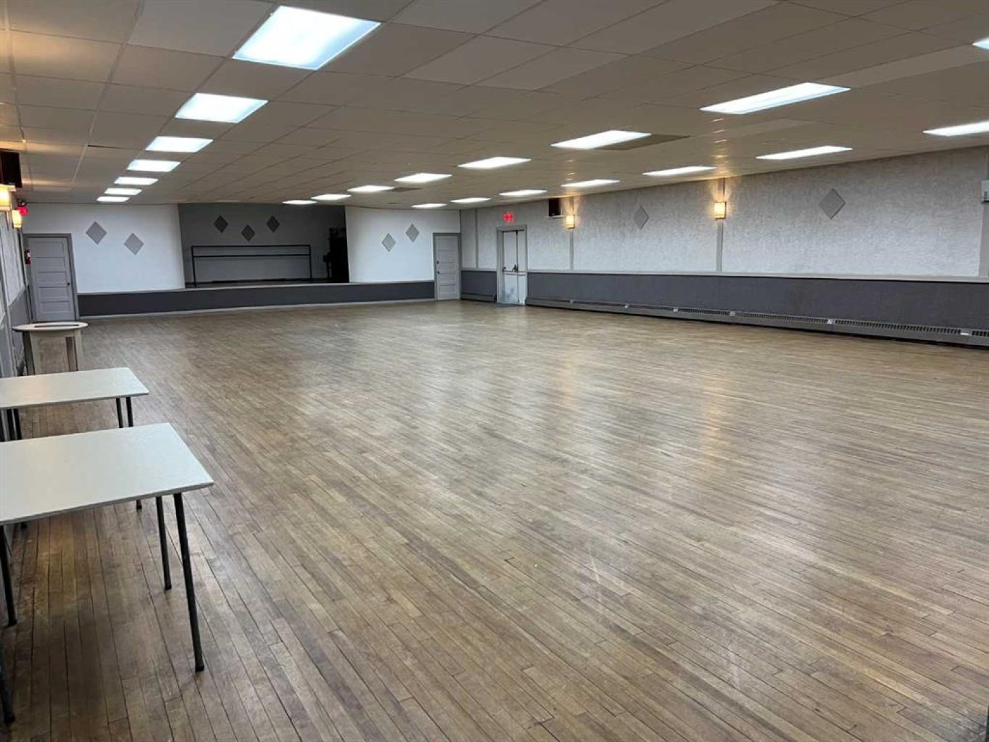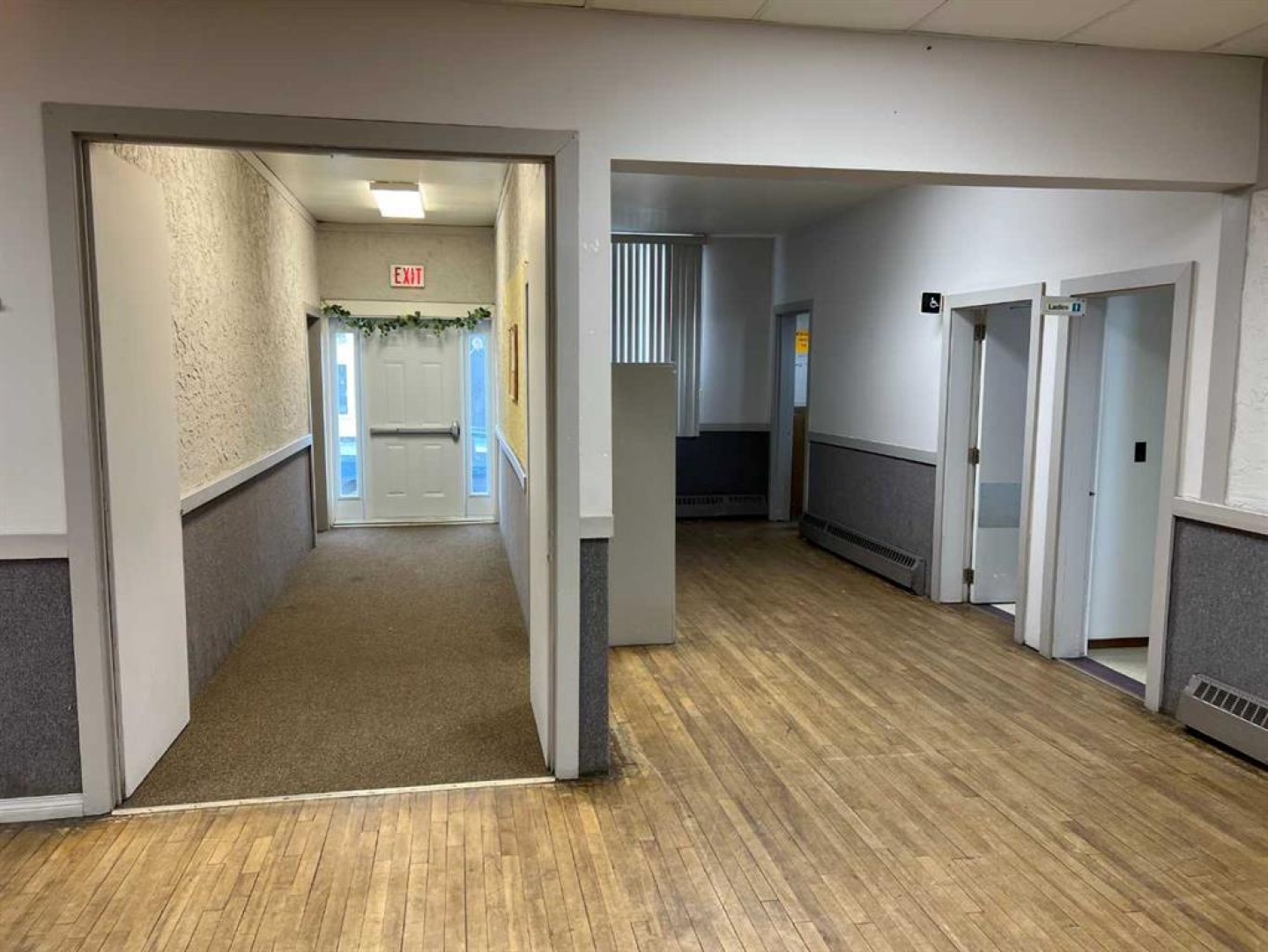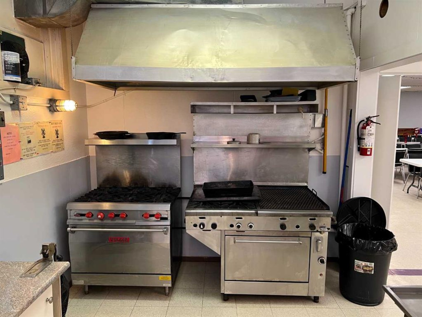 This building is ideally suited for a variety of uses and has potential for church organizations, farmer's market, studio, etc. This building is equipped for accessibility, including a ramp and an elevator lift. The roof was re-shingled in 2012. New hot water heater in 2021, new furnace in 2025. Main floor includes large foyer & hall, storage rooms, stage area, kitchen, prep & serving space and washrooms. The basement includes another large hall space, separate conference room, commercial kitchen, prep and serving areas, and washrooms.