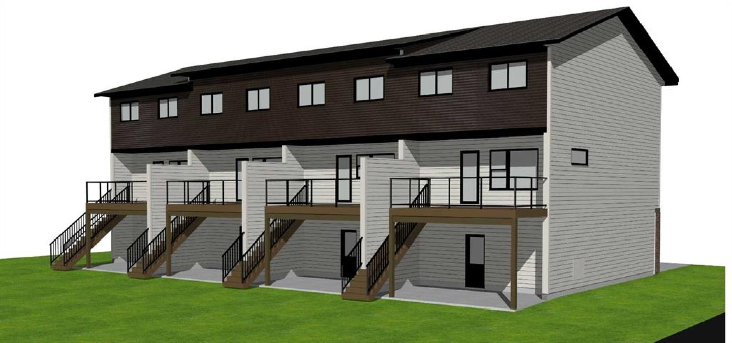 Brand new Larkaun Homes townhouse with a front attached garage! The curb appeal is complemented by the black triple pane windows and brick accents. The front entryway leads you to the tandem garage that features a walk in closet. Follow the stairs up to the second level where you will find an open style floor plan with luxury vinyl plank flooring. The kitchen features an eating bar island, quartz countertops, stainless steel appliances, soft close cabinets, full tile backsplash & a patio door out to the 16x12 rear sundeck with vinyl surface, aluminum railings and stairs down to the yard. There is a large eating area, a powder room and a living room with an electric fireplace. The third floor features 3 bedrooms, 2 bathrooms (with quartz and grouted vinyl tile) & upper floor laundry for your convenience. The king sized primary bedroom has a large walk in closet and a 5 piece ensuite with double sinks and a linen closet. Move in ready with the front/back sod and fully fenced. A fantastic location within steps from the path system and pond.