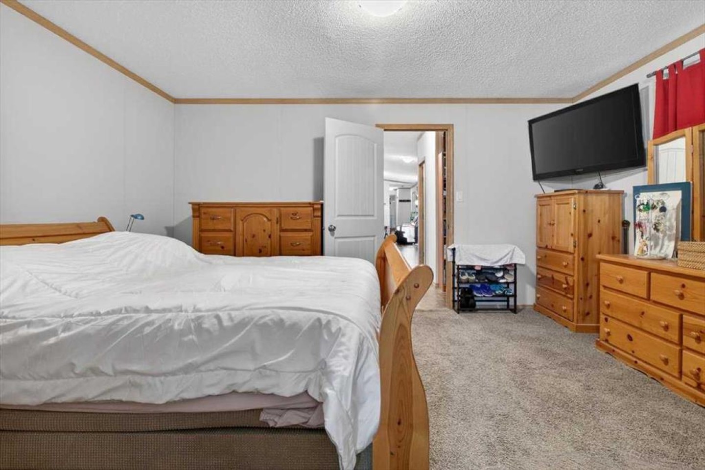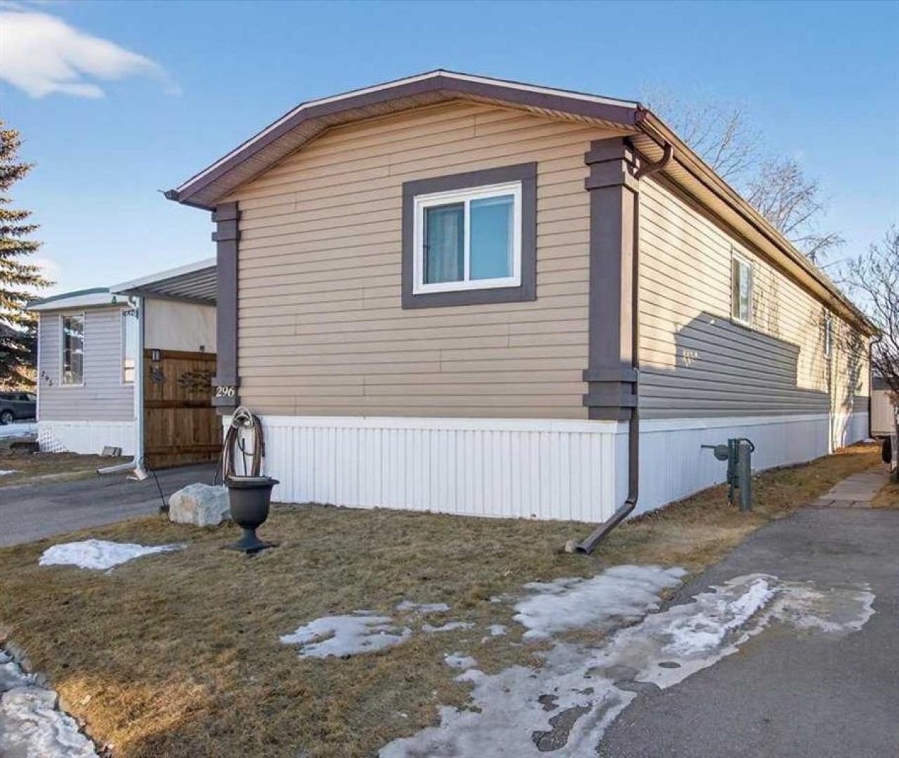 Welcome to this beautifully maintained and move-in ready 3-bedroom, 2-bathroom home featuring an addition, covered carport, and AIR CONDITIONING! This is the largest unit currently available and 2012 is the newest year too. Located in Watergrove Park, one of Calgary’s most desirable and exceptionally managed 45+ communities, this property offers a wonderful combination of comfort, convenience, and community living. Enjoy access to fantastic amenities including a pool, hot tub, sauna, gym, community library, party room with kitchen, and even additional laundry facilities. For those who travel or need extra space, RV, boat, and trailer storage is also available. Inside, you’ll find a bright and open floor plan with vaulted ceilings that enhance the spacious feel. The central kitchen is the heart of the home, featuring a large island, walk in pantry, plenty of beautiful wood cabinetry, and two skylights that fill the space with natural light. The thoughtful layout offers a generous dining area and a cozy living room—perfect for entertaining or relaxing.The primary suite is expansive, complete with a walk-in closet and a large ensuite featuring a soaker corner tub. On the opposite side of the home, two additional bedrooms and the main bathroom provide comfortable space for guests or hobbies. The addition offers a versatile bonus room currently used for storage, with access to a private back patio and a well-built storage shed. There’s even extra storage space under the front porch for your outdoor or seasonal items. Notable updates include a 2-year-old hot water tank and a regularly maintained furnace. Your monthly lot fee covers water, sewer, recycling, garbage pickup, and full use of all clubhouse amenities. With Crowfoot Crossing just steps away, you’ll love the easy access to grocery stores, medical clinics, restaurants, banks, and even a movie theatre. The Crowfoot LRT station is nearby as well, making this one of the most connected and convenient locations in the city. This is a welcoming, active, and friendly community you’ll be proud to call home.