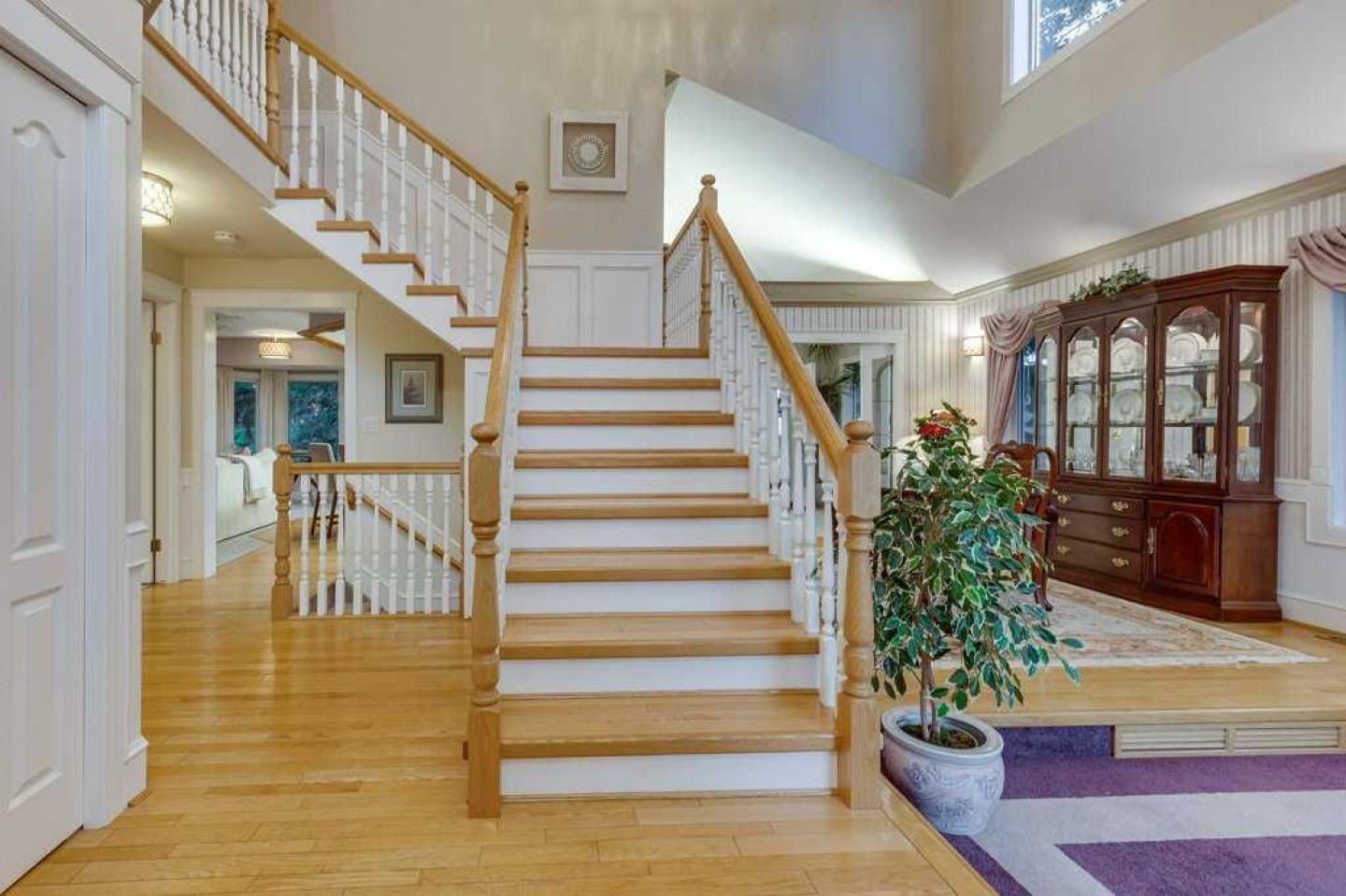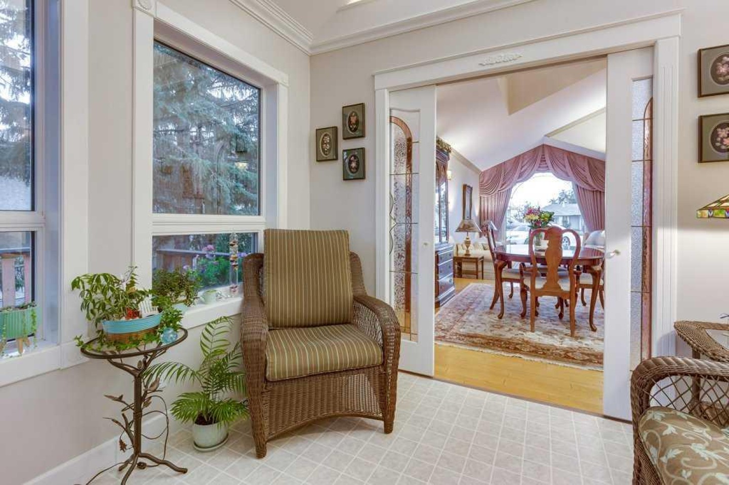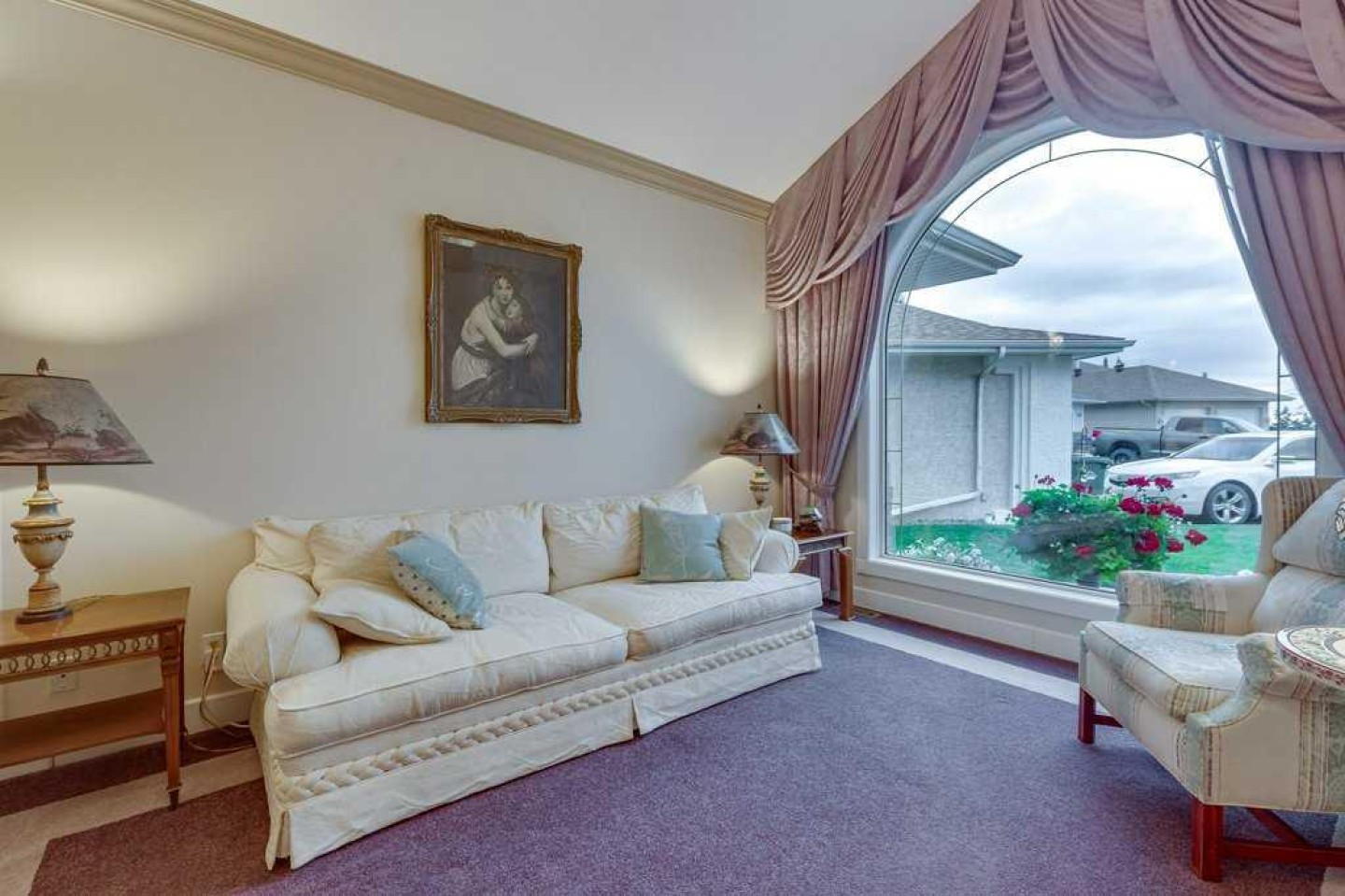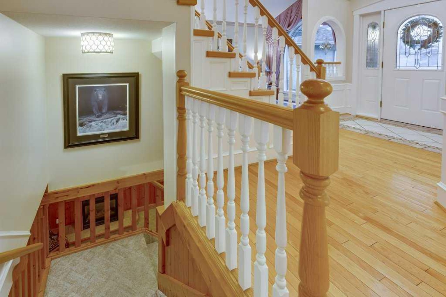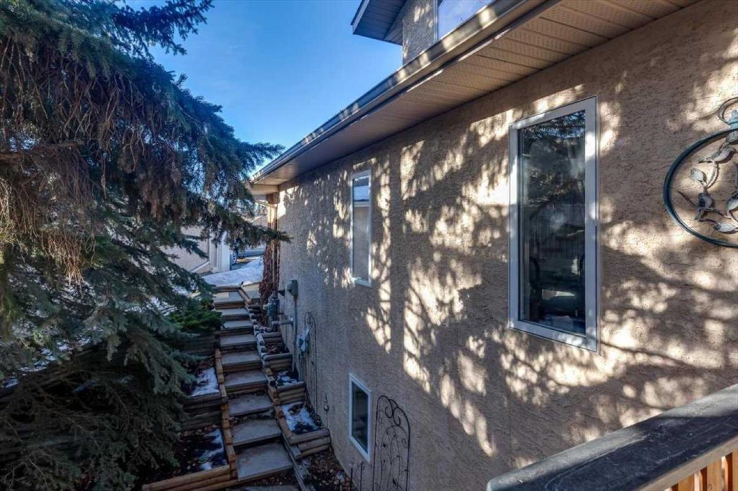 There is truly nothing else like this home on the market in Innisfail. Nestled in a private, forest-like setting right in town, this architectural masterpiece blends timeless elegance with natural serenity. From the moment you arrive, the extra-large front parking pad, accommodating three or more vehicles alongside the heated double garage, sets the tone for a property that balances luxury and practicality. Inside, the main level impresses with a cathedral ceiling foyer, chandelier, and refined details throughout. Ceiling medallions, crown mouldings, ledge lighting, and mosaic tile accents add sophistication, while hardwood flooring, custom wool carpeting, and Hunter Douglas window treatments elevate every room. The sunken living room exudes warmth, while the formal dining room glows with Murray Feiss lighting. The gourmet kitchen features abundant solid oak cabinetry, a gas stove, a Jenn-Air microwave/oven combo (gas hookup available/present), and a bay-window breakfast nook overlooking the treed backyard. Adjacent, the family room features a gas fireplace and a picturesque sitting area, creating an intimate gathering space. A captivating feature is the year-round sunroom, accessed through French doors, where walls of windows flood the space with natural light and frame uninterrupted views of the backyard oasis. A main-floor office or bedroom with custom-built-ins, a powder room, and a spacious laundry with sink and garage access complete this level. The primary suite occupies the upper floor, offering a private retreat at the top of its own grand staircase. A sitting area leads into the expansive bedroom with a walk-in closet, a hidden ironing board, a laundry chute, and a spa-inspired ensuite with a jetted soaker tub, Roman taps, and a shower. The walkout lower level evokes the feel of a luxury mountain retreat with beadboard, wainscoting, and cabin-like textures. The rec room, with 11-foot ceilings and a gas fireplace, is designed for entertaining, featuring a wet bar, built-in cue racks, and space for a pool table. Two additional bedrooms share a Jack-and-Jill four-piece bath, while above-grade windows and built-in organizers add both light and function. Outdoors, a wraparound deck with a natural gas BBQ hookup extends living into the treetops, perfect for entertaining or quiet mornings. Additional highlights include low-voltage outdoor lighting, retractable garden hoses, a wood retaining wall, two sheds, and wiring for a hot tub. The setting itself is unmatched—a private wooded escape that feels miles from town while only minutes from every amenity. Comfort and peace of mind come with in-floor heating in both the house and garage, many updated vinyl windows, a boiler-fired hot water tank (approx. 8 years old), and the roof was replaced in 2022. This home is a rare offering. Refined, timeless, and surrounded by nature, yet designed for modern living and entertaining. A sanctuary unlike any other, where classic elegance and a private forest retreat become one.