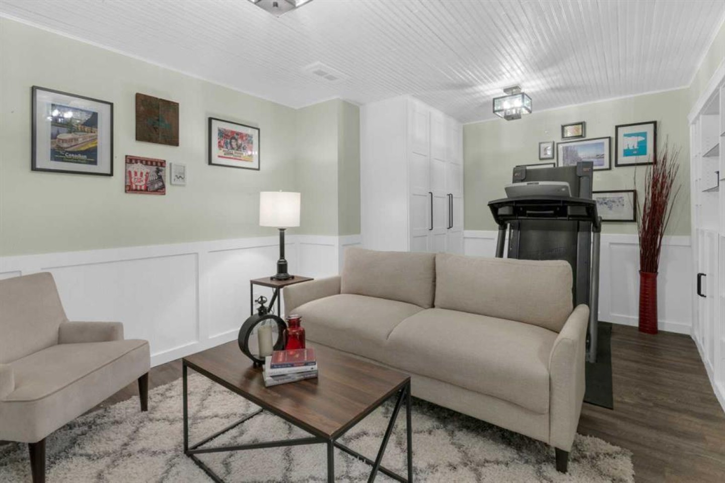 The fully FINISHED BASEMENT continues the home’s polished feel with NEW LVP flooring, a comfortable family room, and additional space ideal for a home office or fitness area. Built-in shelving and an additional downstairs shelving unit (included) provide both style and exceptional storage, ensuring this level is as functional as it is refined.