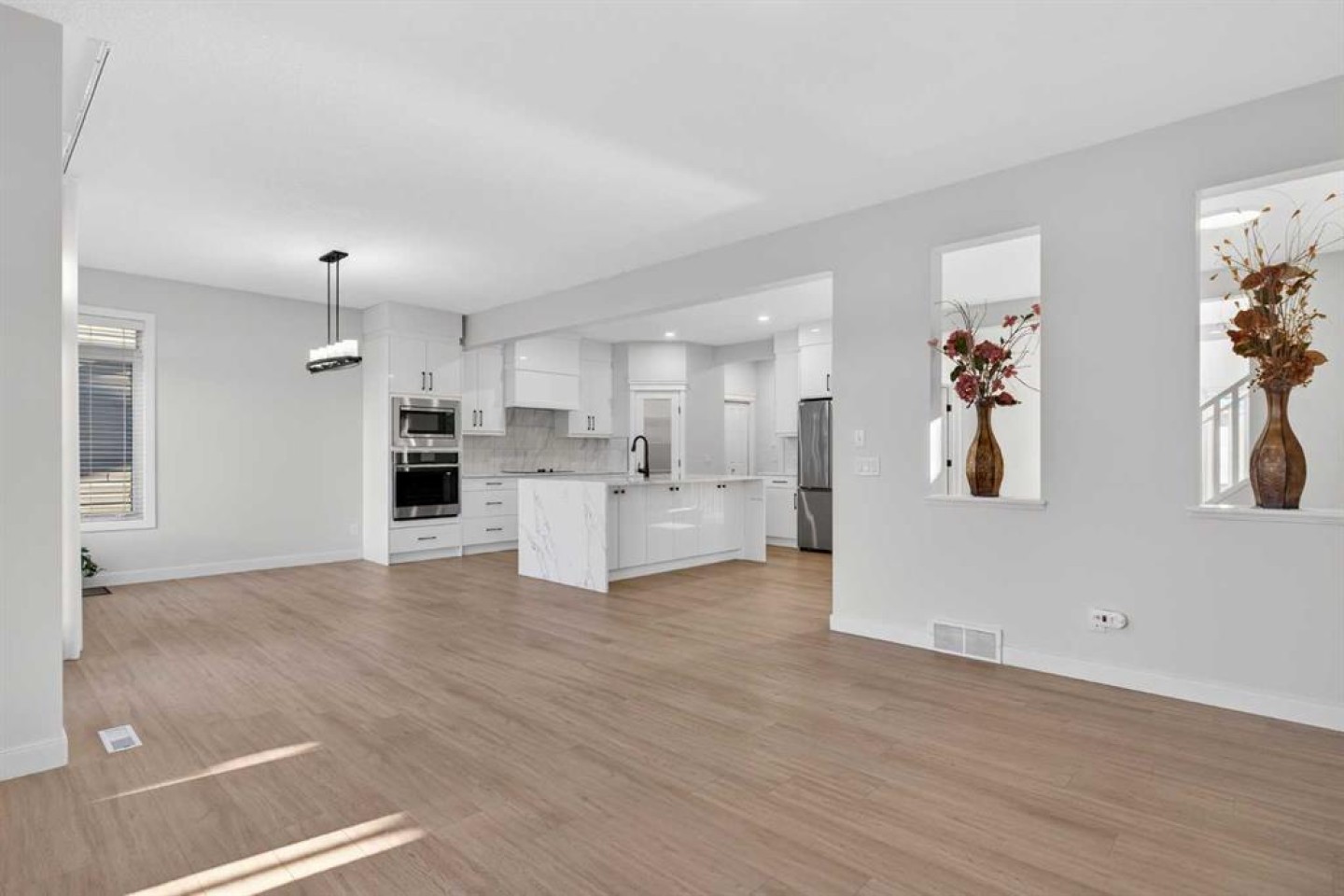 Welcome to this exquisite residence offering over 3,200 sq. ft. of beautifully developed living space, where modern luxury meets timeless sophistication. From the moment you step inside, you’ll be captivated by the home's meticulous upgrades—featuring fresh designer paint, elegant new flooring, and fully renovated bathrooms. The open-concept layout is enhanced by soaring ceilings, sleek LED lighting, and an abundance of natural light, creating a warm and inviting ambiance throughout. At the heart of the main level is a chef-inspired gourmet kitchen, thoughtfully redesigned with top-tier appliances, contemporary countertops, and generous cabinetry—perfect for everyday living and entertaining alike. Just off the kitchen, a stylish dining area provides the ideal backdrop for family dinners or gatherings, while the grand living room centers around a cozy gas fireplace, making it the perfect place to relax on cooler evenings. A versatile flex room adds functionality to suit your lifestyle needs. Upstairs, you'll find an expansive bonus room featuring vaulted ceilings, three skylights, and a private balcony—an impressive and sunlit retreat. The home boasts three spacious bedrooms, each designed with comfort in mind, and two fully upgraded bathrooms. The convenient laundry room includes a new linen closet, adding both style and practicality. The luxurious primary suite is a true sanctuary, complete with a large walk-in closet and a stunning 5-piece ensuite featuring a rejuvenating Jacuzzi tub—ideal for unwinding after a long day. The fully developed basement offers even more living space, featuring a soundproofed ceiling and a stylish 2-bedroom Legal suite with its own private entrance. This self-contained suite includes a modern kitchen with brand-new appliances, a full bathroom, and separate access—perfect for extended family, guests, or rental income. Located in a vibrant and family-friendly neighborhood, this home is surrounded by outstanding amenities including a FreshCo shopping center, nearby parks, a large field with a playground and baseball diamond, two elementary schools, and the soon-to-open Evanston Middle School. Enjoy easy transit access, flat walking paths ideal for all ages, and close proximity to Beacon Hill shopping center with Costco and Walmart. Plus, it’s just a 10-minute drive to Calgary International Airport. Additional recent upgrades such as new LED lighting, brand-new carpeting, and a newly installed EV charging outlet in the garage further elevate this already stunning property. This home truly has it all—space, style, location, and versatility. Don’t miss your opportunity to make it yours.