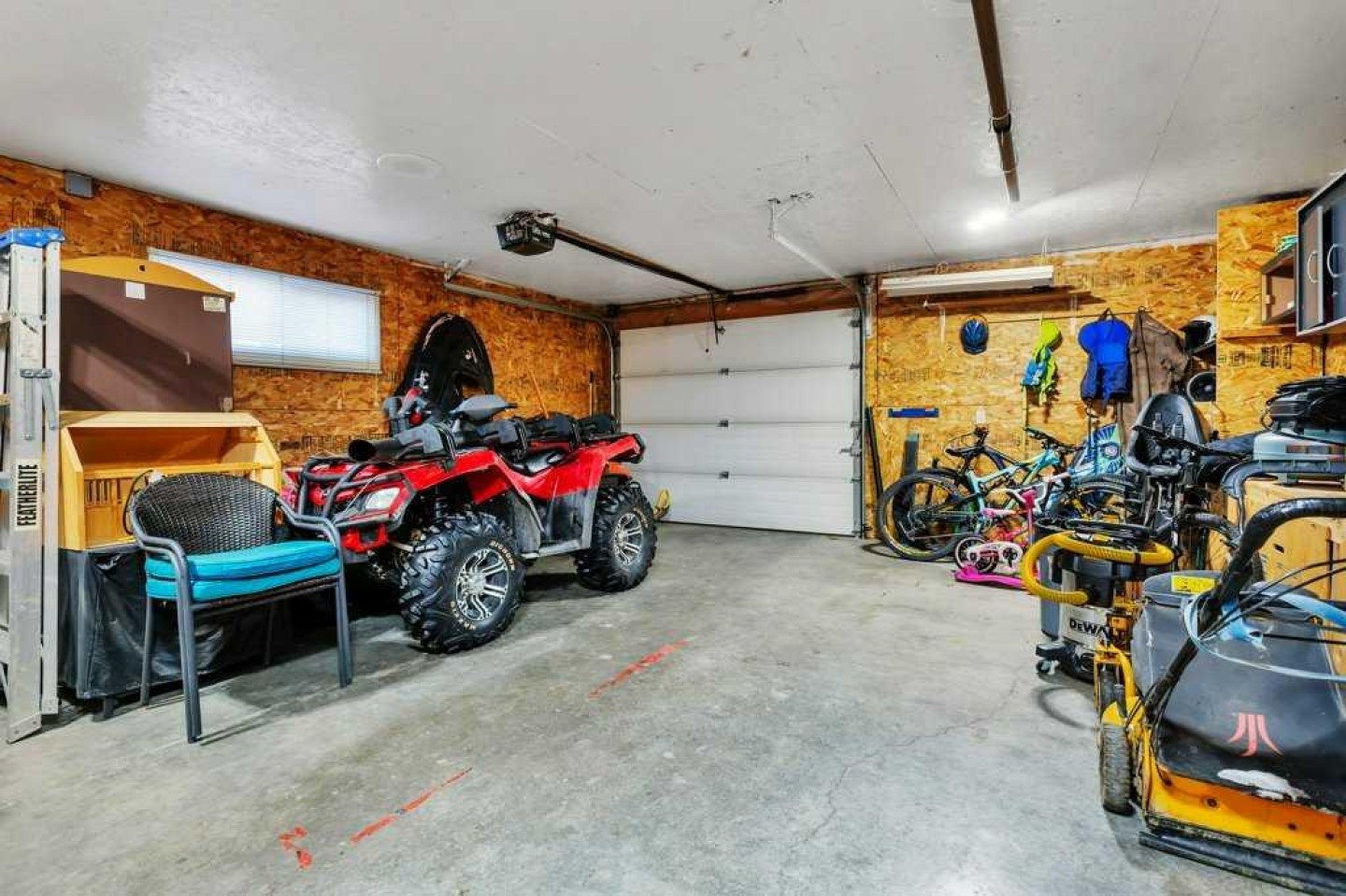 Fridge, Stove, Dishwasher, Microwave, Washer, Dryer, TV Wall Mount in Living Room, All Window Coverings, Garage Door Opener & Control, Attached Garage Shelving, Electric Garage Heater, Amp & Speakers (As Is)