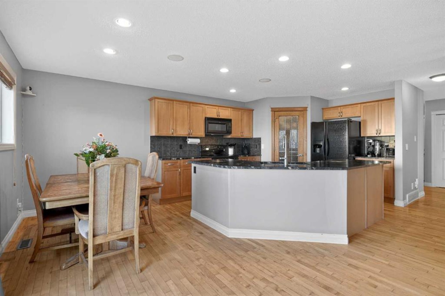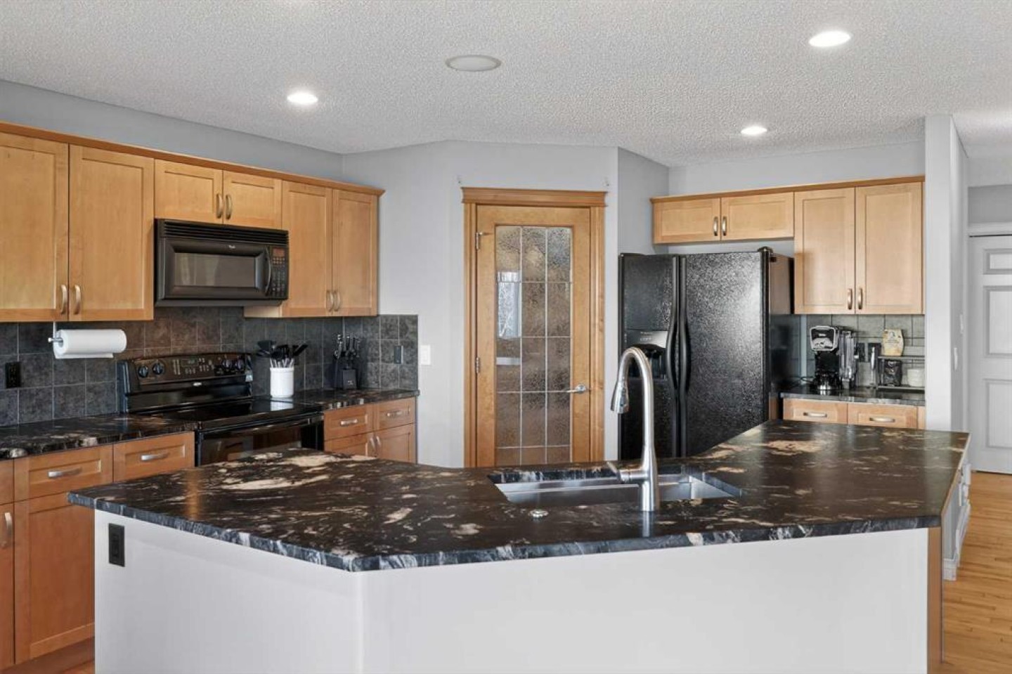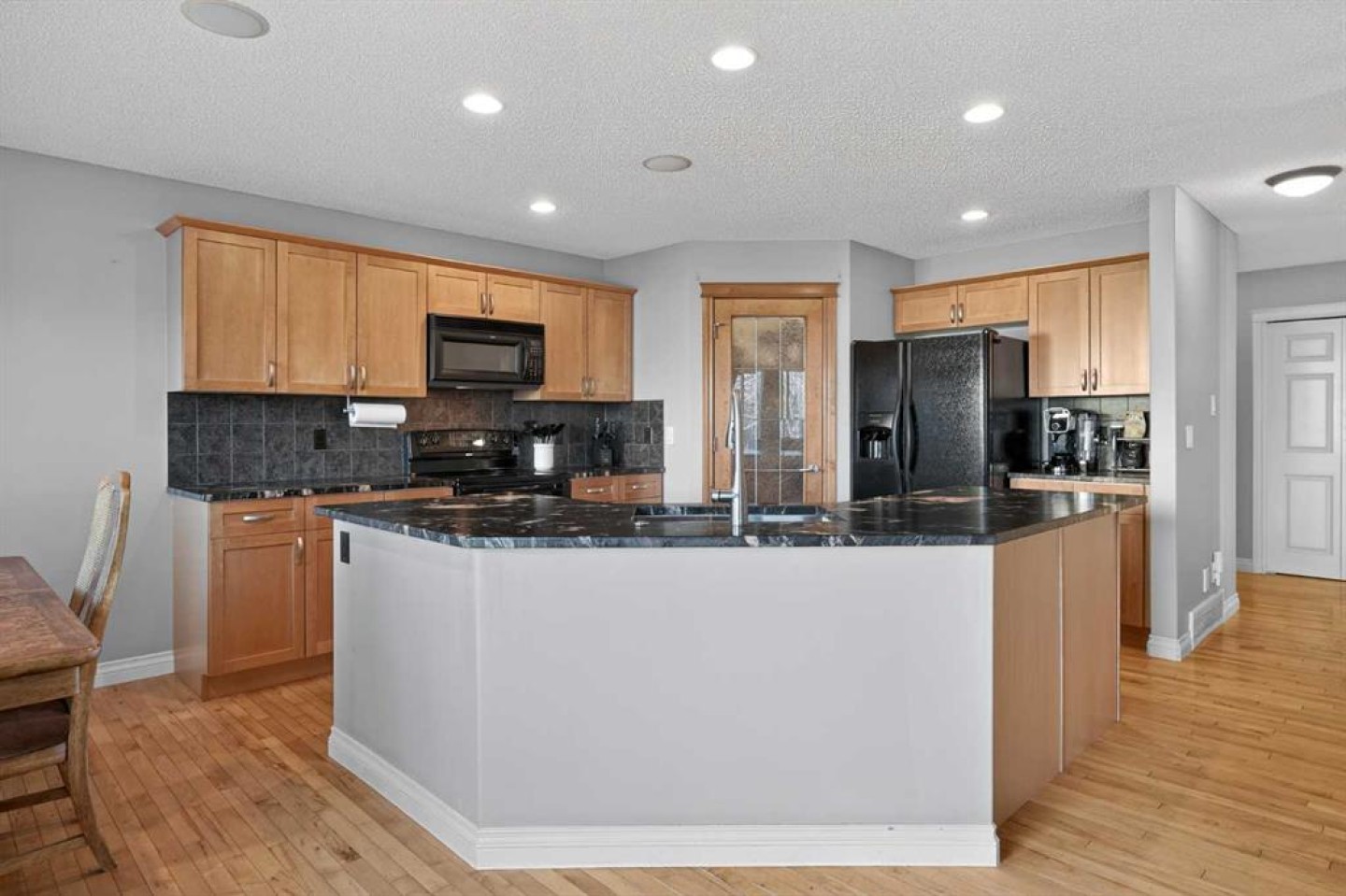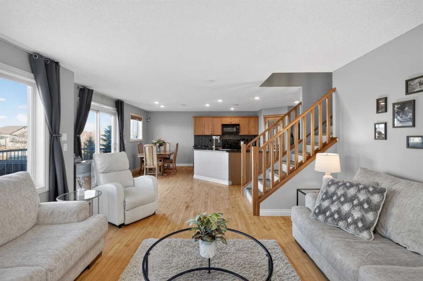 A generous 12’ x 14’ front office provides the ideal space for a home based business or private study. The heart of the home is the open concept main floor, highlighted by a stunning kitchen featuring an oversized centre island, walk-through pantry, and seamless flow into the dining and living areas. The inviting living room showcases rich hardwood flooring, a cozy gas fireplace, and expansive west facing windows that fill the space with natural light.