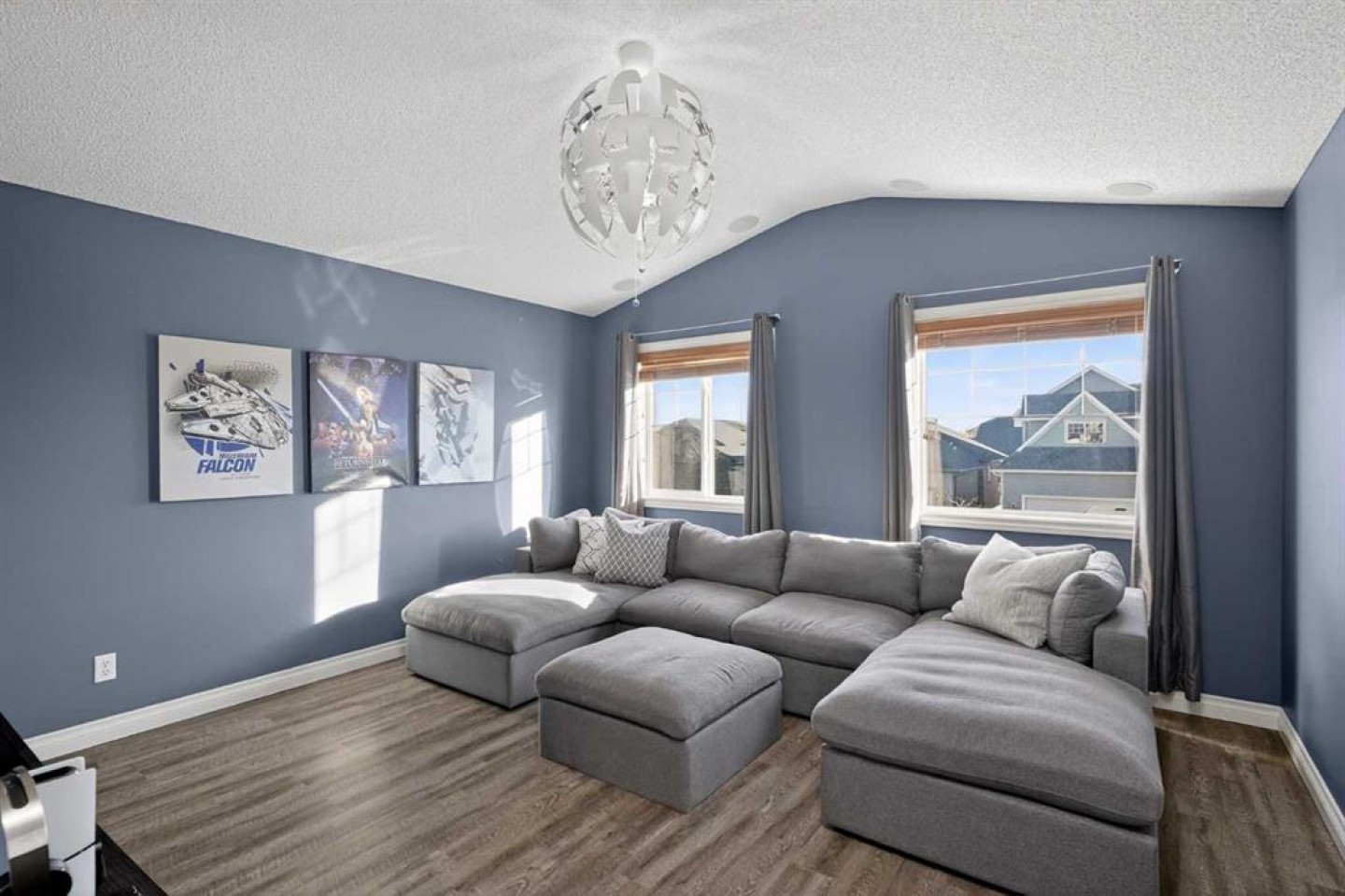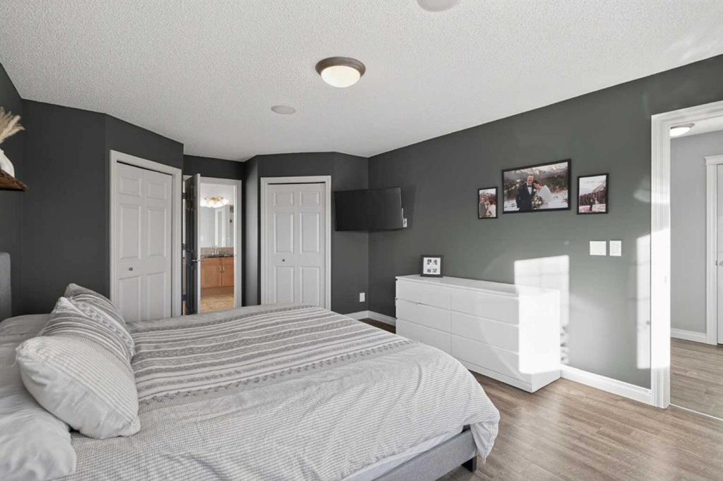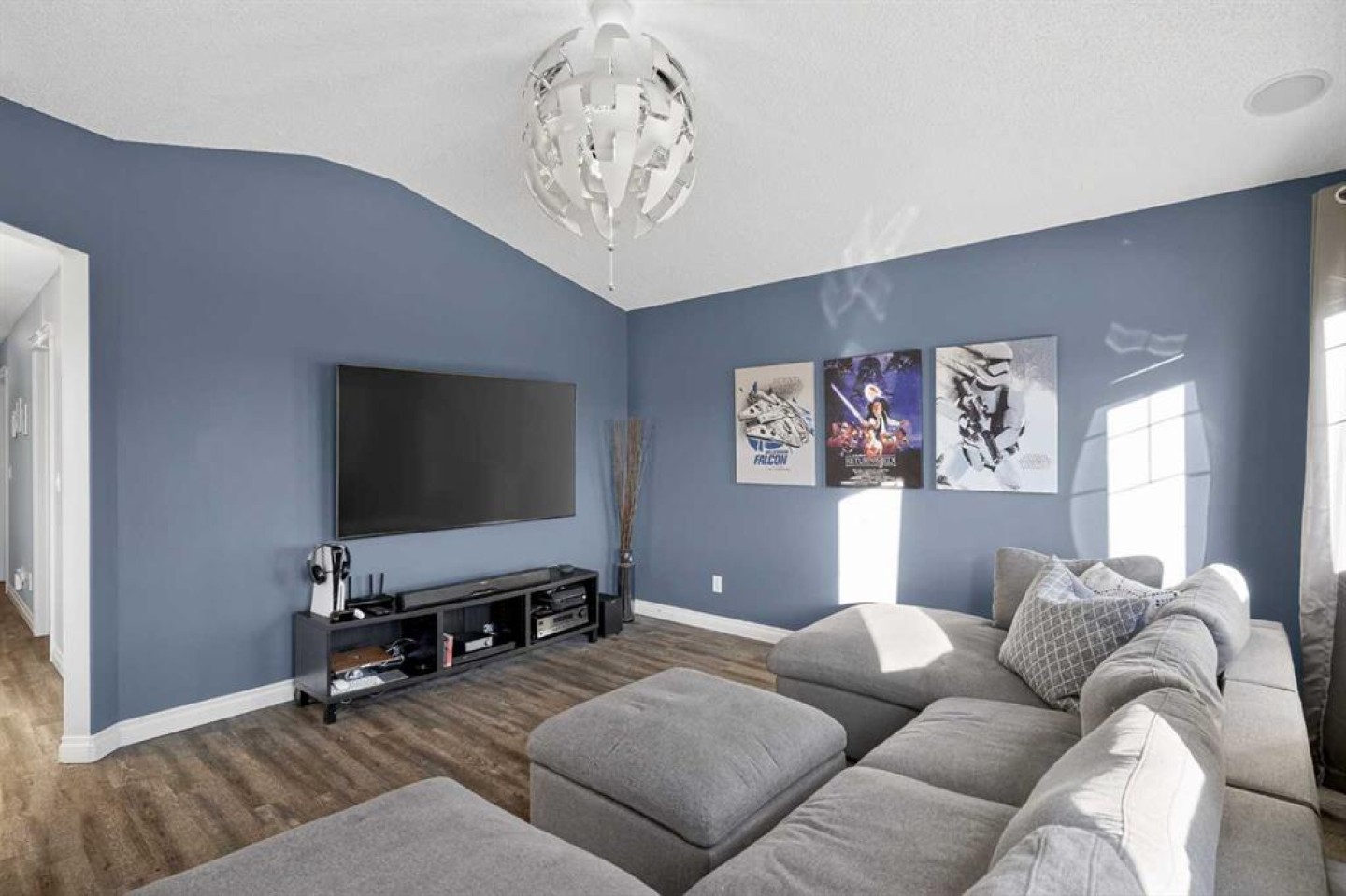 Upstairs, new vinyl plank flooring leads to a large bonus room with vaulted ceilings, fully wired for a theatre system, creating an inviting retreat for movie nights or family gatherings. The primary suite offers a true escape with his and hers closets and a luxurious five piece ensuite, while two additional bedrooms are thoughtfully located near the laundry room for added convenience.