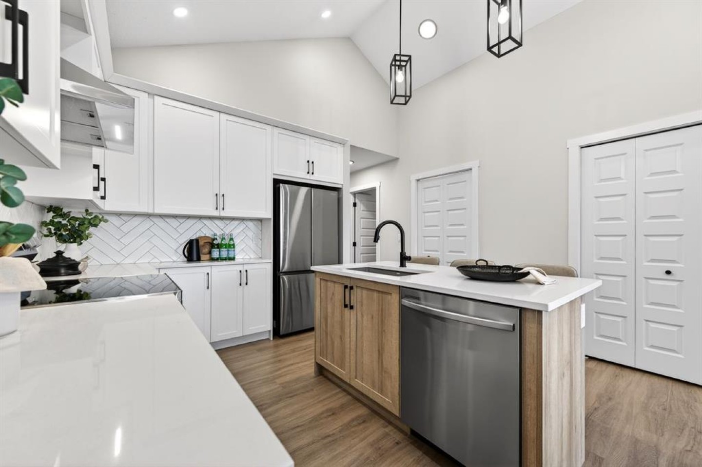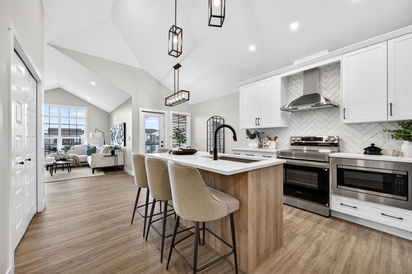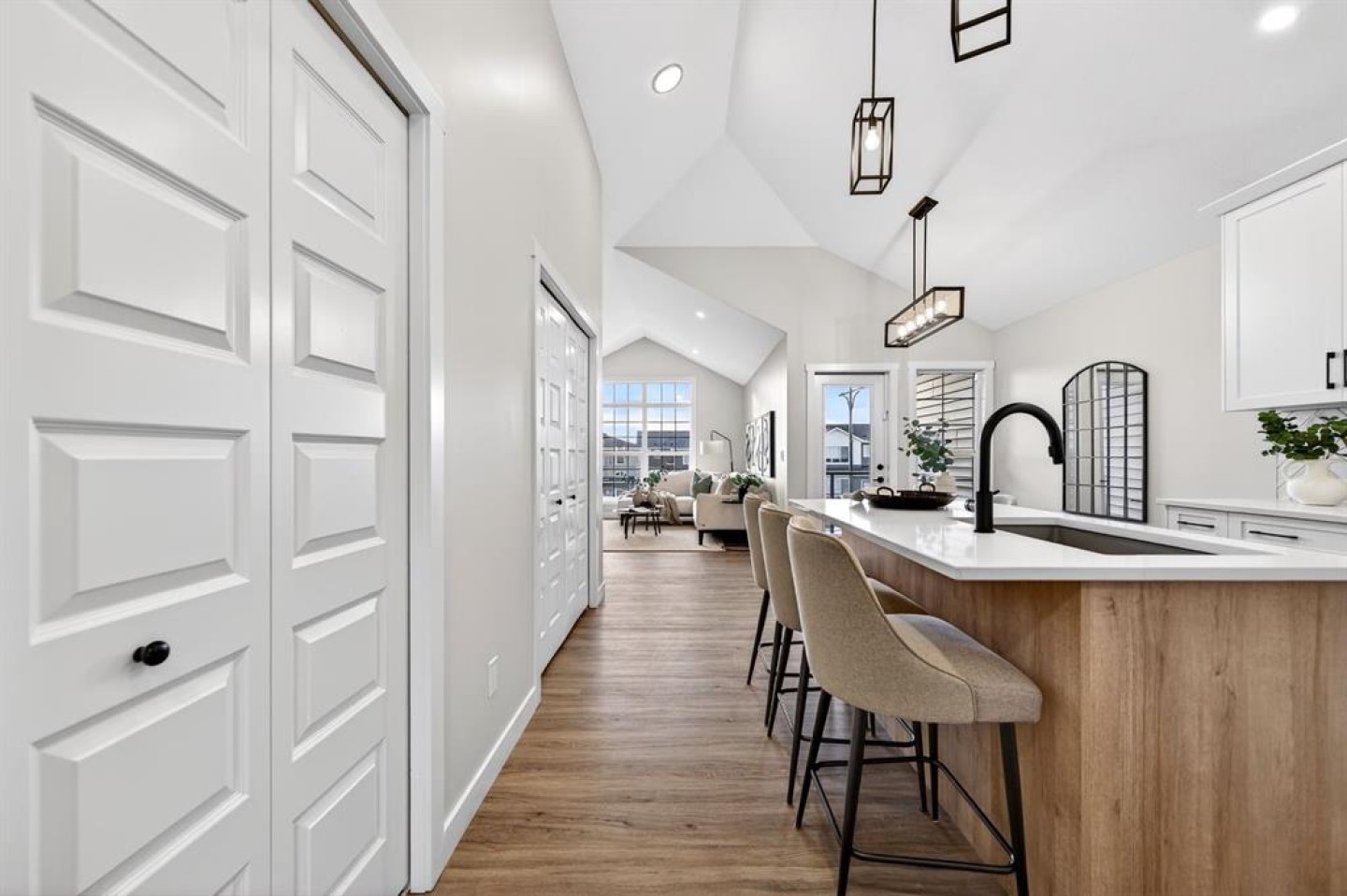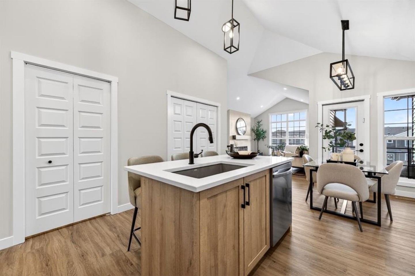Welcome to 2242 Bayview Drive, a gorgeous 1500+ Sq Ft 3-bedroom 2.5 bathroom townhome with attached garage and no condo fees! The main level features a unique design with two bedrooms and a full bathroom, perfect for family members or guests, and direct access from the attached double garage. Upstairs, you’ll be impressed by soaring vaulted ceilings and a bright, open-concept layout that seamlessly connects the kitchen, living, and dining areas. The well-appointed kitchen showcases quartz countertops, stainless steel appliances, and a large central island, making it ideal for entertaining. The spacious primary bedroom includes a walk-in closet and a private en-suite bathroom with dual sinks and an oversized shower. Enjoy outdoor living with a full-width upper patio off the primary bedroom, plus an additional balcony off the dining room, perfect for relaxing or hosting guests. Complementing the upper level is a convenient laundry area and a powder room. The unfinished basement features 9’ ceilings and provides a blank canvas ready for your personal design ideas—a rare opportunity combining functionality, modern finishes, and exceptional value, all without condo fees. Bayview is a beautiful community with parks, benches and pathways that meander throughout the community and along the canals. Kids and adults alike will enjoy the outdoor basketball nets, gym, amphitheatre and tennis courts that will convert into a skating rink in the winter. Come and see all the amenities that Bayview has to offer for yourself! Area size was calculated by applying the RMS to the builder's blueprints