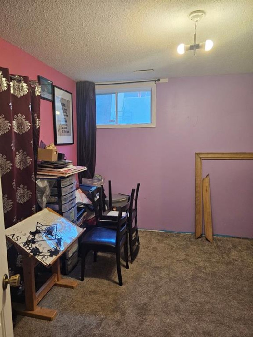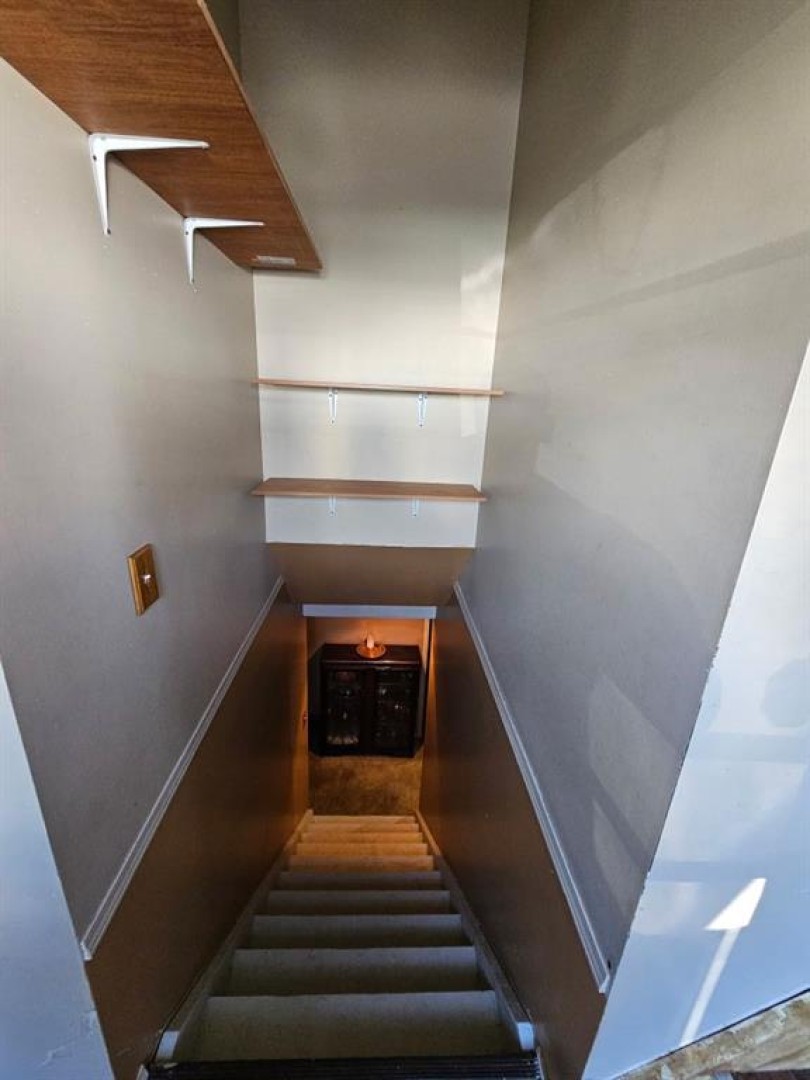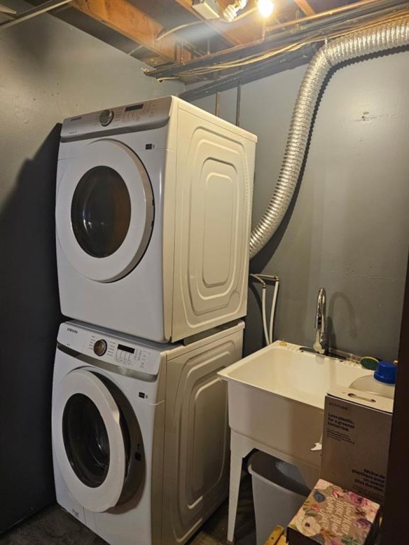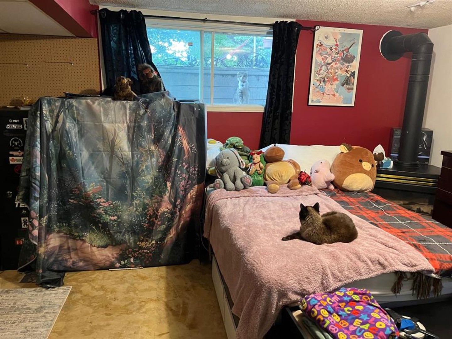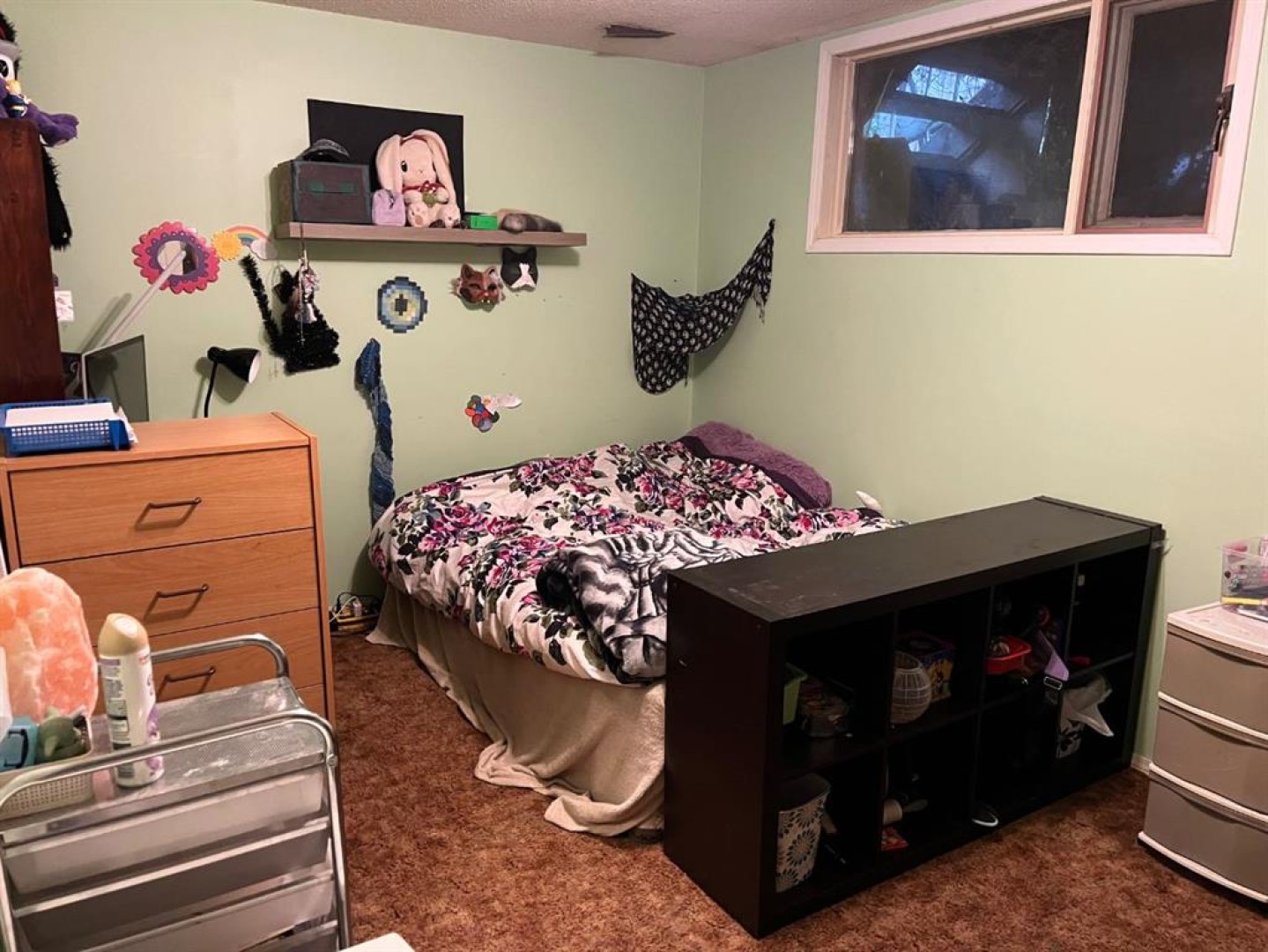 This four-bedroom, two-bathroom duplex is perfectly situated in an ideal location close to schools, shopping, and everyday conveniences, making it an excellent choice for families or investors alike. The main level offers a welcoming layout with an open kitchen featuring updated appliances, seamlessly connected to the dining area and a sunken living room. The living room is a true highlight, showcasing vaulted wood ceilings, and an abundance of natural light that creates a warm and inviting atmosphere. A four-piece bathroom, the primary bedroom with private access to the covered deck, and an additional bedroom complete the main floor, providing comfortable and functional living space. The lower level includes a free standing natural gas stove for added warmth. Two spacious bedrooms and a convenient two-piece bathroom, offering privacy and flexibility for guests, teens, or a home office setup. A utility room with a stacked washer and dryer, along with a laundry sink, completes the lower level. Outside, the property offers a private yard featuring garden boxes ready for planting and a handy storage shed. Combining a thoughtful layout, attractive features, and a sought-after location, this duplex offers comfortable living with room to grow.