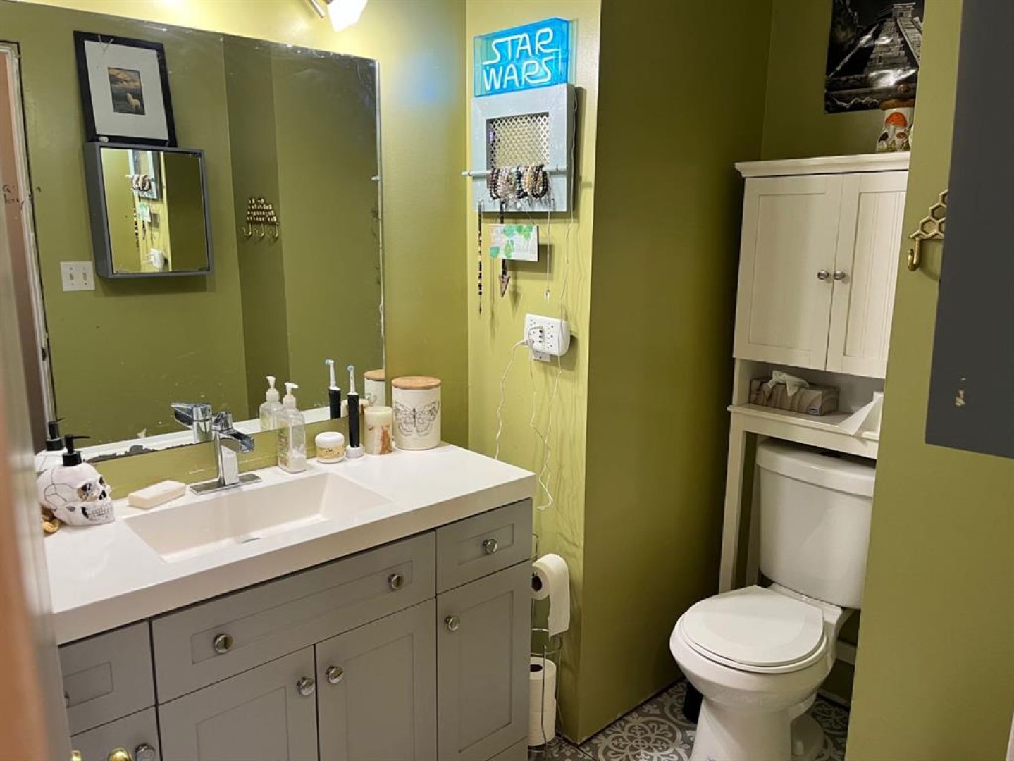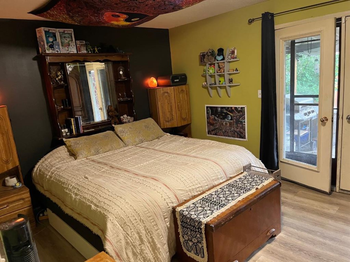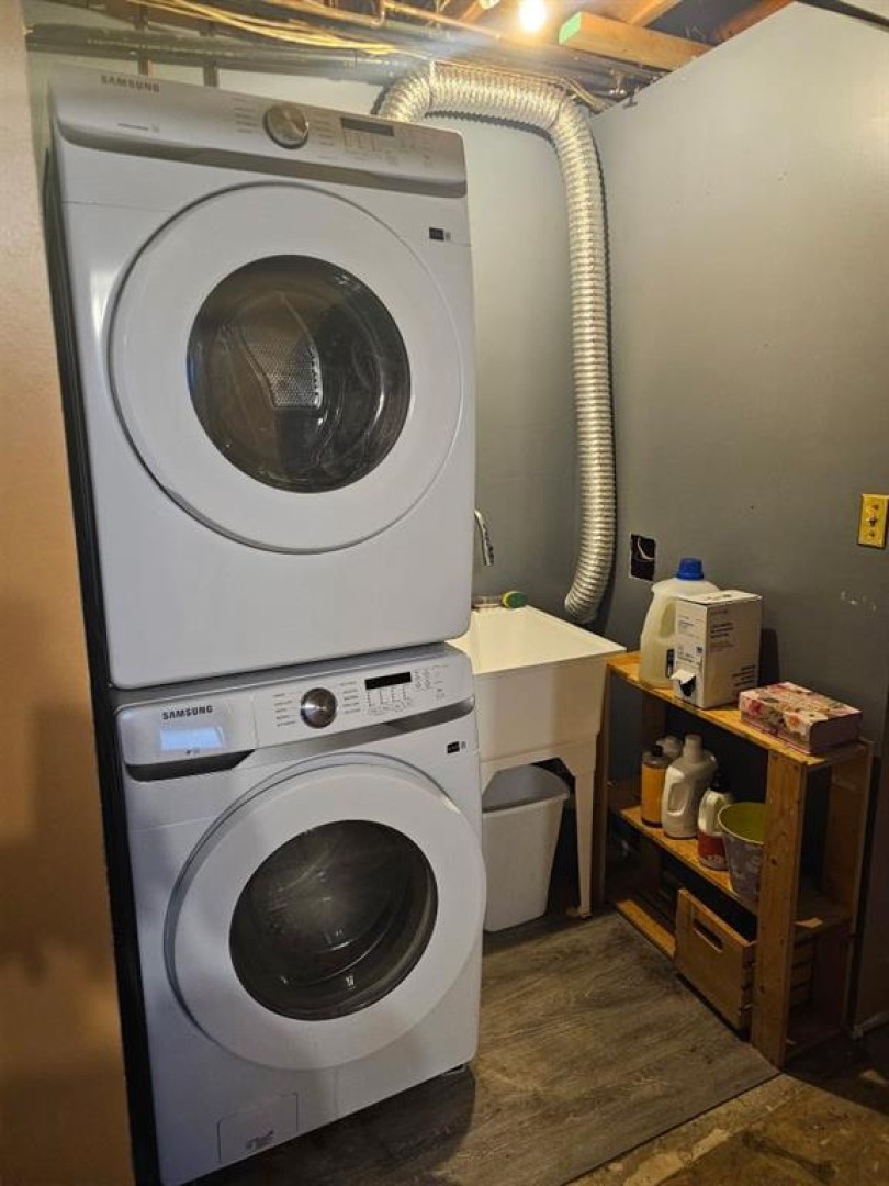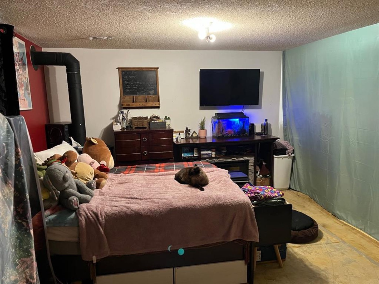 This four-bedroom, two-bathroom duplex is perfectly situated in an ideal location close to schools, shopping, and everyday conveniences, making it an excellent choice for families or investors alike. The main level offers a welcoming layout with an open kitchen featuring updated appliances, seamlessly connected to the dining area and a sunken living room. The living room is a true highlight, showcasing vaulted wood ceilings, and an abundance of natural light that creates a warm and inviting atmosphere. A four-piece bathroom, the primary bedroom with private access to the covered deck, and an additional bedroom complete the main floor, providing comfortable and functional living space. The lower level includes a free standing natural gas stove for added warmth. Two spacious bedrooms and a convenient two-piece bathroom, offering privacy and flexibility for guests, teens, or a home office setup. A utility room with a stacked washer and dryer, along with a laundry sink, completes the lower level. Outside, the property offers a private yard featuring garden boxes ready for planting and a handy storage shed. Combining a thoughtful layout, attractive features, and a sought-after location, this duplex offers comfortable living with room to grow.