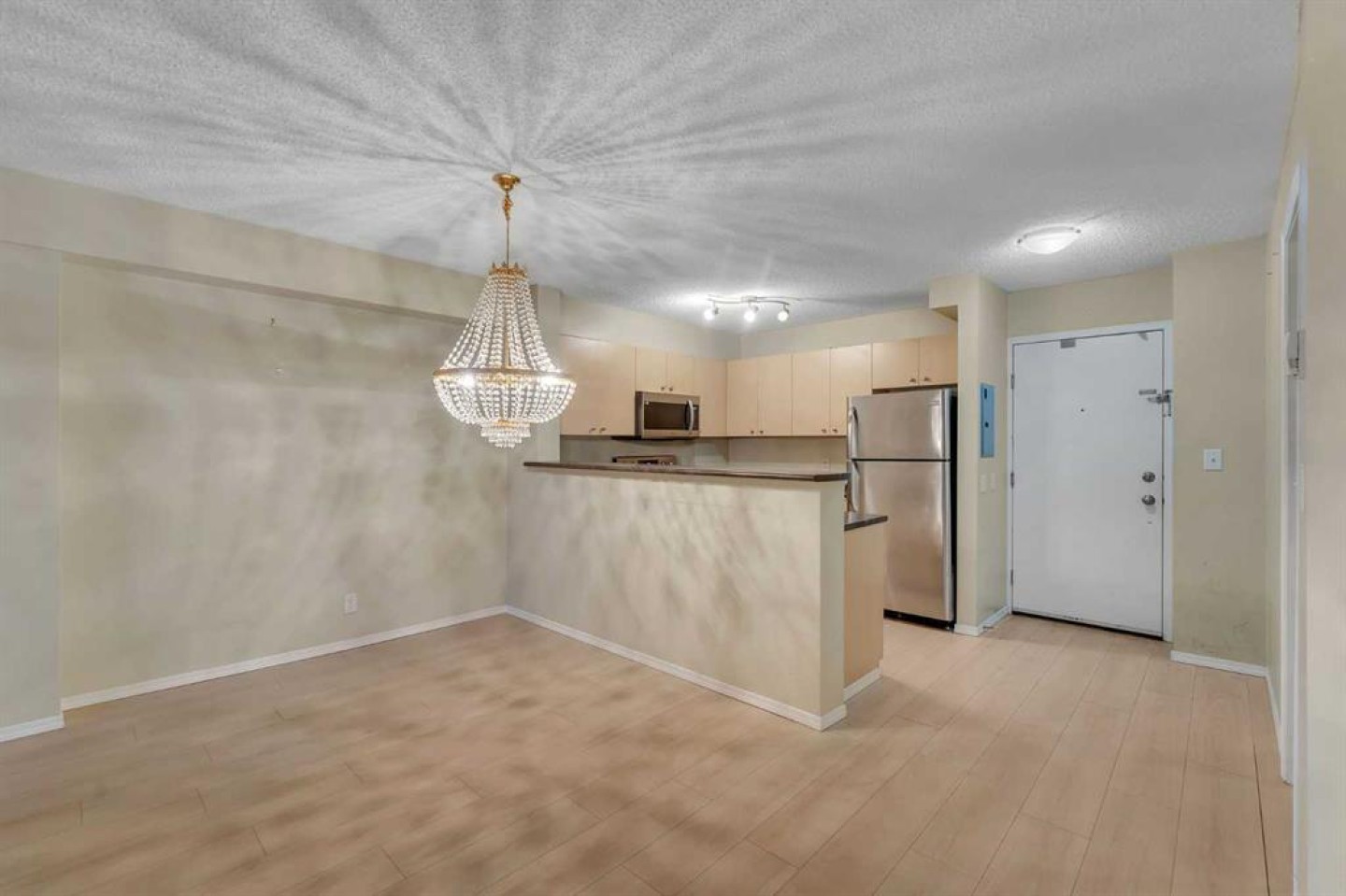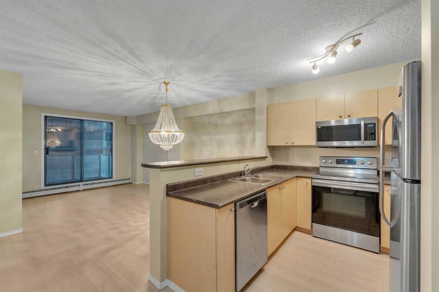 LISTED BELOW ASSESSMENT VALUE | CONVENIENT LOCATION | 2 BEDROOM | TITLED PARKING | IN-UNIT LAUNDRY | DOWNTOWN LIVING Conveniently located in the heart of downtown Calgary, this stylish 2-bedroom condo offers impressive city views from a downtown-facing balcony. Featuring a functional open-concept layout, the unit includes titled parking and in-unit laundry for added convenience. Step inside to a spacious foyer that leads into a well-equipped kitchen complete with stainless steel appliances, ample cabinet storage, and generous counter space—ideal for both everyday living and entertaining. Just off the kitchen, the open living space comfortably accommodates a dining area, beautifully accented by an elegant chandelier. The bright living room is filled with natural light from the glass door leading to the balcony—perfect for enjoying morning coffee while taking in the downtown skyline. The primary bedroom is generously sized, while the second bedroom offers versatility for guests, a home office, or additional living space. The home is completed by a full bathroom and the convenience of in-suite laundry. Experience the ease and excitement of living in Calgary’s vibrant downtown, where restaurants, cafés, shopping, entertainment, and transit are all just steps away—delivering an urban lifestyle that’s both convenient and undeniably energetic.