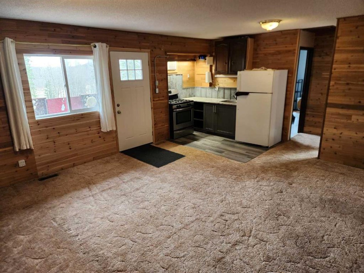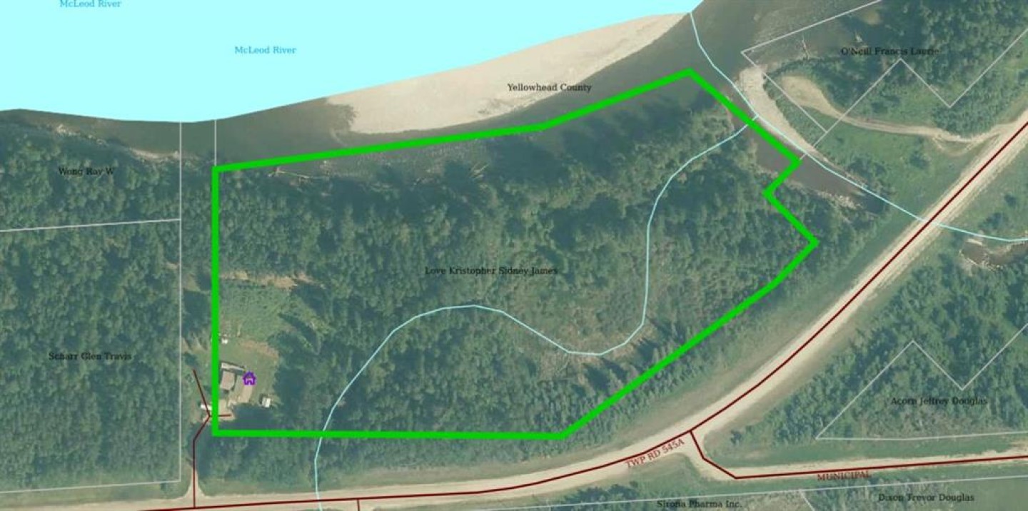 12.9 acres with Mcleod River front on north side of property and boarders the Carrot Creek on the east side. Very private back yard overlooking the river. Home has double attached garage and a separate basement entrance to allow for an extra suite.