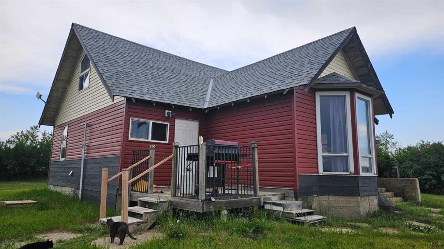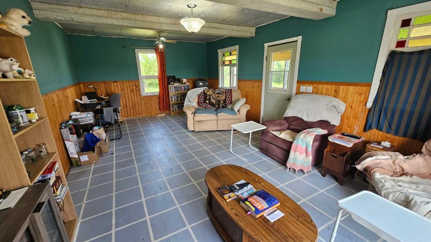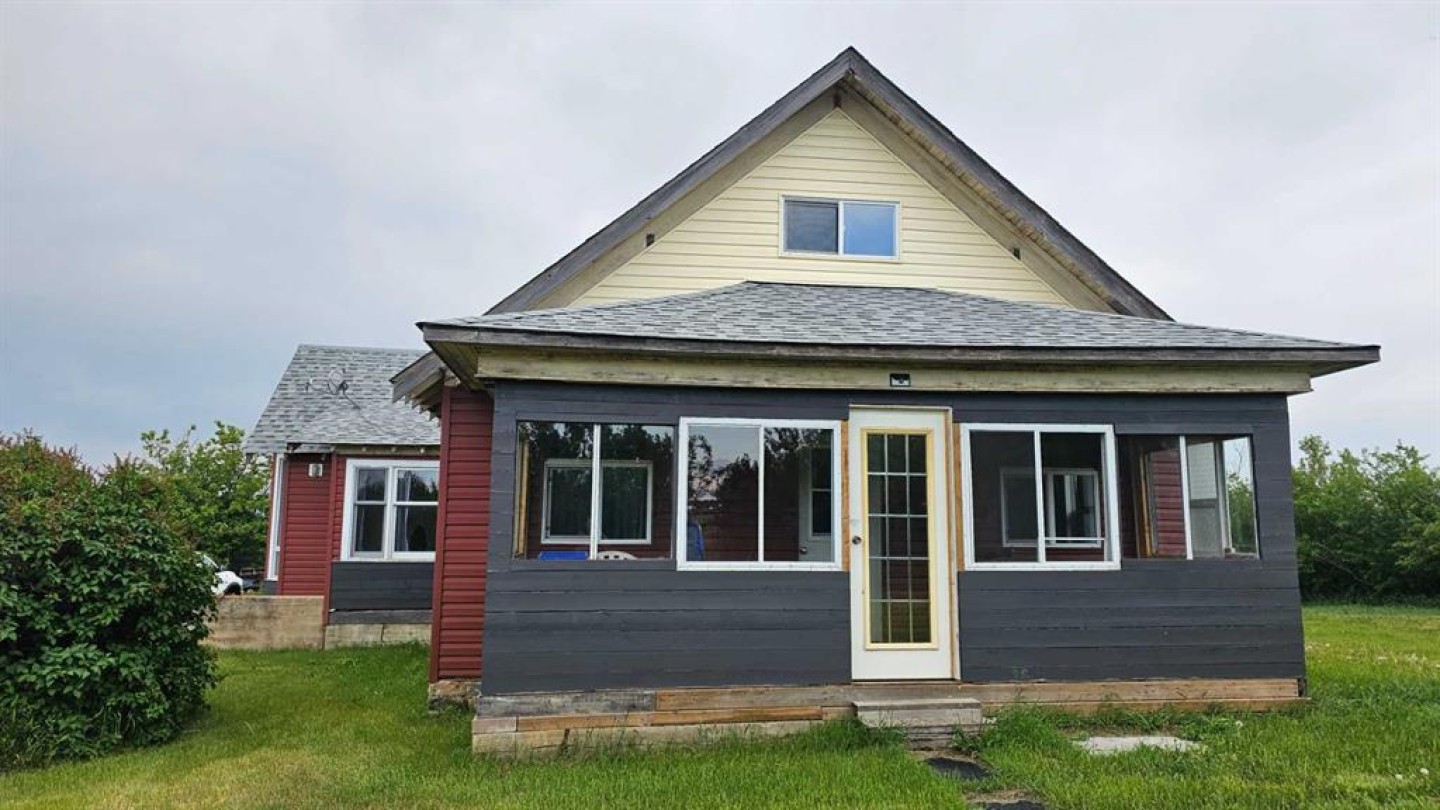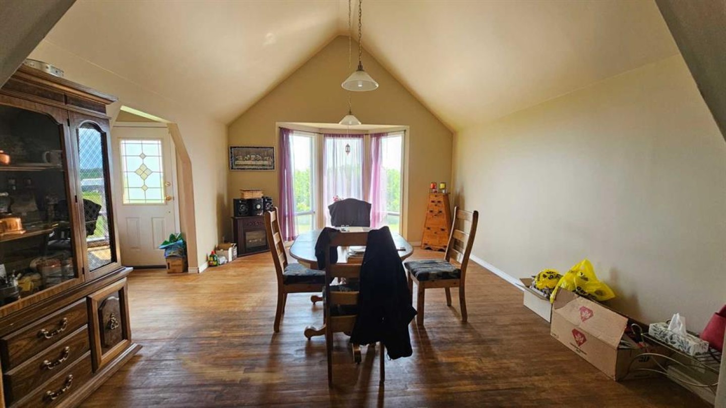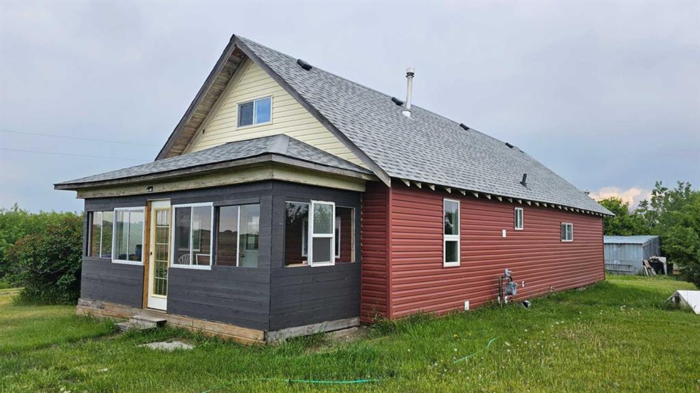 Located just 4 miles off pavement, this 1900 plus sq ft story and a half sits on 5.71 acres, it may have been built in 1905, but has many renovations. With the construction of a secure basement, the wood retaining walls, sump pump and weeping tile, makes this a sturdy house. It also has two bedrooms, one on the main floor and one on the upper level. There is a four piece bathroom on the main floor, along with a covered rear porch with a freezer, 100 amp service. From there you walk into the large kitchen with gas top stove, 2 wall ovens and a large island to assist in the prepping of the food for dinners. Off the kitchen is the laundry room, with storage. Beside the dining room with a step up is the dining room with an awesome view out the south to the open fields, having no neighbors to the west or south. The front porch is right off the dining room also. The primary bedroom and a four piece bathroom are just off the dining room along with a bonus room that has storage . The main floor also has a large open living room with an extra sun room on the east side of the house. The roof has been done in 2018, vinyl siding as well, vinyl windows also, some new and some done in 1992. There is original hardwood flooring, laminate and vinyl. Furnace was put in 2010, hot water 2020 and a new pressure tank in 2023. The walls have mostly been stripped to the studs and re insulated with rock wool and wired. Off the rear porch is the 8x8 deck great to barbecue on. There are a few older out sheds that help with storing the garden equipment. A large garden is also ready and planted for the new owners. With 5.71 acres you have loads of room to enjoy the space for the kids, animals, or whatever.