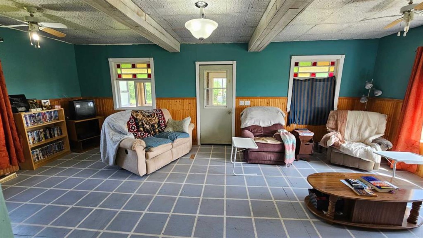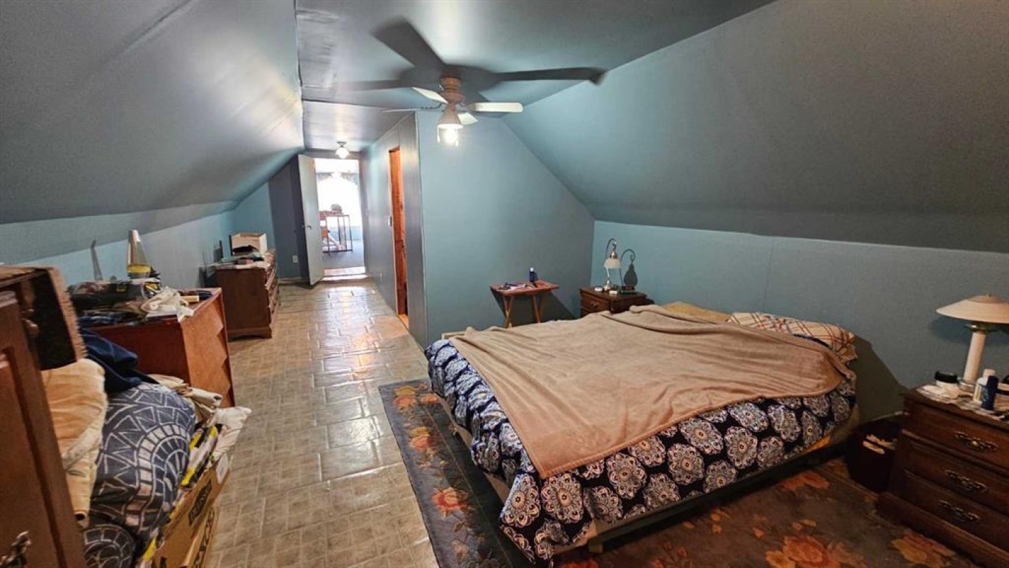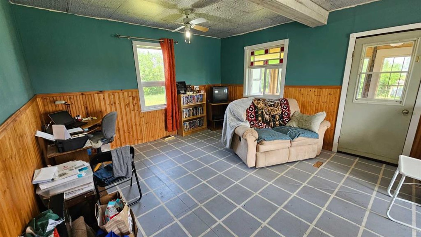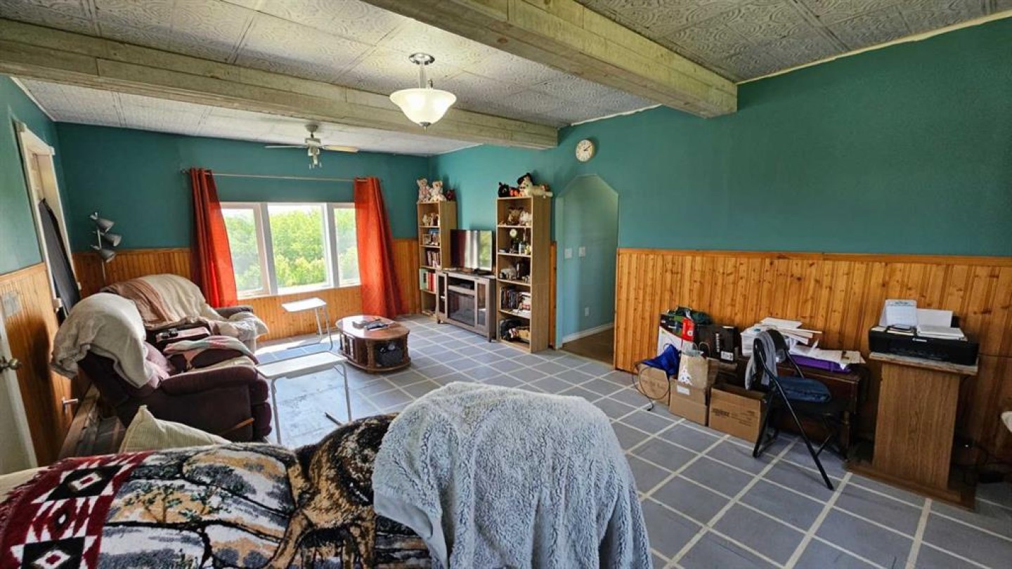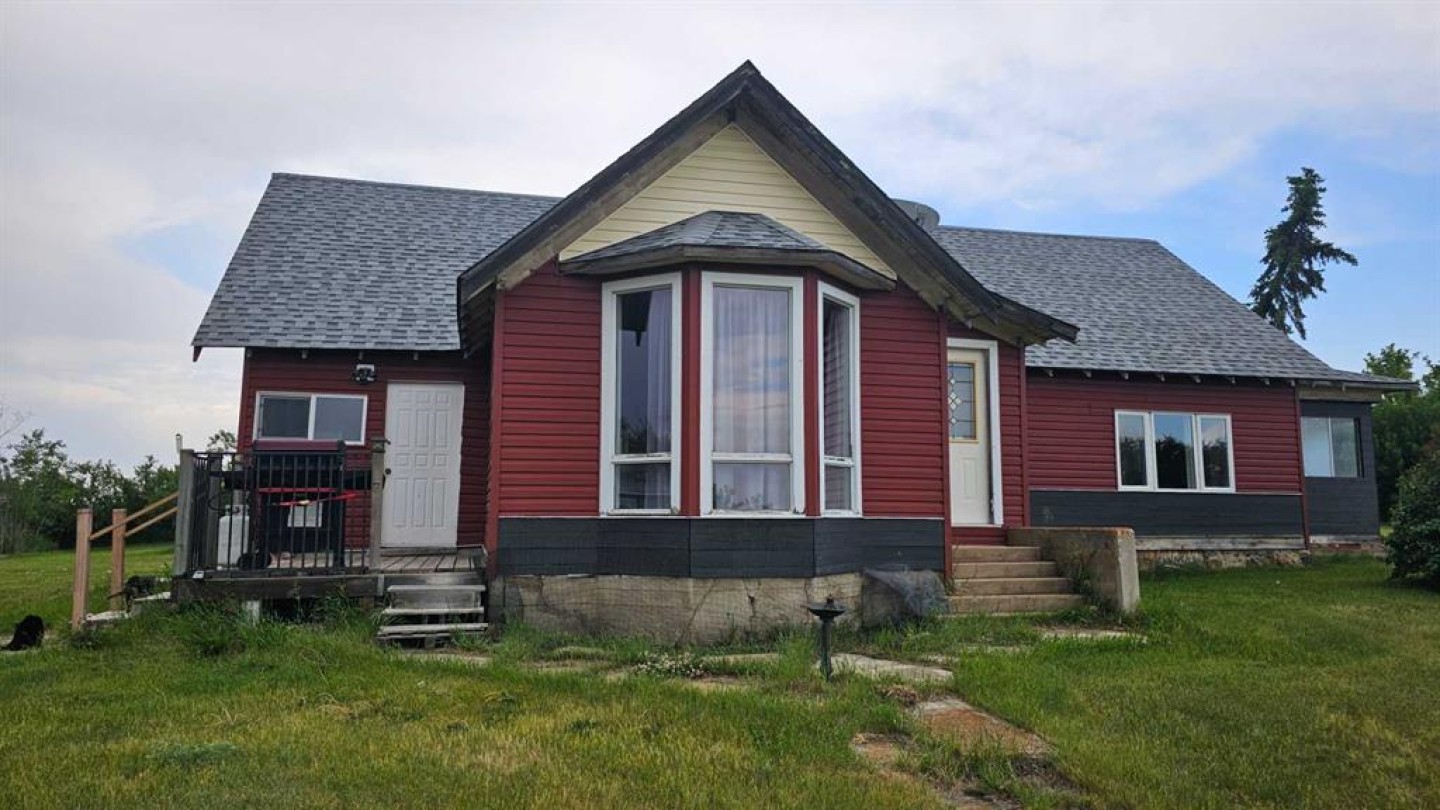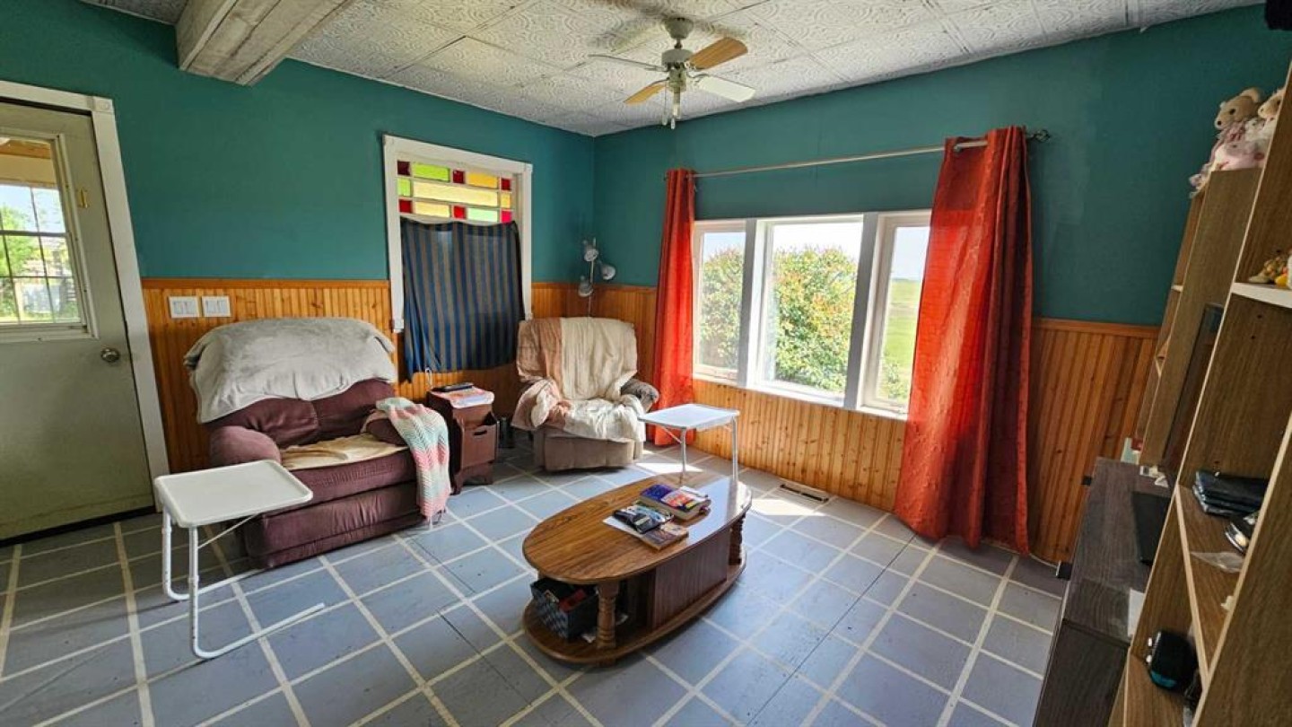 Located just 4 miles off pavement, this 1900 plus sq ft story and a half sits on 5.71 acres, it may have been built in 1905, but has many renovations. With the construction of a secure basement, the wood retaining walls, sump pump and weeping tile, makes this a sturdy house. It also has two bedrooms, one on the main floor and one on the upper level. There is a four piece bathroom on the main floor, along with a covered rear porch with a freezer, 100 amp service. From there you walk into the large kitchen with gas top stove, 2 wall ovens and a large island to assist in the prepping of the food for dinners. Off the kitchen is the laundry room, with storage. Beside the dining room with a step up is the dining room with an awesome view out the south to the open fields, having no neighbors to the west or south. The front porch is right off the dining room also. The primary bedroom and a four piece bathroom are just off the dining room along with a bonus room that has storage . The main floor also has a large open living room with an extra sun room on the east side of the house. The roof has been done in 2018, vinyl siding as well, vinyl windows also, some new and some done in 1992. There is original hardwood flooring, laminate and vinyl. Furnace was put in 2010, hot water 2020 and a new pressure tank in 2023. The walls have mostly been stripped to the studs and re insulated with rock wool and wired. Off the rear porch is the 8x8 deck great to barbecue on. There are a few older out sheds that help with storing the garden equipment. A large garden is also ready and planted for the new owners. With 5.71 acres you have loads of room to enjoy the space for the kids, animals, or whatever.