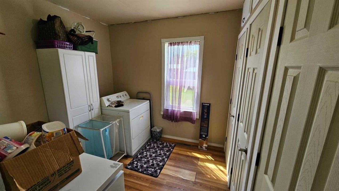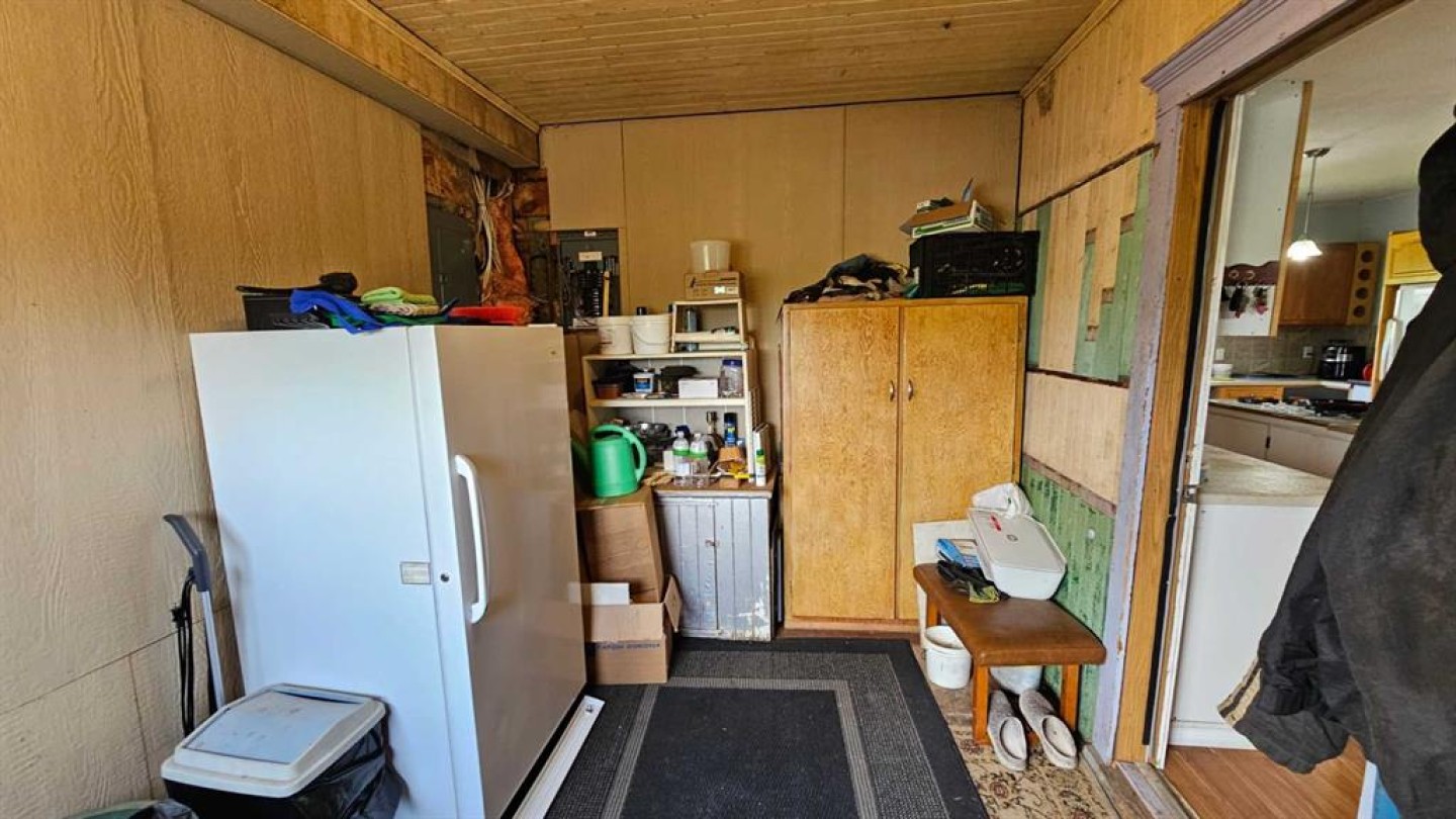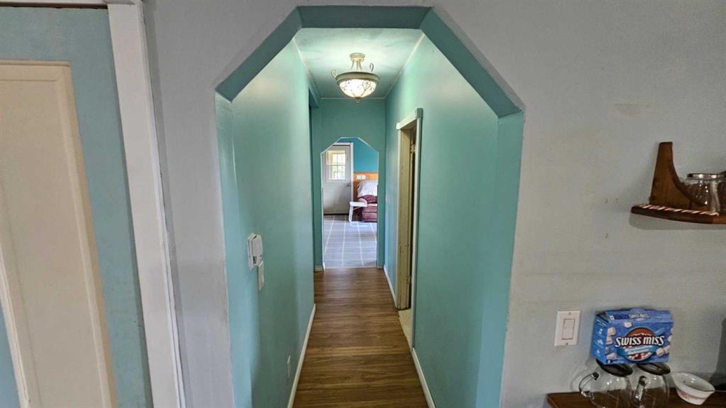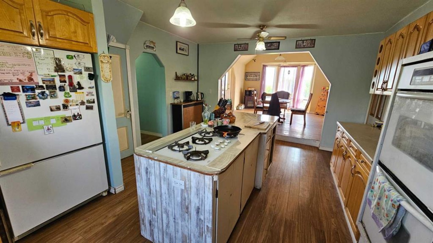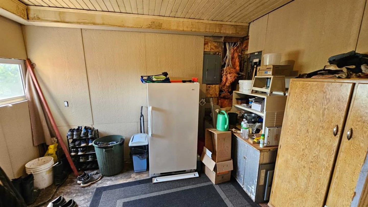 Located just 4 miles off pavement, this 1900 plus sq ft story and a half sits on 5.71 acres, it may have been built in 1905, but has many renovations. With the construction of a secure basement, the wood retaining walls, sump pump and weeping tile, makes this a sturdy house. It also has two bedrooms, one on the main floor and one on the upper level. There is a four piece bathroom on the main floor, along with a covered rear porch with a freezer, 100 amp service. From there you walk into the large kitchen with gas top stove, 2 wall ovens and a large island to assist in the prepping of the food for dinners. Off the kitchen is the laundry room, with storage. Beside the dining room with a step up is the dining room with an awesome view out the south to the open fields, having no neighbors to the west or south. The front porch is right off the dining room also. The primary bedroom and a four piece bathroom are just off the dining room along with a bonus room that has storage . The main floor also has a large open living room with an extra sun room on the east side of the house. The roof has been done in 2018, vinyl siding as well, vinyl windows also, some new and some done in 1992. There is original hardwood flooring, laminate and vinyl. Furnace was put in 2010, hot water 2020 and a new pressure tank in 2023. The walls have mostly been stripped to the studs and re insulated with rock wool and wired. Off the rear porch is the 8x8 deck great to barbecue on. There are a few older out sheds that help with storing the garden equipment. A large garden is also ready and planted for the new owners. With 5.71 acres you have loads of room to enjoy the space for the kids, animals, or whatever.
