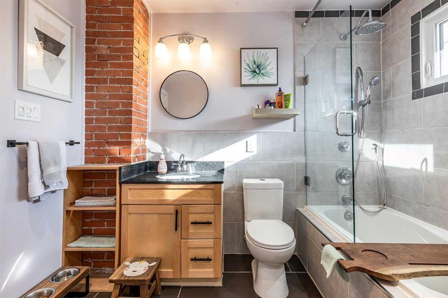 The transformation of this home has been years in the making, with phenomenal updates throughout. The modern kitchen features a large island, white cabinetry, stainless steel appliances, and many thoughtful extras including a spacious dining area with built-in seating. Restored original hardwood floors add a warm, rustic accent to the home’s contemporary style.