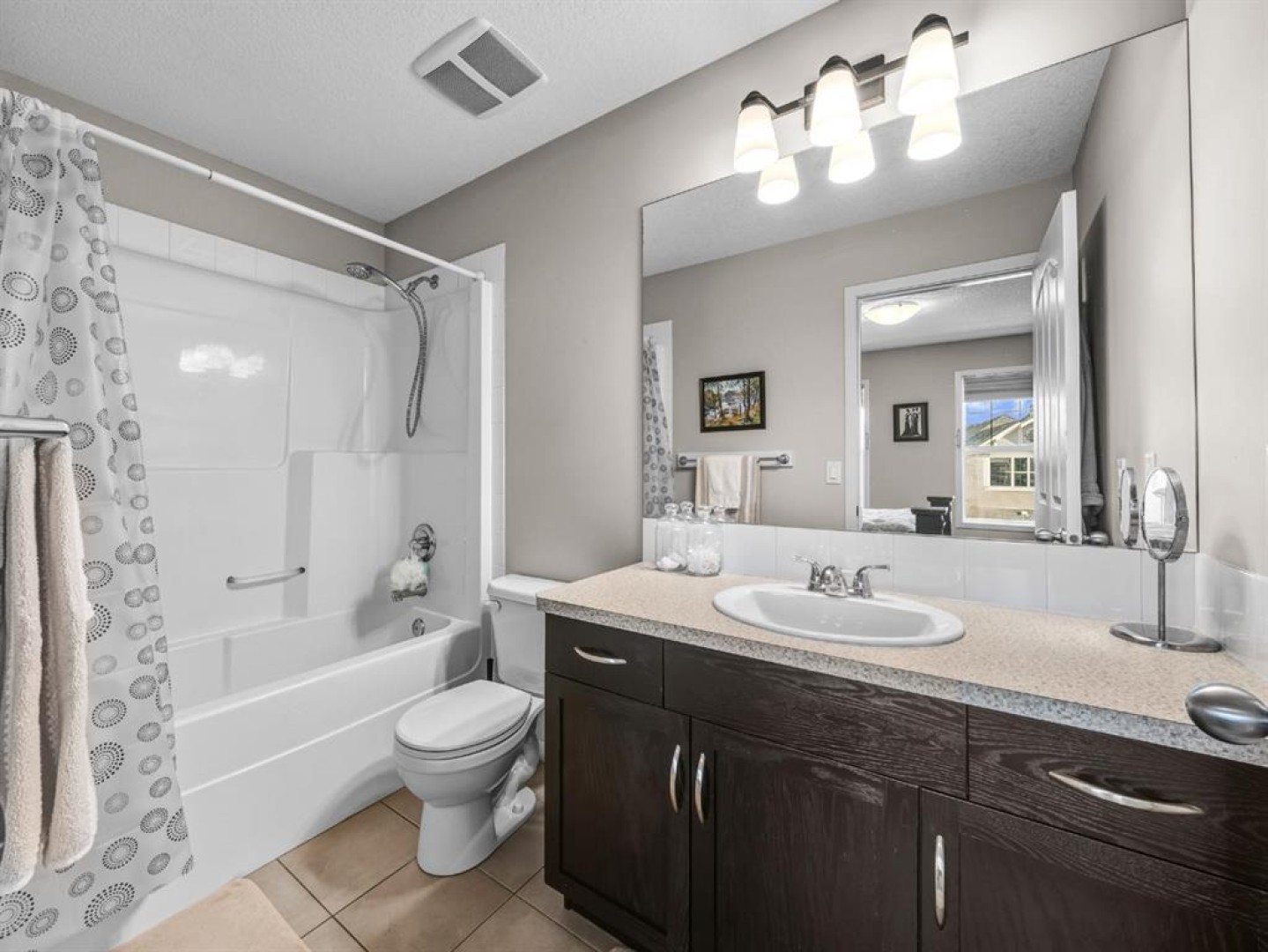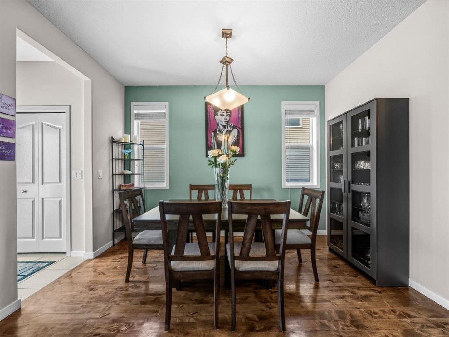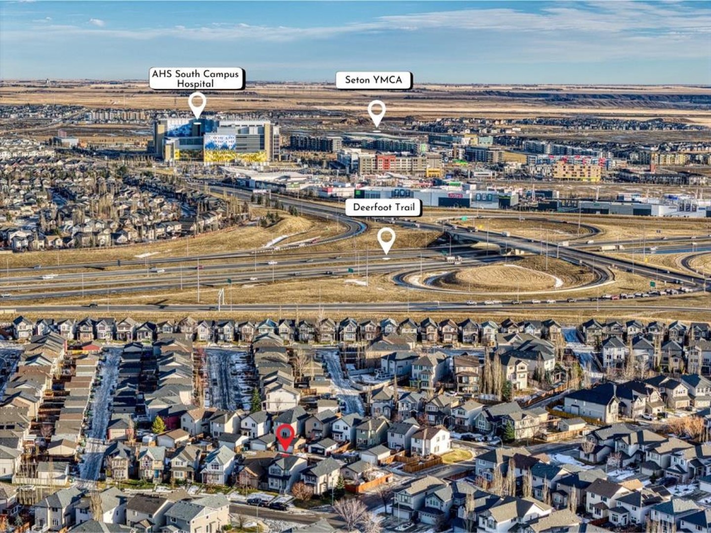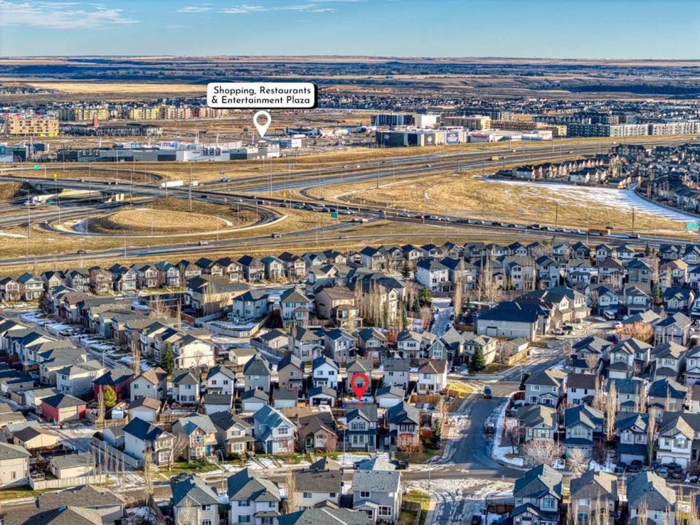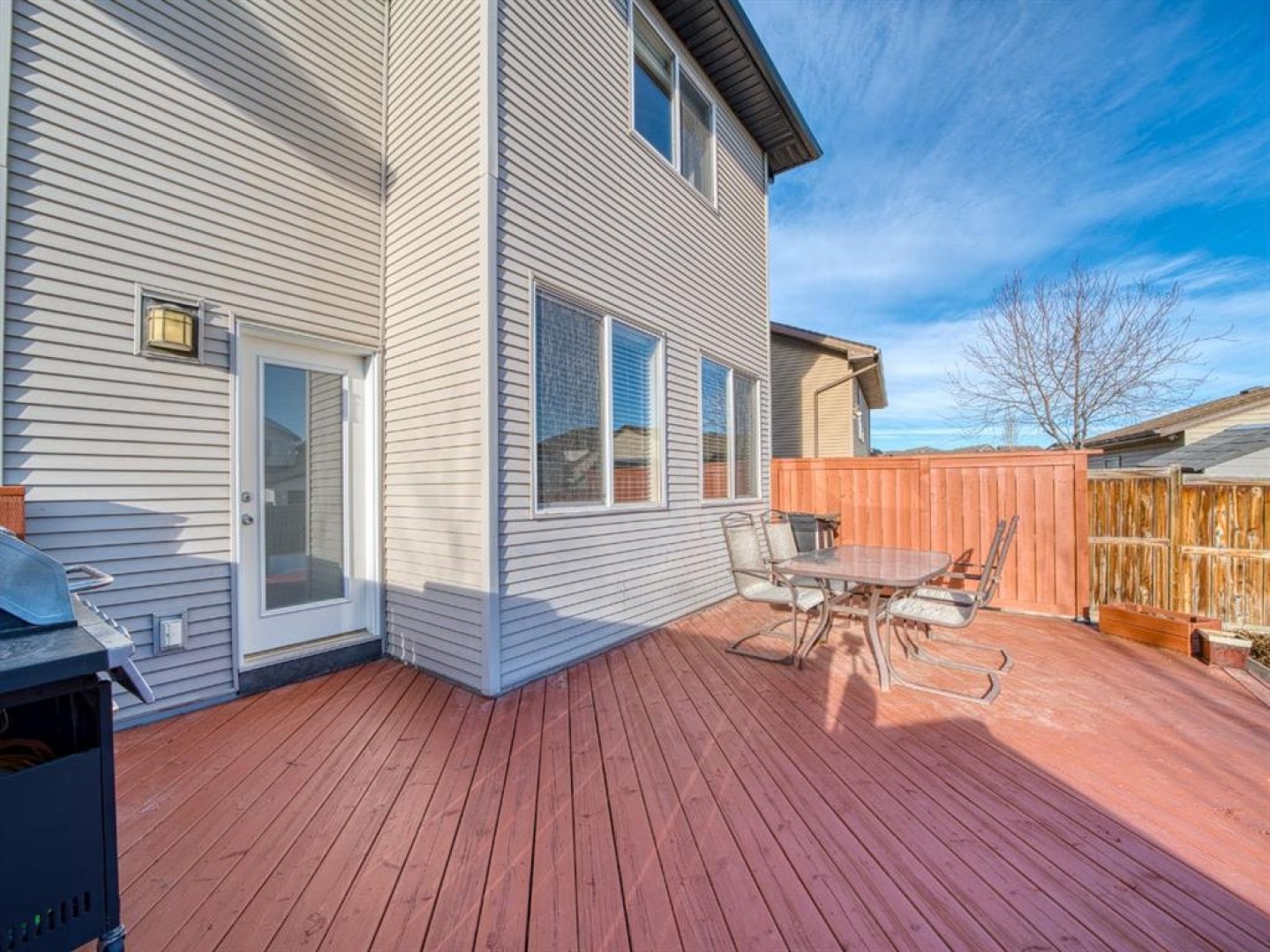 Immaculately maintained, this spacious 3 bedroom, 2.5 bath home features a thoughtfully designed layout with a main floor den, perfect for a home office or flex space. The kitchen showcases dark stained cabinetry, black appliances, granite countertops, a spacious island and a pantry. The dining area is ideal for family gatherings and entertaining guests, while 9 foot ceilings on the main floor enhance the bright, open feel of the large living room. A functional mudroom leads to a two tier deck and a generous backyard with ample space to build a garage, garden or enjoy outdoor activities. Upstairs, the primary bedroom includes a 4 piece ensuite and a walk-in closet, while the other two well sized bedrooms share a full bathroom. Enjoy the convenience of upper floor laundry. Notable upgrades include central air conditioning, knockdown ceilings, rounded corners, 9 foot basement ceilings, dual-zone heating, a rough-in for central vacuum, hardwood flooring in the kitchen, dining, and living areas, tile in the entryway and bathrooms and newer washer, dryer and dishwasher. Located in the well established community of Cranston, this home offers an exceptional blend of nature and modern amenities. Residents enjoy access to the Bow River pathway system, Fish Creek Park and extensive walking pathways, including routes with stunning views. The area is served by K–4 and 5–9 public schools, as well as a K–9 Catholic school. Cranston’s vibrant community centre features a gym, meeting and party rooms, tennis courts, splash park, outdoor skating rinks and a variety of programs. South Health Campus, a high school, and the YMCA in Seton are just minutes away. The area also offers easy access to Deerfoot Trail and Stoney Trail, making for a convenient commute.