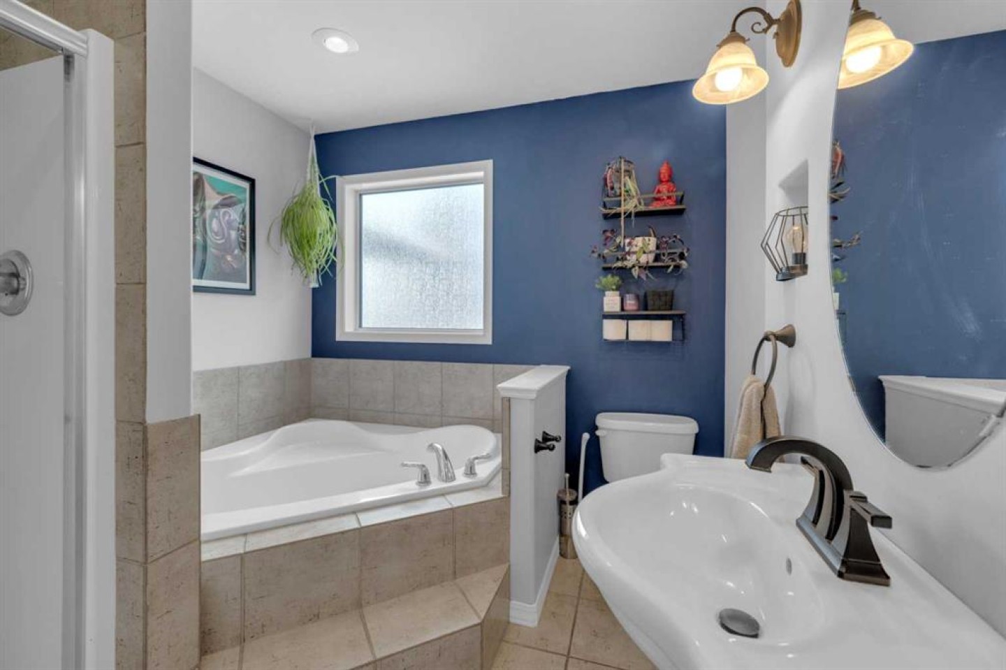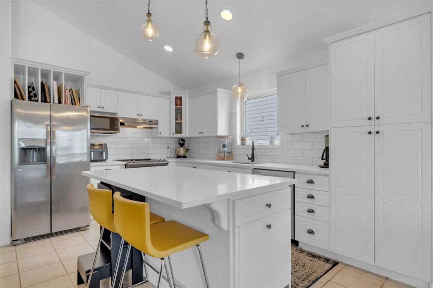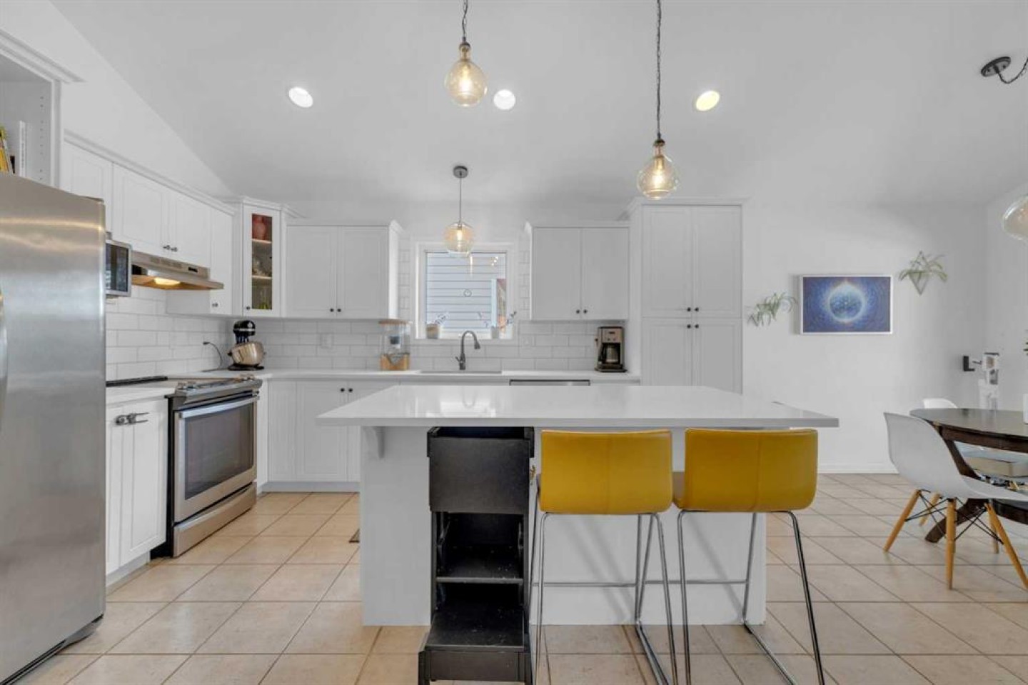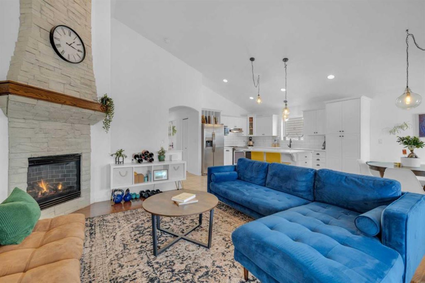 Wow! Fully finished bungalow in the highly desirable neighborhood of Lancaster. Close to schools, several amenities such as the Collicut Centre, shopping & parks. This home backs onto walking trails as well! Attached oversized double car garage with double doors. The living room features vaulted ceiling with a gas fireplace with a beautiful stone surround that goes from floor to ceiling. Open concept living area to the kitchen and dining area. The kitchen has brand new quartz countertops, brand new stainless steel appliances in 2022/2023 (with exception of hood fan) are all included, full tile backsplash and a large island. The dining area has garden doors out to the covered deck, beautifully landscaped back yard with recently planted trees, a pond/fountain, fire pit area and dog run. The main floor also features 3 bedrooms in total. A bedroom off the front entry with frenchdoors, can be used as an office or bedroom as it does have a closet. The other bedroom is small but perfect for a nursery or another office/storage. The primary bedroom features vaulted ceilings, a wall closet plus a walk-in closet, ensuite bathroom with soaker tub. Also, on the main floor is a 4pc. bathroom and laundry. The basement is fully finished and has a huge family room, two more bedrooms that are quite large and a full bathroom. Other features: central AC, new hot water tank in 2024, underground sprinklers, in-floor heating in basement and garage, and rough-in for a wet bar in basement family room.