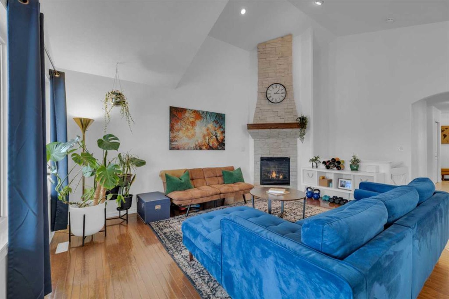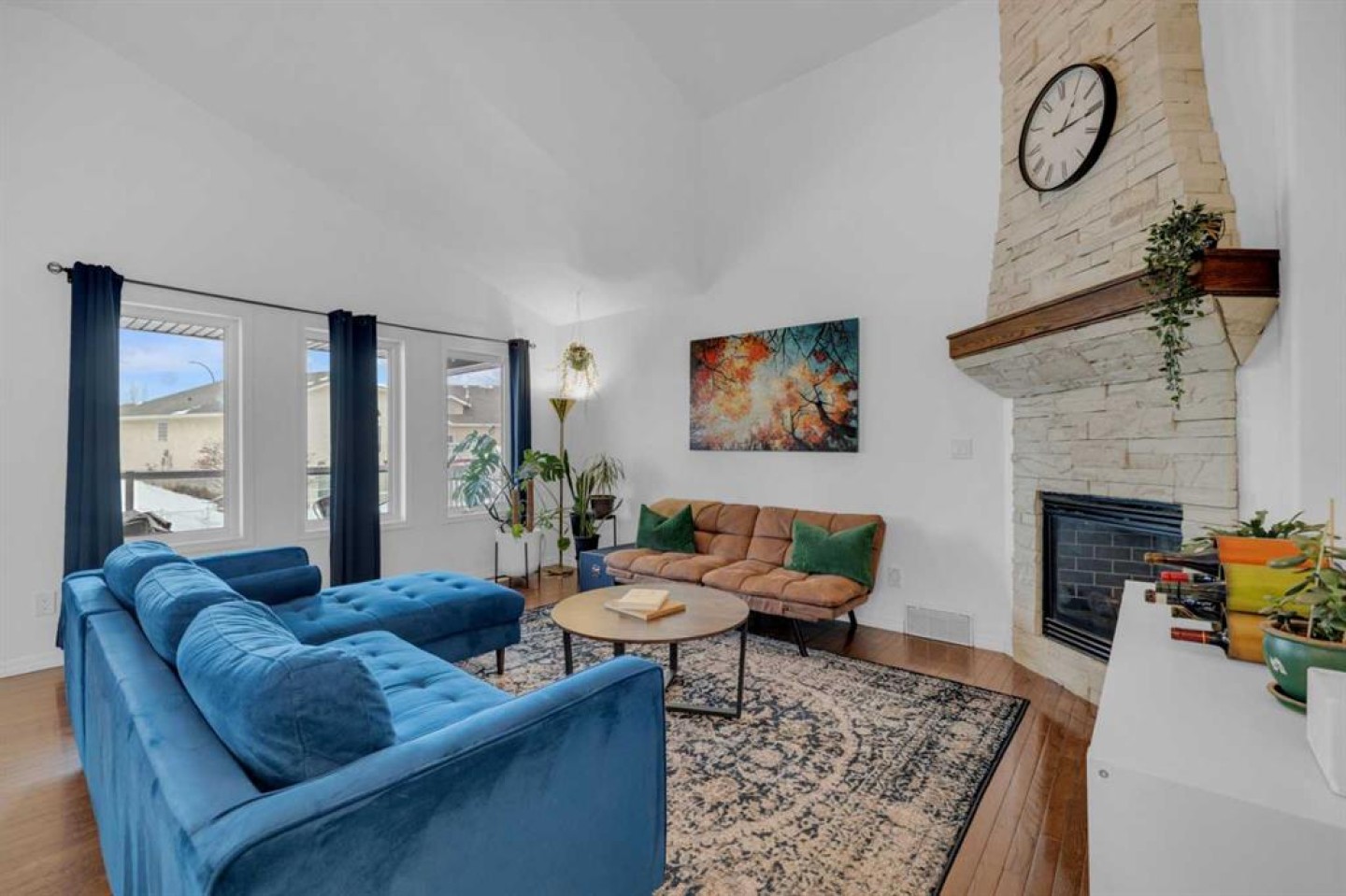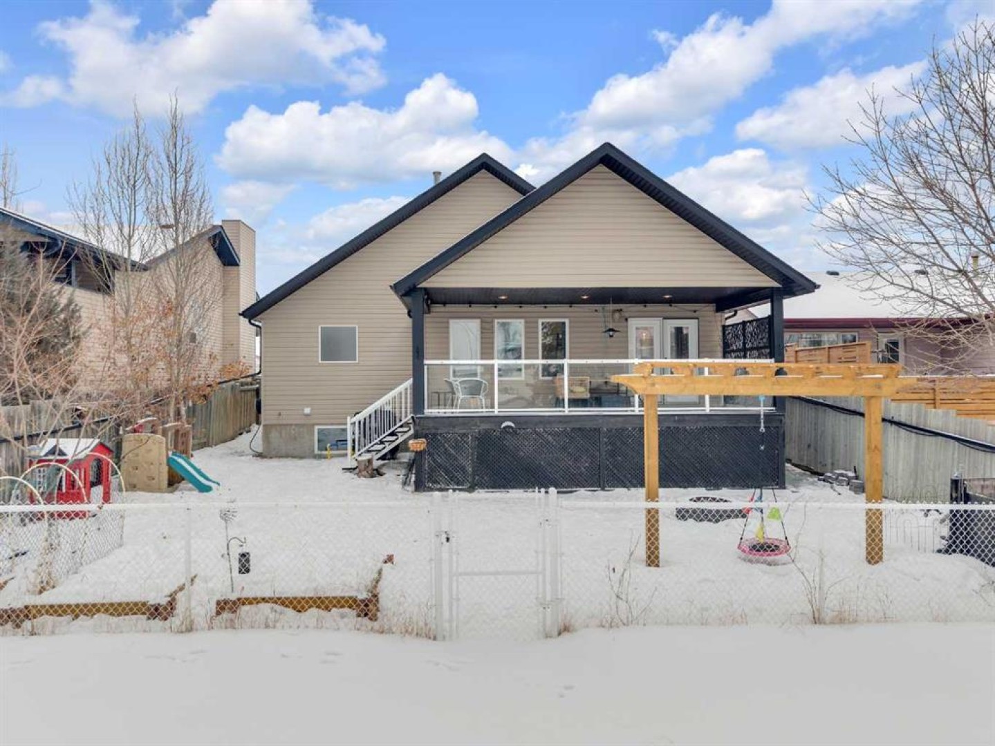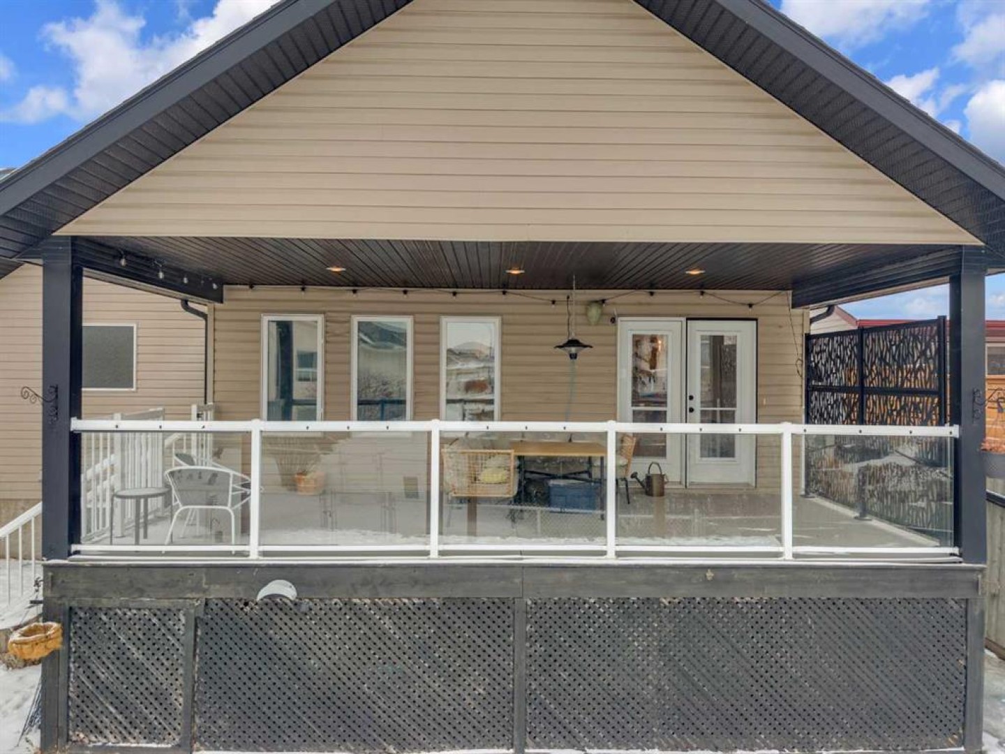 Wow! Fully finished bungalow in the highly desirable neighborhood of Lancaster. Close to schools, several amenities such as the Collicut Centre, shopping & parks. This home backs onto walking trails as well! Attached oversized double car garage with double doors. The living room features vaulted ceiling with a gas fireplace with a beautiful stone surround that goes from floor to ceiling. Open concept living area to the kitchen and dining area. The kitchen has brand new quartz countertops, brand new stainless steel appliances in 2022/2023 (with exception of hood fan) are all included, full tile backsplash and a large island. The dining area has garden doors out to the covered deck, beautifully landscaped back yard with recently planted trees, a pond/fountain, fire pit area and dog run. The main floor also features 3 bedrooms in total. A bedroom off the front entry with frenchdoors, can be used as an office or bedroom as it does have a closet. The other bedroom is small but perfect for a nursery or another office/storage. The primary bedroom features vaulted ceilings, a wall closet plus a walk-in closet, ensuite bathroom with soaker tub. Also, on the main floor is a 4pc. bathroom and laundry. The basement is fully finished and has a huge family room, two more bedrooms that are quite large and a full bathroom. Other features: central AC, new hot water tank in 2024, underground sprinklers, in-floor heating in basement and garage, and rough-in for a wet bar in basement family room.