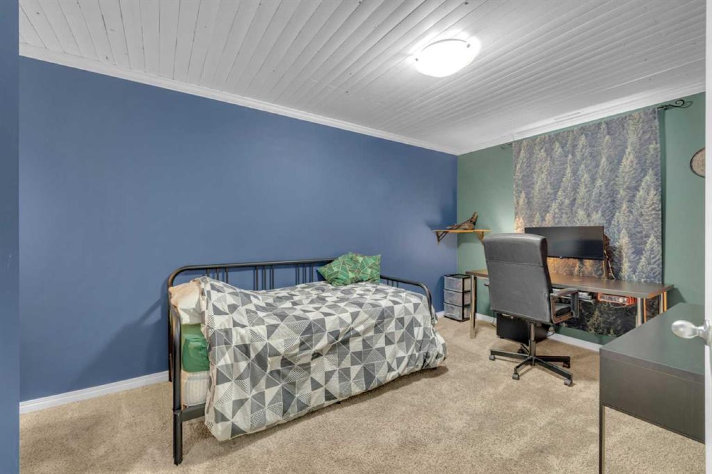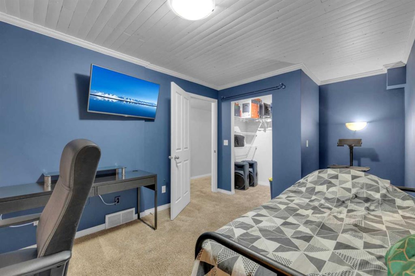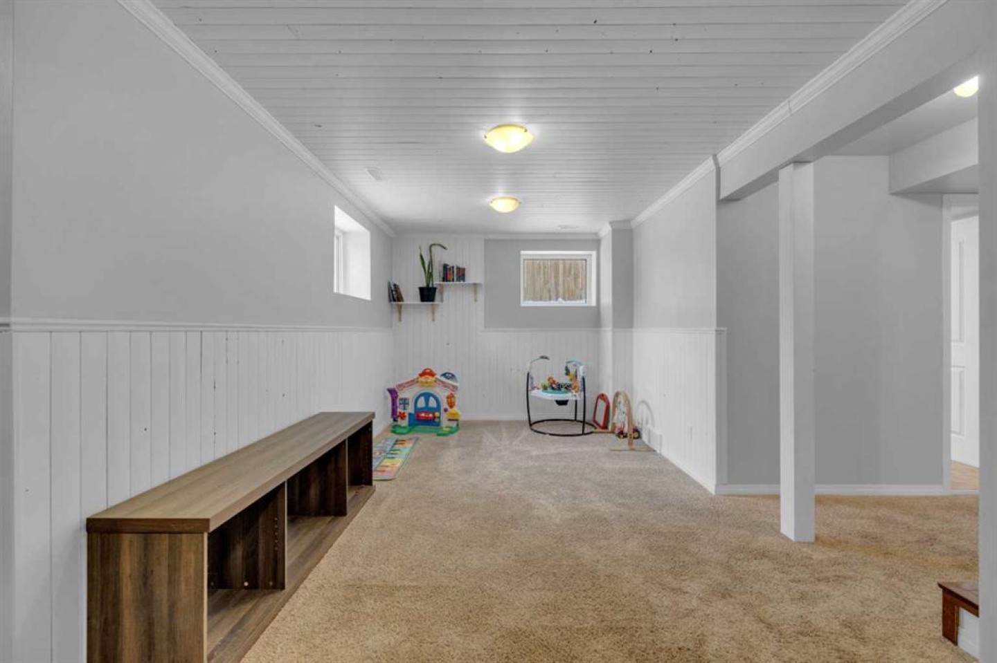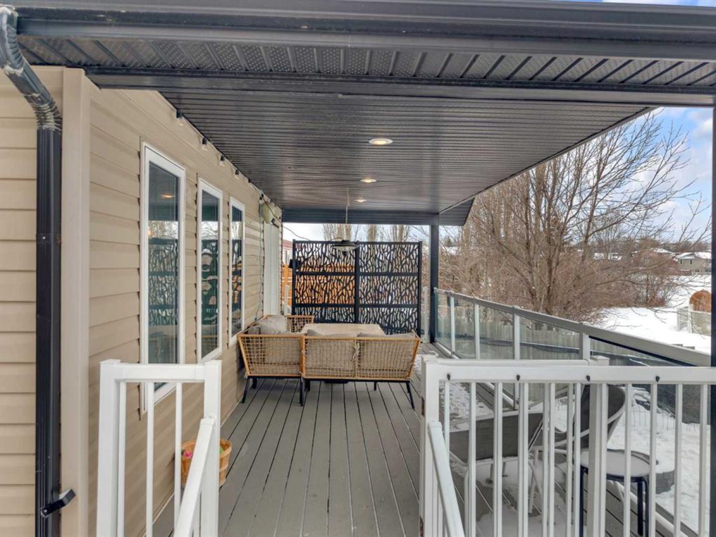 Wow! Fully finished bungalow in the highly desirable neighborhood of Lancaster. Close to schools, several amenities such as the Collicut Centre, shopping & parks. This home backs onto walking trails as well! Attached oversized double car garage with double doors. The living room features vaulted ceiling with a gas fireplace with a beautiful stone surround that goes from floor to ceiling. Open concept living area to the kitchen and dining area. The kitchen has brand new quartz countertops, brand new stainless steel appliances in 2022/2023 (with exception of hood fan) are all included, full tile backsplash and a large island. The dining area has garden doors out to the covered deck, beautifully landscaped back yard with recently planted trees, a pond/fountain, fire pit area and dog run. The main floor also features 3 bedrooms in total. A bedroom off the front entry with frenchdoors, can be used as an office or bedroom as it does have a closet. The other bedroom is small but perfect for a nursery or another office/storage. The primary bedroom features vaulted ceilings, a wall closet plus a walk-in closet, ensuite bathroom with soaker tub. Also, on the main floor is a 4pc. bathroom and laundry. The basement is fully finished and has a huge family room, two more bedrooms that are quite large and a full bathroom. Other features: central AC, new hot water tank in 2024, underground sprinklers, in-floor heating in basement and garage, and rough-in for a wet bar in basement family room.