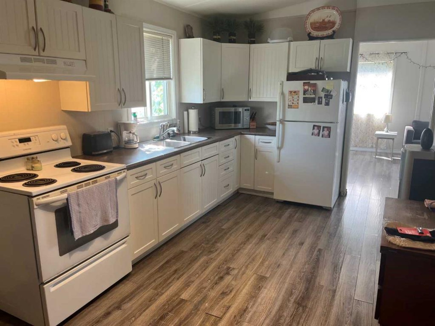 Welcome to Lloydminster Village. This mobile sits on leased land and has two bedrooms, a 4-piece bathroom, and plenty of living space. This affordable home could be a great place for you and your family. This mobile also has a carport and space to park an additional vehicle. One interior wall could be installed again to make this a 3 bedroom home. Lot rental fee of $ 750.00 per month. Call to view!