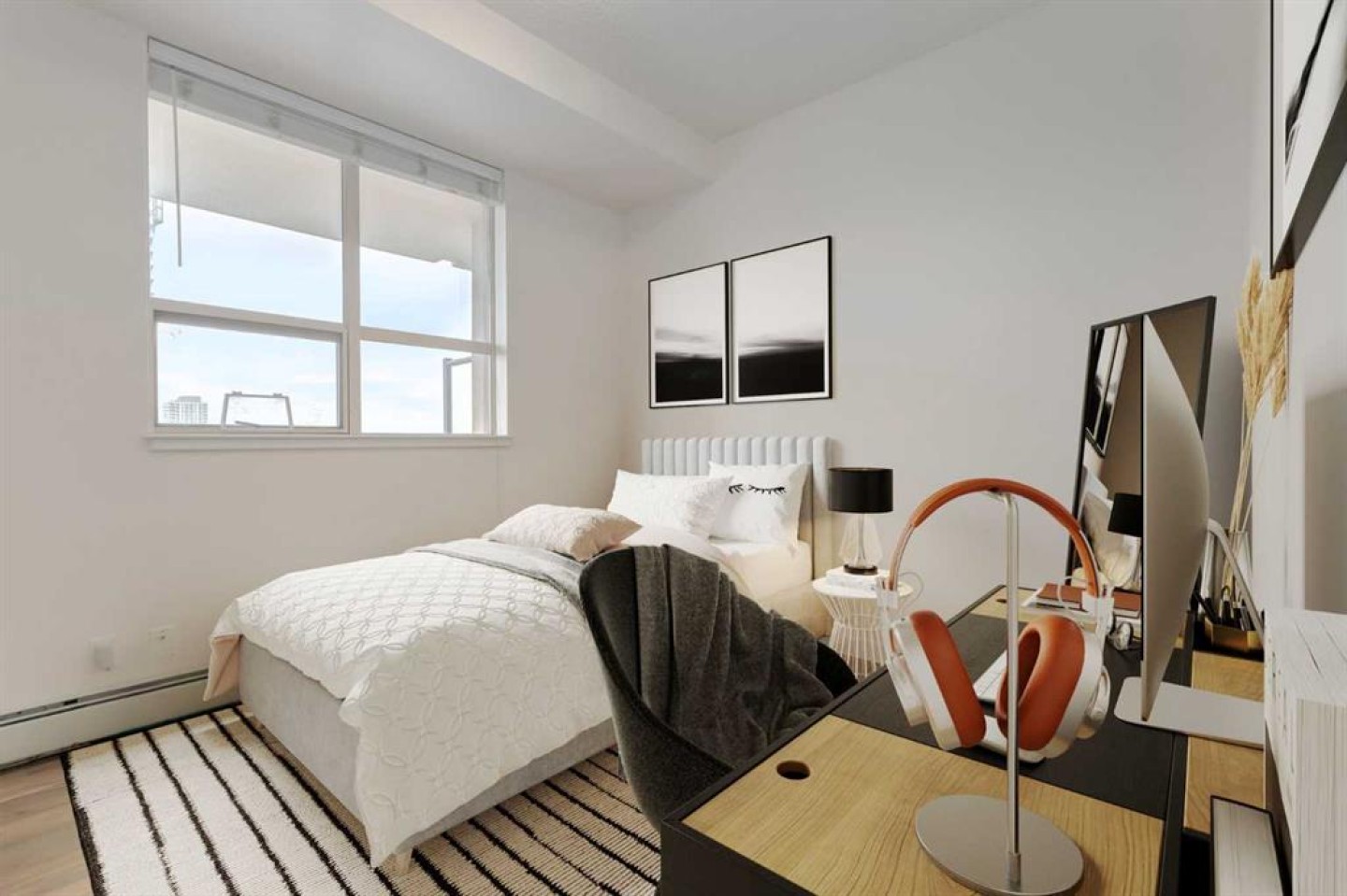 Enjoy life in the clouds as you look out from your new home on the 16th floor and soak in the gorgeous rocky mountain views by day and the glowing downtown skyline by night. This move in ready 2 bed, 2 bath *almost* 800 sq ft corner unit condo is filled with natural light thanks to its large windows and south and western exposures. The breathtaking sunsets and twinkling city lights views will never get old. The open-concept layout makes everyday living convenient and entertaining effortless. The living room is bright and inviting and flows into a functional kitchen with a breakfast bar and yes there is room for a table. Step outside onto the generously sized covered balcony where you can enjoy morning coffee, dine al fresco (it’s a great place to BBQ), unwind in the fresh air and take in your urban surroundings. You’ll find two great sized bedrooms, including a primary retreat with its own private 3pc ensuite and a second bedroom with easy access to another full 4pc bathroom making this floor plan ideal for roommates and hosting guests. Timeless vinyl plank flooring runs throughout the unit and in suite laundry means laundry day can be whenever you decide. BONUS: Your condo fees take care of the essentials: electricity, heat, and water/sewer, all rolled in (condo fee is the unit + stall). The excellently located building offers peace of mind and is the epitome of a ‘lock it and leave it’ lifestyle with 24-hour concierge/security services onsite. You’ll also enjoy access to a fully equipped fitness center, bike storage and your own secure, titled underground parking stall so you can say goodbye to scraping your windshield in freezing temperatures. When it comes to location, it doesn’t get much better: the grocery store is literally steps away, and you’re surrounded by some of the city’s best restaurants, coffee shops, pubs, boutiques and nightlife meaning you will always have something to do. Commuting is easy with the c-train and major roadways just minutes away. Add in the nearby River pathways for biking or walking, plus the vibrant energies from trendy neighbouring downtown districts like Kensington, and you’ve got the recipe for a truly magical inner-city lifestyle.