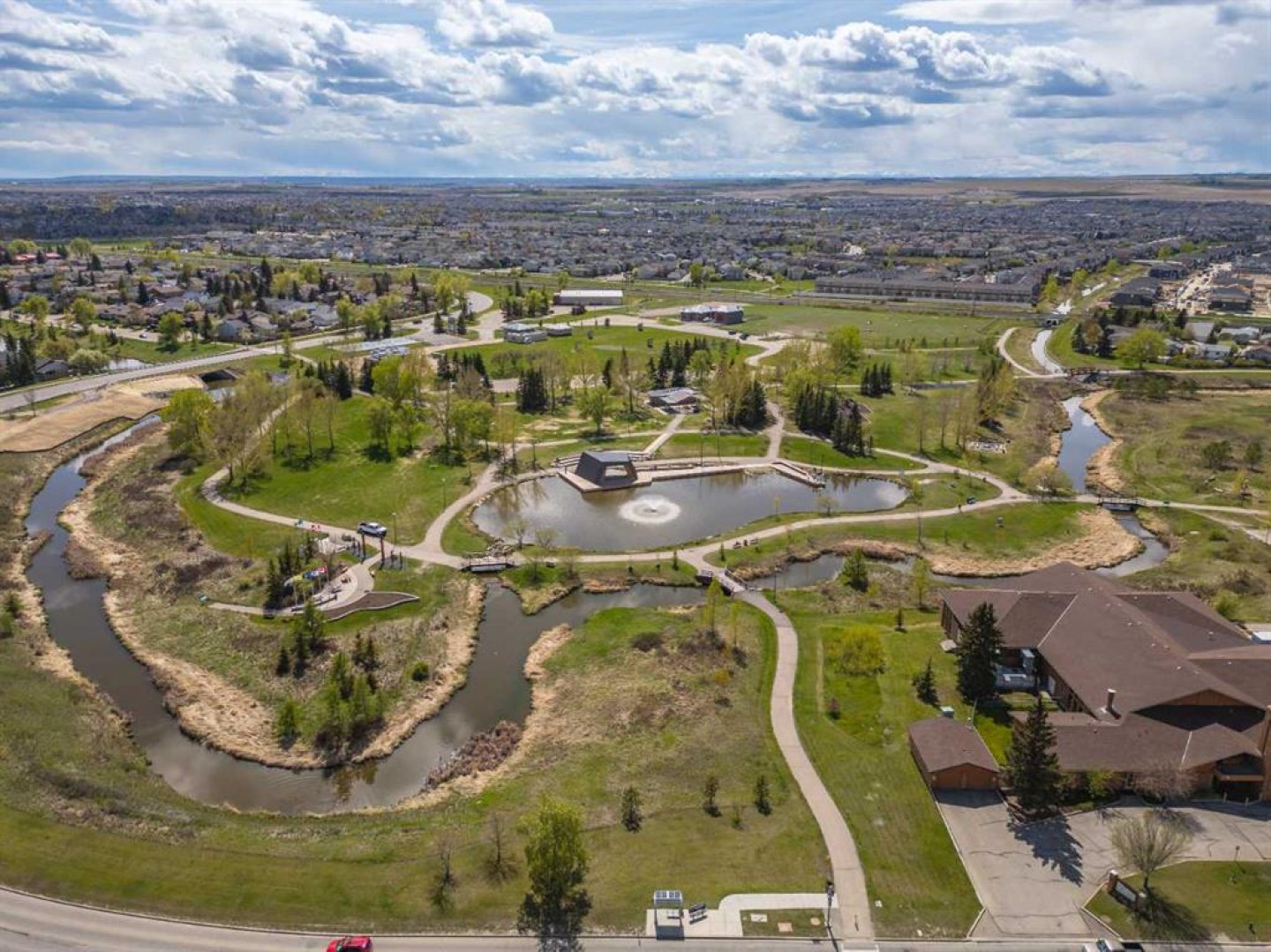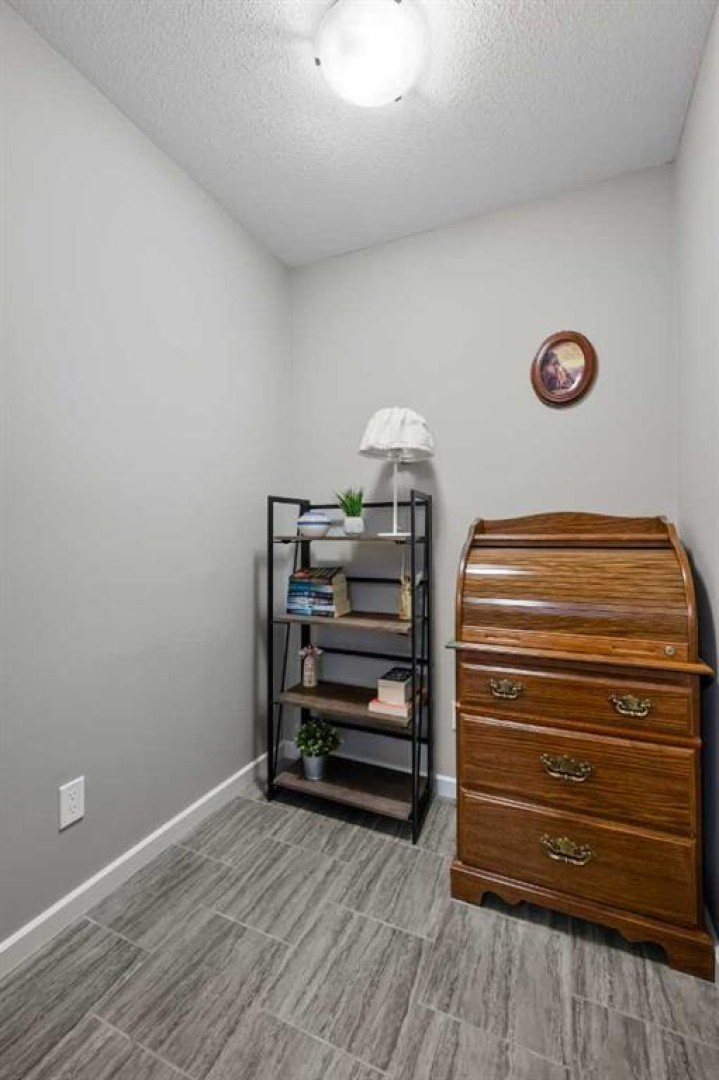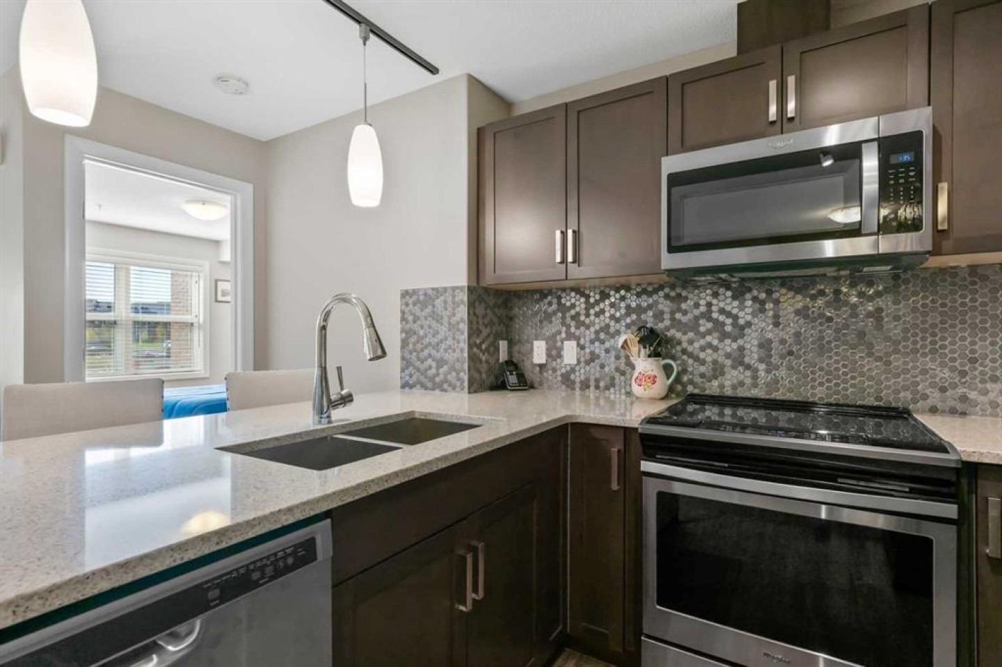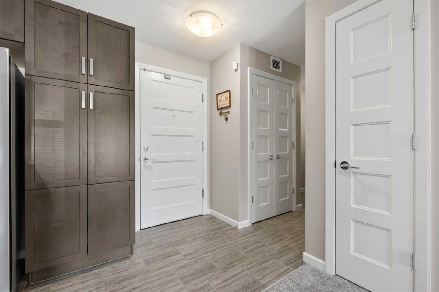 Welcome to The Chateaux! Airdrie's premier 55+ condo building in the wonderful community of Kings Heights known for its sophistication, exceptional pride of ownership and unbeatable access to nearby amenities. Upon entering this unit, you'll be impressed by the abundance of natural light, enhanced by its south-facing exposure. You're greeted by beautiful tile flooring that leads into a welcoming front entrance, where you'll find a spacious coat closet with built-in shelves, perfect for storing coats, keys and shoes. To your right is the kitchen, you will love not only the generous counter space but also the ample cabinetry this layout offers. The kitchen features granite countertops, a large sink, a lazy Susan in the corner cabinet, a garburator and a counter overhang for bar stool seating, ideal for casual meals. Stainless steel appliances and a well-appointed pantry with pull-out drawers complete this thoughtfully designed space. Moving into the living room, enjoy a spacious layout complemented by a beautiful custom California Closets media centre that is perfect for your TV, artwork and storage needs. Stay cool in the summer with a wall-mounted A/C UNIT! Your southwest-facing balcony offers year-round afternoon sun, making it the perfect place to enjoy your morning coffee, tea or an evening drink. This balcony was upgraded at the time of construction with glass panels and a gate, offering convenient direct access to the landscaped common areas, especially great for pet owners. The primary bedroom is a dream, with a large south-facing window and a spacious walk-through closet that leads into your ensuite bathroom. The ensuite features a walk-in shower with a built-in seat and elegant glass doors. The second bedroom is impressively sized and bright with custom built-in California Closet organizers that provide exceptional storage and organization. A second full bathroom is located just outside this room, complete with a beautiful vanity and a large bathtub. In-suite laundry is neatly tucked into a dedicated closet with room for storage and laundry supplies. This apartment also features a versatile den to the left of the front door that is ideal for a home office, additional storage or exercise space. For parking, enjoy the convenience of a titled underground stall located just steps from the elevator. In front of your stall, you’ll find a large, secure storage locker. Plus, there’s ample outdoor visitor parking for your guests. The Chateaux features a beautifully landscaped courtyard with a gas fireplace, and an amenity room available for private bookings where residents regularly gather here for social events and happy hours. There's also a secure underground workshop for woodworking enthusiasts. Located in Kings Heights, you’re within walking distance to Save-On-Food, Shoppers Drug Mart, banks, salons, restaurants and more meeting all your grocery, shopping and healthcare needs. Call for a private viewing today!