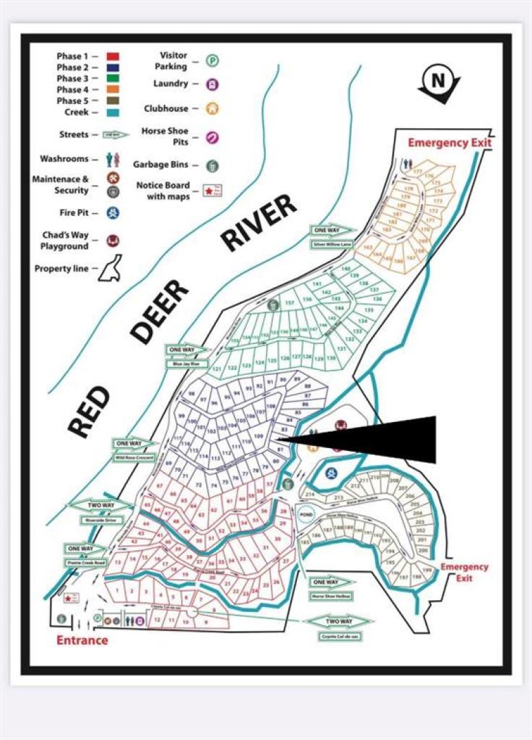 This hidden gem is perfectly positioned on an extra-large pie lot. The lot includes a 20' x 10' covered addition with an attached 6' x 10' deck, a storage shed, woodshed, and large firepit. Just bring your trailer or park model and you’ll be ready to kick off summer with comfort and style. This sunny and beautiful lot offers mature trees and great privacy. Riverside is a gated, seasonal community set along the Red Deer River, known for its peaceful setting and incredible access to nature. You’ll enjoy seasonal water and sewer, power hookups, and the safety and convenience of year-round caretakers. The community features a clubhouse with seasonal laundry and showers, playground, horseshoe pits, and a shared firepit area, plus a year-round washroom and laundromat facility. Located within the town of Sundre, you're just minutes from restaurants, pubs, grocery stores, gas stations, ice cream shops, and three golf courses. With crown land, lakes, bike trails, and endless outdoor adventures nearby, this is a perfect home base for every season. Whether you're a weekend camper or a year-round adventurer, this is your chance to own a one-of-a-kind lot in a sought-after community. This spacious retreat offers unbeatable access to the Clubhouse and park amenities, making it ideal for relaxing weekends or seasonal living.