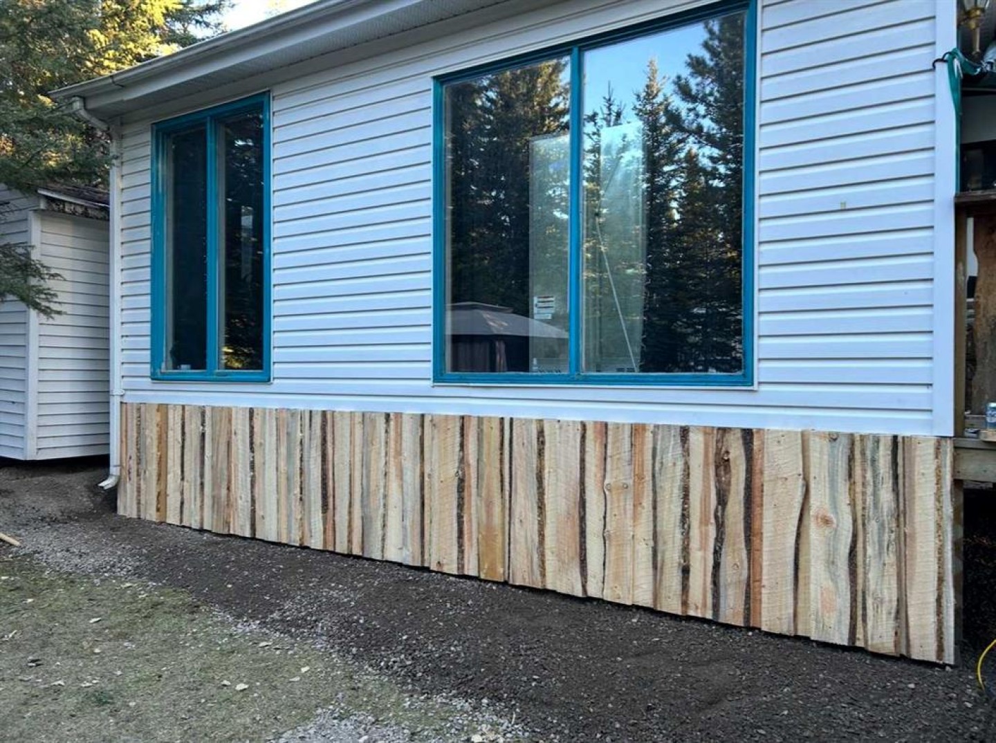 Storage shed, wood shed behind addition