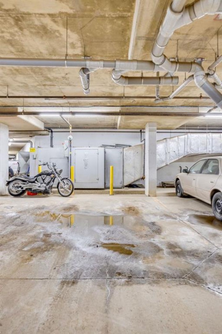 Additional features include one titled underground parking stall. Residents of The Hanginstone Landing enjoy access to premium amenities, including a fully equipped fitness room. Condo fees conveniently cover water, heat, garbage, exterior insurance, and reserve fund contributions.