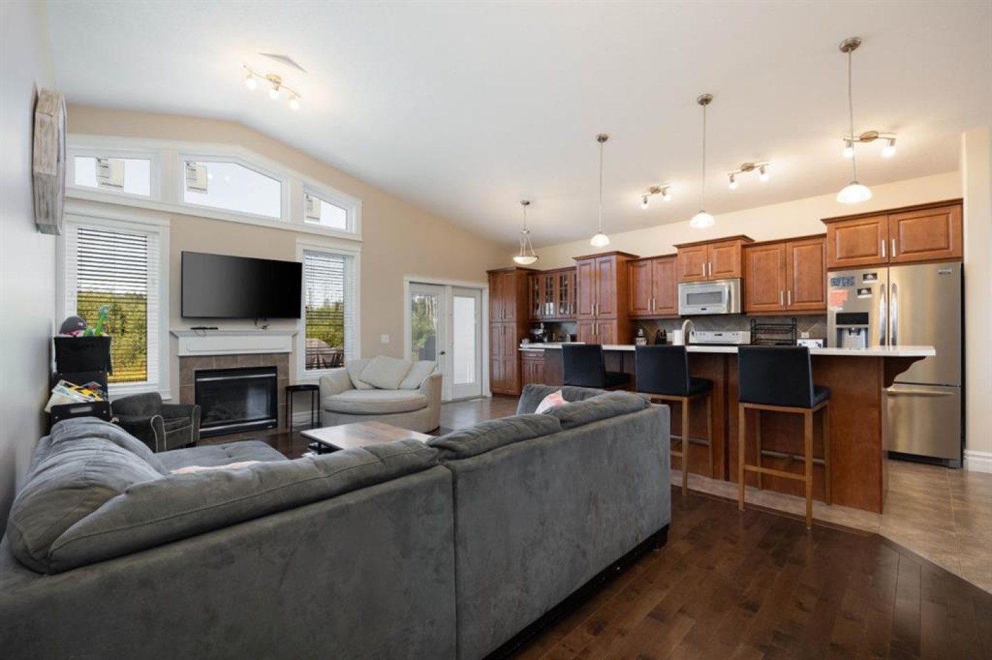 Step into a spacious and inviting entryway, finished with ceramic tile flooring and a large closet for added convenience. The main level showcases a bright, open-concept living space with vaulted ceilings, hardwood floors, and large windows that allow natural light to pour in. The cozy living room, complete with a gas fireplace, offers the perfect place to unwind.