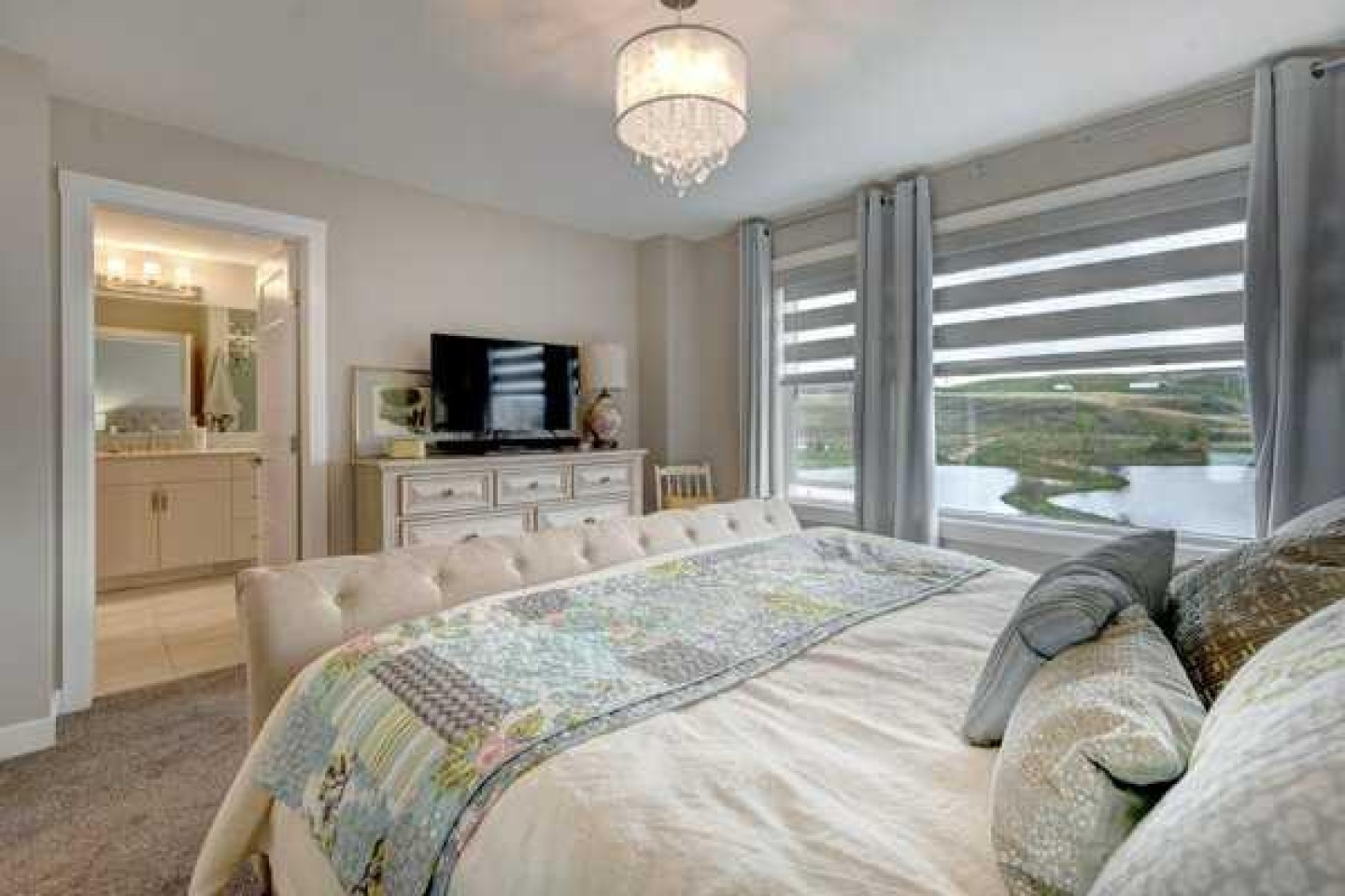 Riverstone has it all. And here it is, your pristine, unique family home. One of the few that back onto a beautiful pond which offers NGEO level waterfowl, spring through late fall: And so close to Bow River pathways! Brookfield Residential designed this home for the original owner with many many high end upgrades to their lovely Rundle plan. You'll enjoy over 2600 sq ft of finished living space. The open style main living space has soaring 10' ceilings, 8' doors, and upscale touches everywhere. This kitchen has the full meal deal treatment with a custom package. Soft close reinforced drawers, luxury backsplash tiling plus a widened and raised island of white quartz , Stainless steel appliances including a chimney hood fan, microwave and a gas range. Joining your guests will be a pleasure in the main living area, with its large dining area where meals are a joy with a view. This main living area has wide windows and a sliding door opening onto a full length extended deck with glass railings, of course. It overlooks the custom designed backyard and the huge pond(no mosquitos due to water flow). All together, creating a tranquil living space all year round. The rear deck is the perfect place to soak up the sun all year long. The large master suite with its 'wide sreen ' window, overlooks the pond and has a gorgeous ensuite , fully glass tiled walk-in shower & a bidet, opening to a luxury sized walk-in closet. Two more bedrooms one with an oversize closet grace the upper level. theres also bonus area that easily makes space for work out or work /play .A 4 pc bathroom and full laundry room complete the 2nd level. The flex family/living room in the walk out could be a home gym/games area. It has a wet bar with sink & up graded wiring for additional appliances. Also, there's a washer dryer hook up in the storage area to make for even more possibilities and independent living! there’s the 4th bedroom here with its beautiful view too. A 4 pc bathroom with linen closet round out the walkout with potential. Sliding doors lead to the fully covered paving stone patio overlooking the backyard & pond. This zen xeri-scaped yard has had 65K in custom designed professional landscaping, including a unique staircase from the deck that makes access to the beautiful yard & green space pond area so easy. Completing this home is an insulated double attached garage with custom wrap around deep & sturdy shelving for all of your extras. Plus, plus, you’ve got RO system for extra filtered drinking water, trash compactor & hot tap on demand for those quick teas and specialty coffees... Yet Another bonus? yes, your 12 ft walk-in master closet with its own skylight!! Of course, you’ll enjoy the central A/C to stay cool all summer long. this wonderful home has all of the things and more that you would have added yourself, but all done and move in ready!. Riverstone is well recognized as a natural wonder neighbourhood. - Note: Pond viewhomes are a rare value