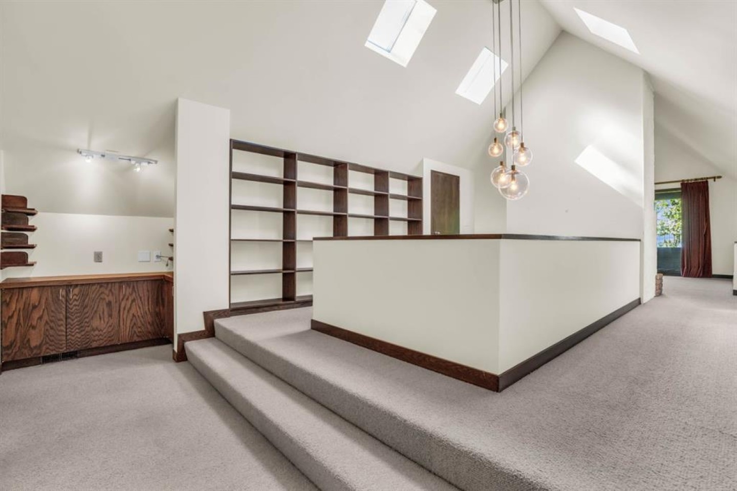 mountains. The upper level offers even more flexibility: a lofted family room with a Spanish-style wood-burning fireplace, a bright skylit den, a hobby
