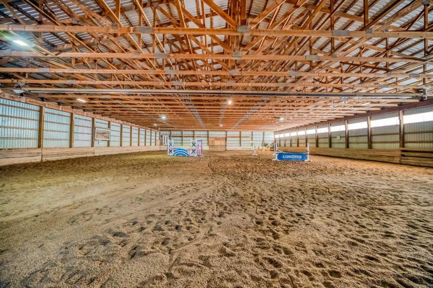 Currently operating as an Equestrian Boarding that allows up to 40 horses! This is almost unheard of! With private and semi private paddocks, 38 to be exact!! As well as 4 quarantine pens. Inside there is the potential to have 20 indoor stalls as well as 2 tie stalls, hot and cold wash rack, blanket storage, tack locker room and feed room. The property also features 3 riding rings the Heated indoor arena 80’ x 120’ outdoor sand ring 150’ x 220’ outdoor all weather ring 160’ x 80’ outdoor dressage ring and round pen 40’. As well as a 2 km trail around the back acreage. The lights in the barn and arena were upgraded to LED.
