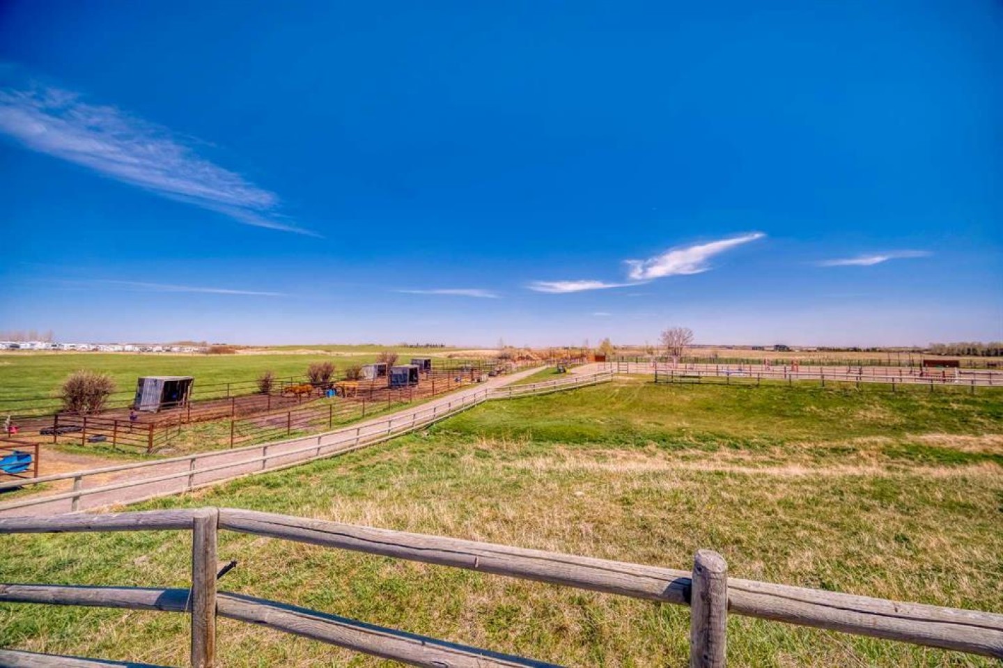 A good opportunity does not come often. An amazing opportunity is even more rare! This once in a lifetime opportunity is truly incredible! 29 acres of land, just on the edge of the fast growing town of Okotoks only a short drive to Calgary. Quiet and serene property, with panoramic views of the magnificent Rocky Mountains to the West! Stunning solar gates as you enter the property tree lined paved driveway and the sellers made sure there is enough room to make sure you are off the main road with a rig while you wait for the gates. Just across the street from the newly developed High-End Luxurious neighbourhood of Green Haven Estates. Easy and quick access to Amenities and Recreation the city has to offer. Only 3 minutes to Okotoks Costco through 370 Ave E.