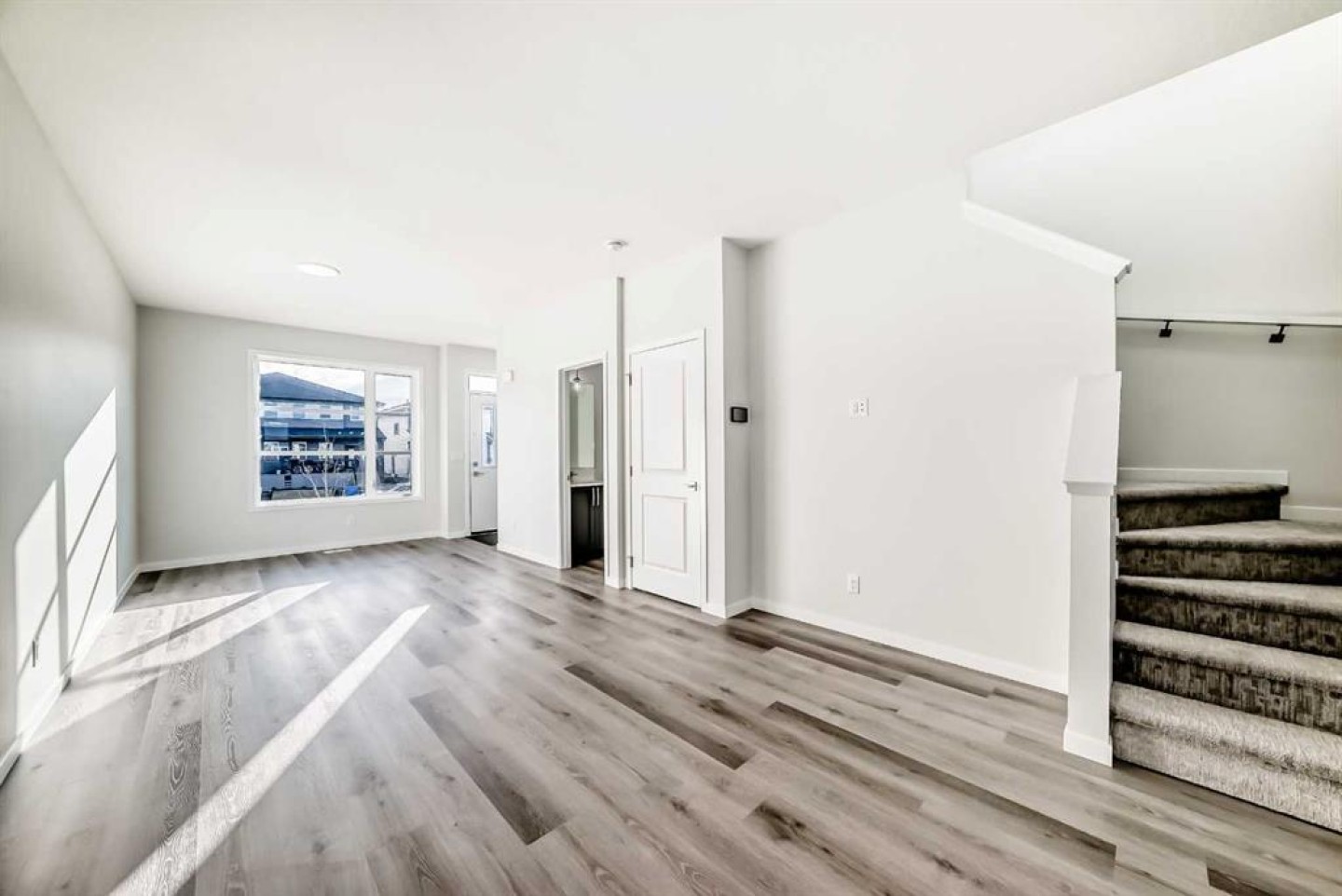 The main floor features a bright, open-concept layout with a spacious living room ideal for entertaining or relaxing with family. The contemporary kitchen is thoughtfully positioned at the rear of the home, seamlessly connected to the dining area and filled with natural light from a large window overlooking the backyard. A convenient rear entrance provides easy access to outdoor gatherings and summer barbecues.