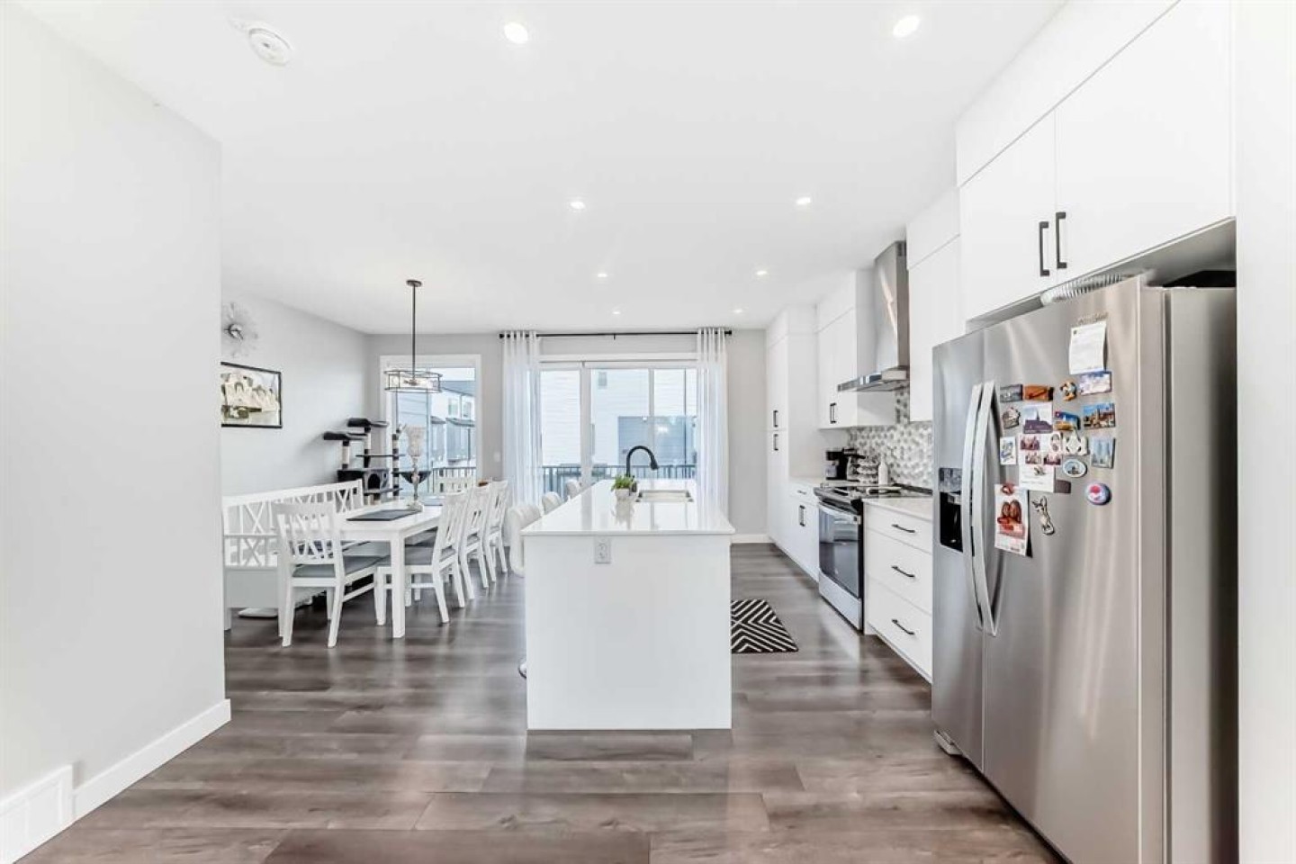 WELCOME to beautiful SKYVIEW RANCH. 3 storey townhome with a den on the main floor, DOUBLE ATTACHED GARAGE END UNIT , 3 bedrooms, 2.5 baths , AC System and LOW CONDO FEES. The main floor living area features an OPEN floor plan with 9' ceilings, LARGE BRIGHT WINDOWS, VINYL PLANKS flooring. BRIGHT & SPACIOUS kitchen with large island. COZY living room, Lots of natural light. Upper floor consists of Master Bedroom and an ensuite, 2 additional bedrooms with 4pc bath and laundry room completes the upper level. Future LRT station within walking distance, multiple schools and shopping nearby and a playground. Pls CALL NOW to view !!!