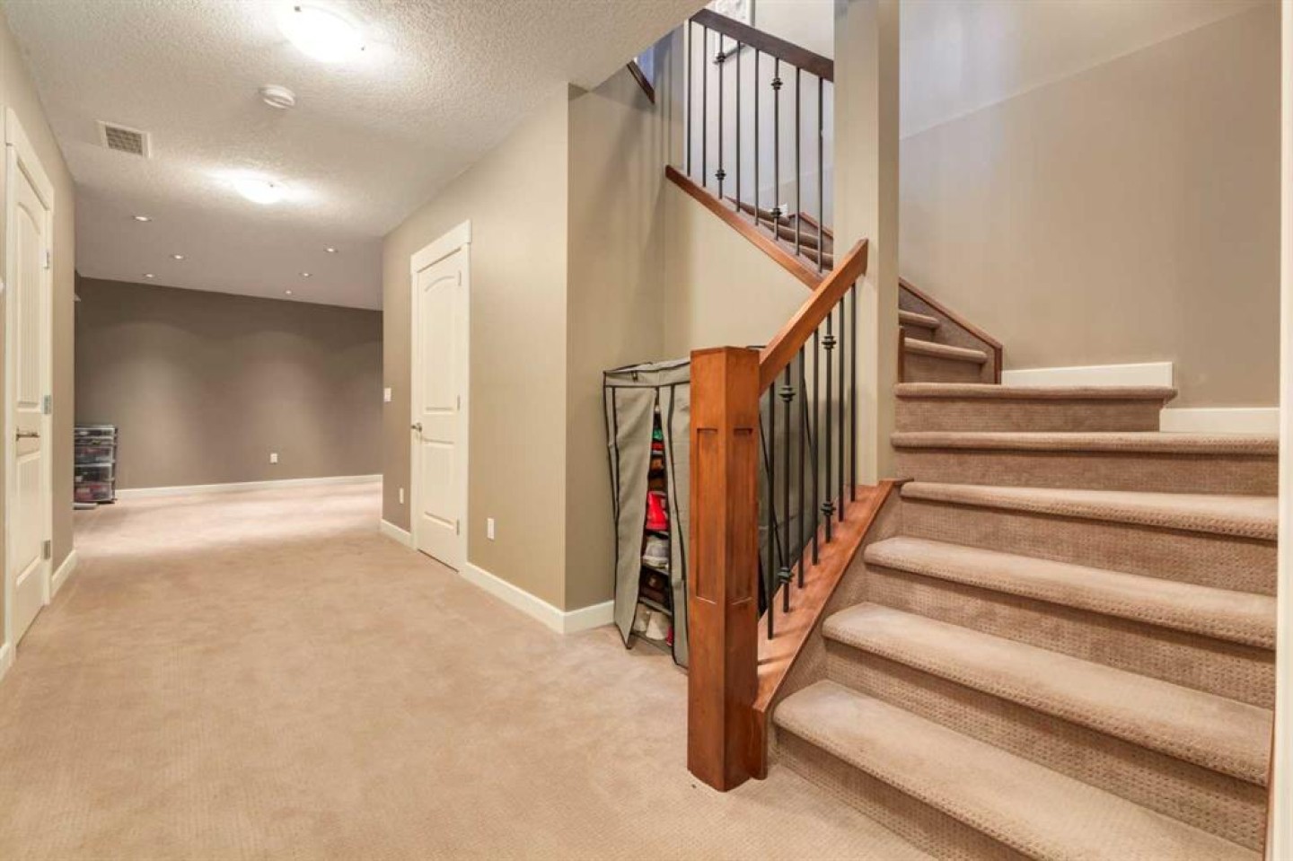 This stunning custom-built semi-detached home in the heart of Bowness offers exceptional style, comfort, and an unbeatable location. Charming curb appeal welcomes you with a front porch and durable Hardie Board siding. Rich maple hardwood floors flow throughout the open-concept main level, beginning with a cozy front family room featuring a gas fireplace and continuing into a spacious dining area and gourmet kitchen complete with full-height dark maple cabinetry, granite countertops, gas stove, built-in wine fridge, custom hood fan, travertine backsplash, and a large island with seating for three. A bright breakfast nook overlooks the private backyard with deck, privacy screen, and mature mountain ash tree, while a concrete walkway leads to the oversized double detached garage with additional storage. Upstairs, a skylight fills the space with natural light, complemented by elegant metal spindle railings. The primary suite offers vaulted ceilings, plush Berber carpet, and a spa-inspired ensuite with in-floor heat, dual sinks, granite counters, glass and tile shower with rain head, deep soaker tub, and a generous walk-in closet. Two additional bedrooms, a stylish main bathroom, and a convenient upper laundry room with sink complete this level. The fully finished lower level features 9-foot ceilings, in-floor heat, a large recreation area with corner bar and beverage fridge, a versatile flex room ideal for guests or a home gym, ample storage, and a two-piece powder room accented by a chandelier. Additional highlights include central vacuum, high-efficiency furnace, and sump pump. Enjoy a walkable lifestyle just steps to Main Street and Uptown Bowness with excellent local restaurants, cafés, and shops, minutes to Bow River pathways and Bowness Park—your year-round playground for summer picnics, river access, skating, and winter fun—with quick access to Winsport, downtown Calgary, and the Trans-Canada Highway for effortless mountain getaways.