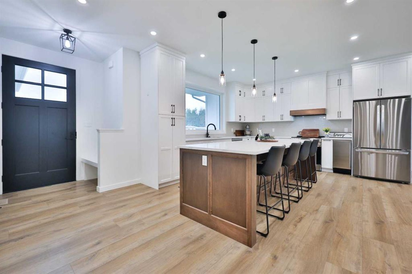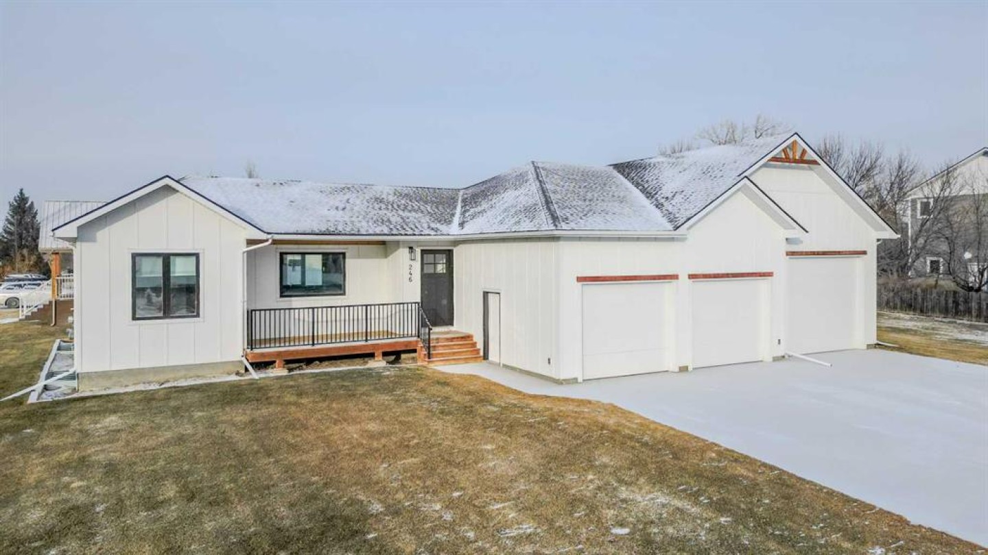 Welcome to luxury living in the peaceful community of Stirling—just a quick 20-minute drive from Lethbridge! This stunning, spacious home has been thoughtfully designed with comfort, function, and style in mind. At the heart of the home is a gorgeous kitchen featuring floor-to-ceiling cabinetry, a massive 10-foot island, and an abundance of storage—perfect for everything from casual family meals to entertaining guests. The open-concept main floor includes a cozy electric fireplace and stylish luxury vinyl plank flooring that ties the space together beautifully. You’ll appreciate the convenience of main floor laundry with a folding table and locker system, perfect for organizing coats, backpacks, and all the day-to-day essentials for a busy family. With six large bedrooms and four full bathrooms, there’s space for everyone!! The primary suite is a luxurious retreat with a spacious walk-in closet and a stunning ensuite featuring a curbless walk-in shower and double vanity. The fully finished basement features a wide open living area, perfect for movie nights, play space, or hosting guests. Plus, there’s a dedicated gym room, giving you the flexibility to stay active and healthy without ever leaving home. For those multi-generational families or families with older children, one of the bedrooms downstairs comes complete with its own ensuite bathroom as well! Oversized windows and an abundance of pot lights throughout the home ensure every space feels bright and welcoming! The triple attached garage includes a massive RV bay with a raised ceiling, gas heater so you can work in the garage year ‘round, and a fully finished interior—ideal for vehicles, hobbies, or additional storage!! Additional features include central air conditioning and underground sprinklers to keep your lawn green and vibrant all summer long. This one-of-a-kind home combines high-end finishes, functional design, and small-town charm. Don’t miss your chance to experience all it has to offer! Call your favourite REALTOR® and book your viewing today!