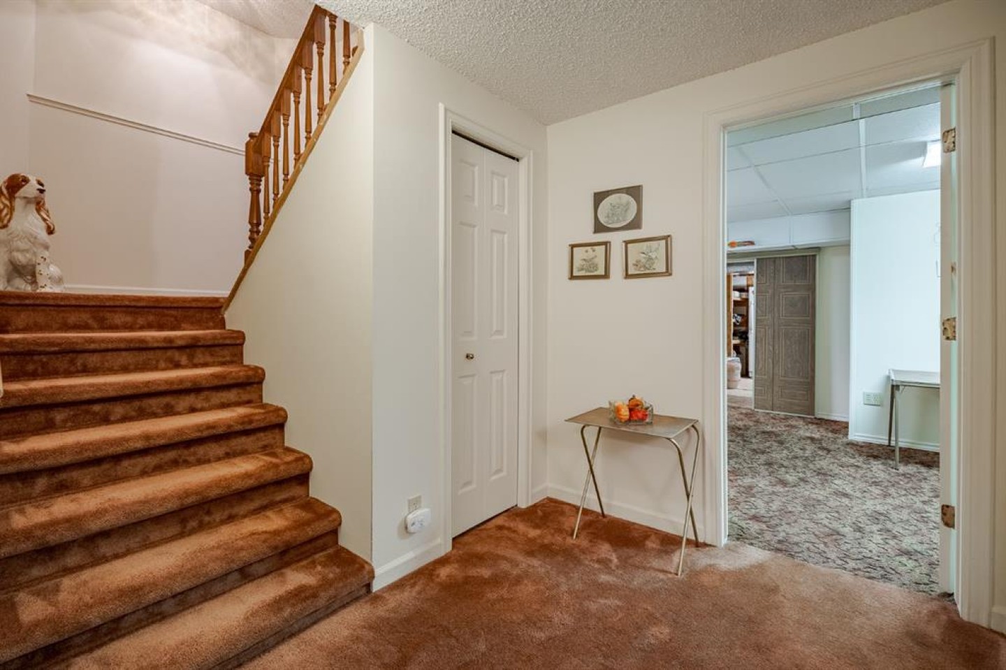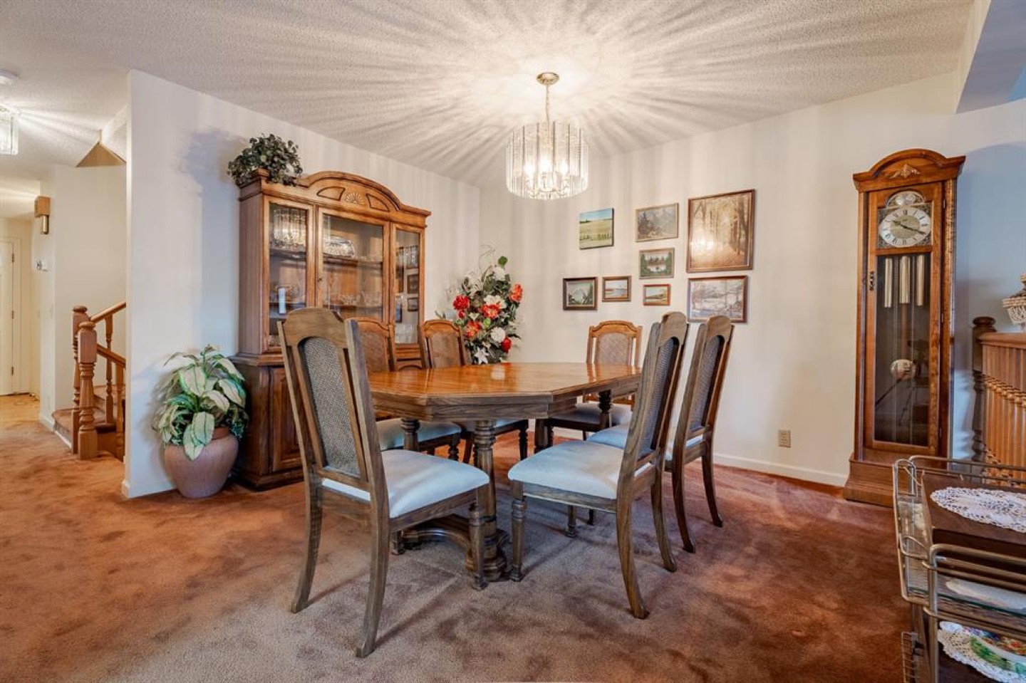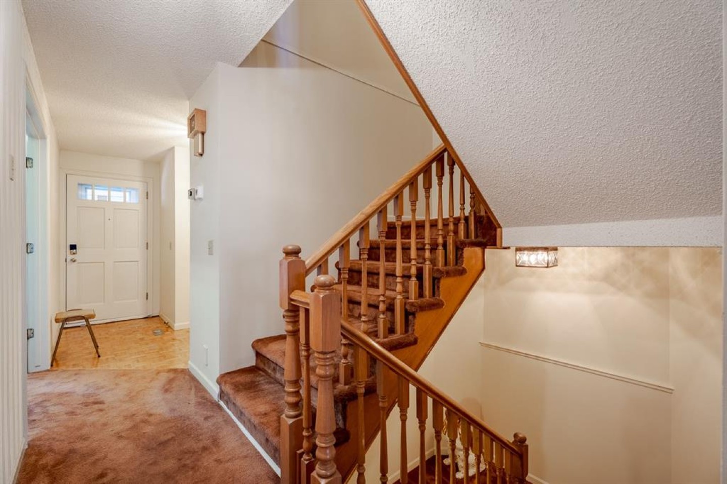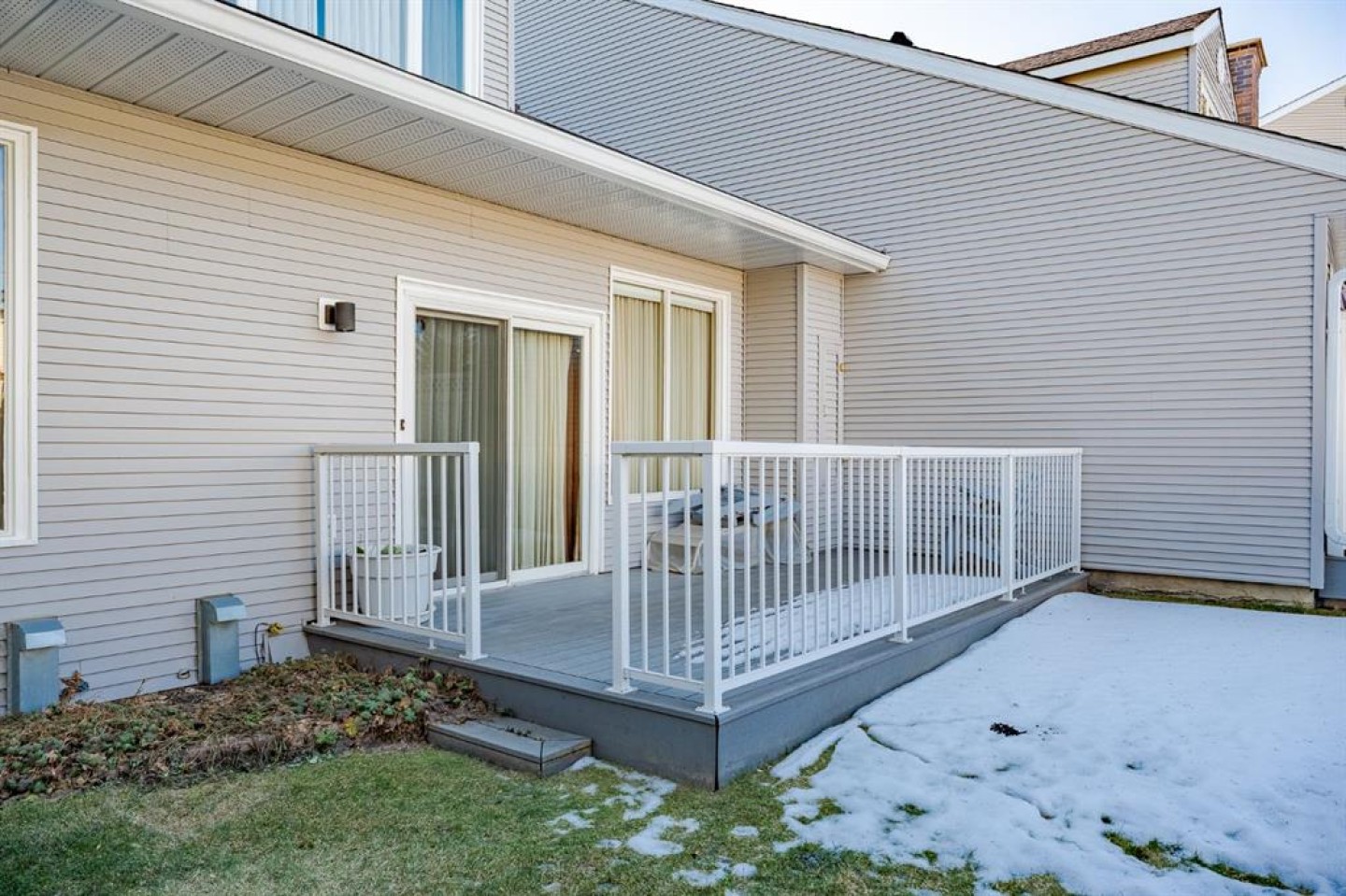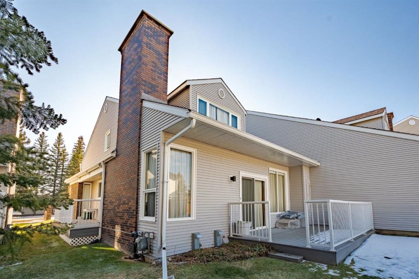Welcome to Woodridge Estates; ideally nestled alongside the parks and pathways of beautiful Fish Creek Park, this inviting two-storey semi-detached townhome offers over 1,960 sq. ft. of above-grade living space plus a fully developed lower level. You are promptly welcomed by a large foyer with gleaming parquet floors that adjoins a versatile office or flex room. The functional kitchen offers ample counter space for meal prep and entertaining, along with a bright breakfast nook that opens onto a deck—perfect for BBQing or enjoying your morning coffee. The kitchen also provides easy access to the formal dining room. Just a few steps down, the generous family room features a charming brick fireplace and access to a second deck, ideal for hosting family and friends. A two piece bathroom completes this level. Upstairs, the expansive primary bedroom includes a sitting area, walk-in closet, and a five-piece ensuite with jetted tub. The second bedroom is also generously sized and features its own walk-in closet. A four-piece main bath and convenient upper-level laundry complete this floor. The developed lower level offers a games area, additional flex space, and a two-piece bathroom, along with a large storage and utility room. The double attached garage is drywalled and insulated for added comfort. This home has excellent bones and offers a fantastic opportunity for updates to suit your style. Located in a quiet, upscale townhome community, it provides easy access to schools, transit, Anderson Road, Stoney Trail, Fishcreek Park and all the amenities—making it a wonderful place to call home.