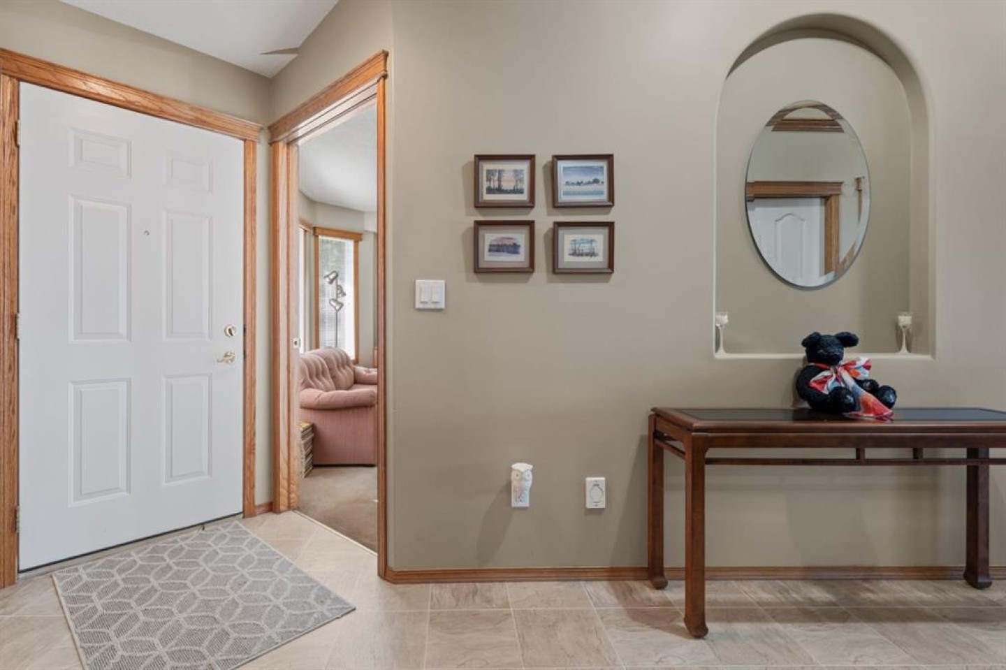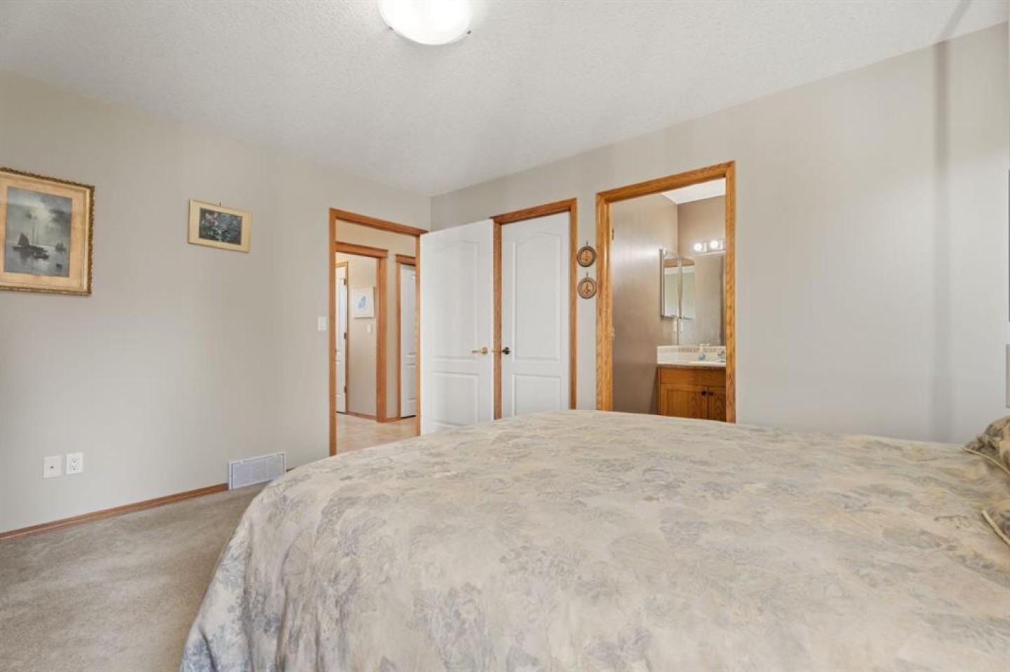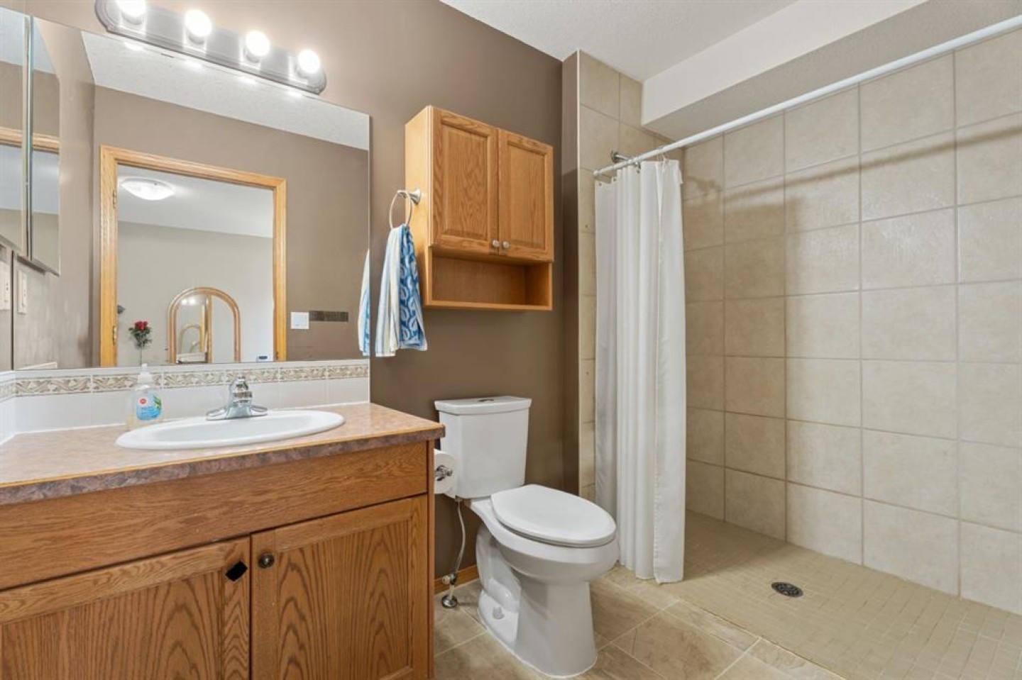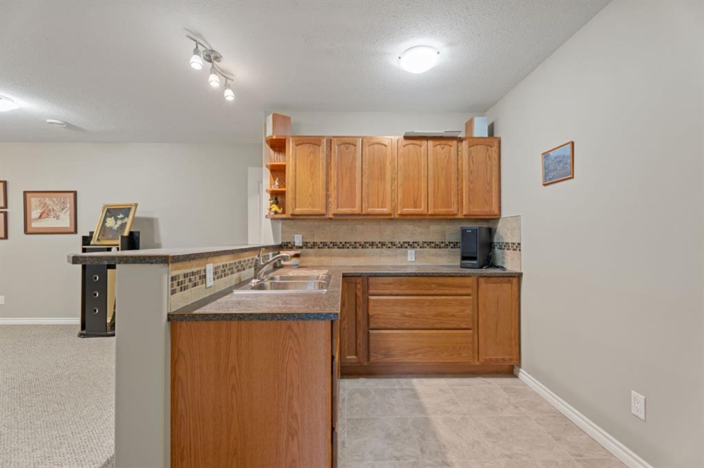Welcome Home! Imagine life backing onto the 18th hole with a pond view, a view of the prairie fields and the mountains with a TRIPLE GARAGE for the Golf Cart or extra vehicle parking or storage! This well maintained charming bungalow has it all including a stucco exterior, air conditioning, a GAS FIREPLACE in the main floor living room and HEATED FLOORS in the fully finished basement! Retire or slow down your pace of life to the wonderful community of Vulcan, with a hospital, close to shopping, schools and so many things to get involved with year round. This home has a generously sized primary on the main floor with a fully accessible 3 piece ensuite and large walk-in closet. A large chef kitchen with a breakfast bar and dining room looking out at the western facing patio! The patio is equipped with a gas line for the BBQ and a large space to enjoy the outdoors with your own outside oasis! A cozy living room with a gas fireplace and a large gathering area to relax and slow down with a glass of wine after a day on the Greens! The laundry room is also on the main floor as well as a bright secondary bedroom. Downstairs is fully finished with in floor heat, a large recreation room, a wet bar as well a bedroom, and a 4 piece bathroom! There is tons of space for storage downstairs as well as a hobby room! Vacuflo is throughout the main floor and basement and even in the garage. Outside you have Underground Sprinklers and automatic watering for the flower beds to enjoy maintenance free yard in the summer months!! Come see this beautiful home today backing onto the Greens today in Whispering Creek Vulcan!