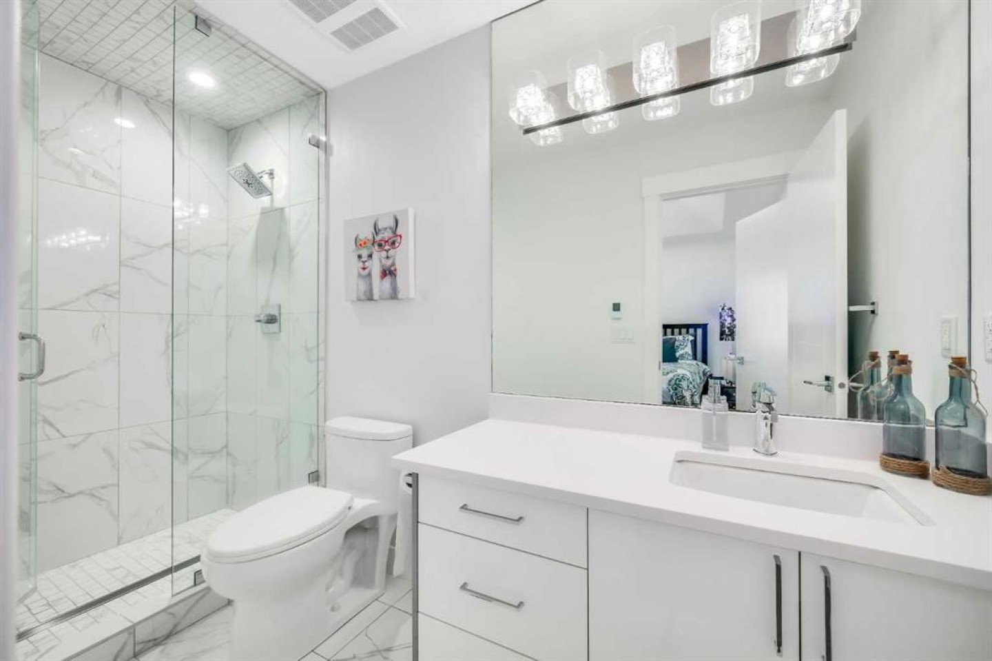 Upstairs offers a luxurious primary retreat with a spa-inspired ensuite featuring heated floors and a jetted tub, plus two additional bedrooms each with their own private ensuite, and convenient upper-level laundry.