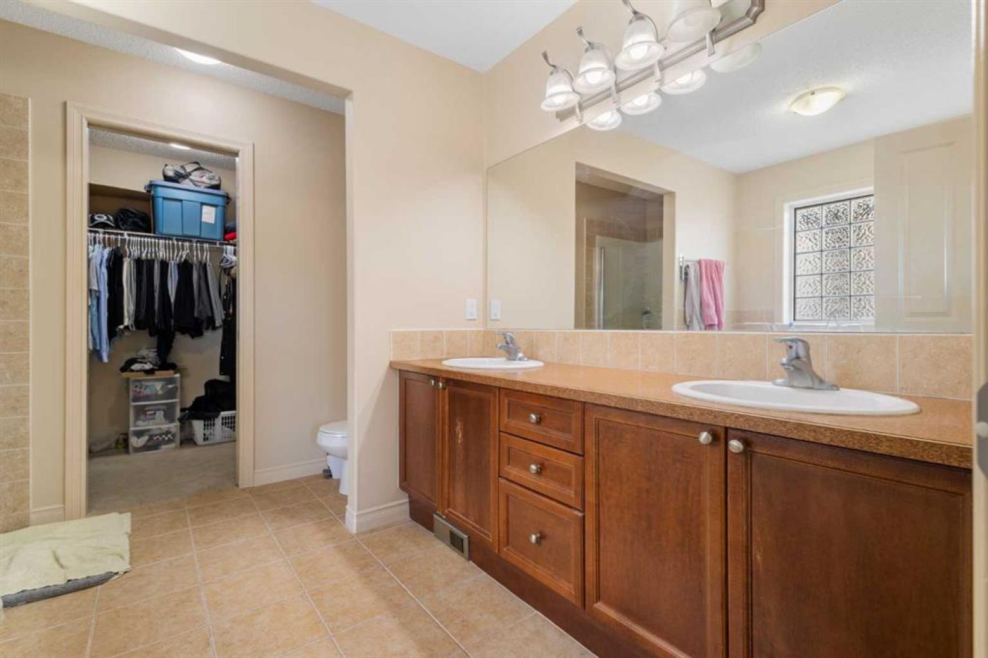 Impressive two-storey walkout home offering 2,484 sq ft, backing west onto natural green space with stunning mountain views. The upper level features four spacious bedrooms, including a generous primary retreat with walk-in closet and a large ensuite complete with double sinks, a jetted soaker tub, and a separate shower, along with a bright bonus room ideal for family living.