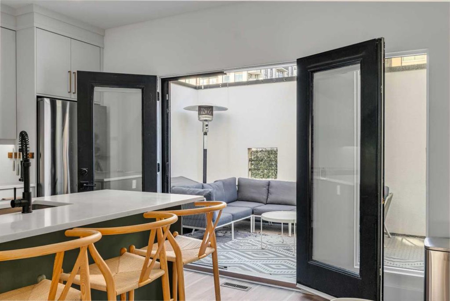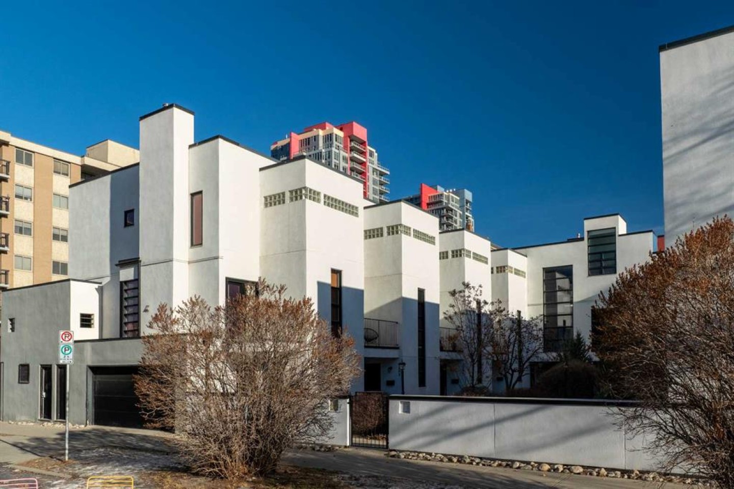***OPEN HOUSE: Saturday, January 24th 12:00 - 2:00 PM*** Architecturally distinct and thoughtfully renovated, this STURGESS ARCHITECTURE townhome offers refined urban living in the heart of Betline with SUNNY SOUTH EXPOSURE overlooking a quiet landscaped courtyard. Entry-level access provides a practical foyer with DIRECT GARAGE CONNECTION, creating everyday convenience while maintaining privacy from the street. The main living level is designed around an OPEN-CONCEPT FLOOR PLAN with 9’ CEILINGS and abundant natural light anchored by a dramatic two-storey window wall. The renovated kitchen blends form and function with QUARTZ COUNTERTOPS, A STATEMENT ISLAND WITH CRUSHED GRANITE SINK, FULL-HEIGHT CABINETRY, STAINLESS STEEL APPLIANCES, and A PANTRY WITH PULL-OUT STORAGE, supporting both daily living and entertaining. French doors extend the space outdoors to an OVERSIZED 177 SQ. FT. PRIVATE PATIO, ideal for relaxed evenings and summer gatherings. The main living area is centered around a TWO-SIDED GAS FIREPLACE that provides warmth and architectural interest without disrupting flow, while additional French doors open to a SECOND BALCONY overlooking the courtyard. A tucked-away powder room with stylish wallpaper completes this level. The upper floor is arranged for comfort and flexibility. The primary bedroom easily accommodates a king-sized layout and features a LARGE WALK-IN CLOSET with CHEATER ENSUITE ACCESS to the main bathroom. The 4-piece bathroom includes a STAND-UP SHOWER and A SUNNY SKYLIGHT that fills the space with natural light. The second bedroom enjoys SOUTH-FACING COURTYARD VIEWS, while an OPEN FLEX SPACE with GLASS BLOCK DETAILS creates an ideal office nook or reading area. Laundry is also conveniently located on this level. WIDE-PLANK LAMINATE AND TILE FLOORING flow throughout with NO CARPET, complemented by FLAT-PAINTED CEILINGS for a clean, modern finish. Notable upgrades include CENTRAL AIR CONDITIONING, A HIGH-EFFICIENCY FURNACE, and A NEWER HOT WATER TANK, offering long-term comfort and efficiency. Outdoor living is enhanced by TWO PRIVATE OUTDOOR SPACES. Parking is thoughtfully arranged with TWO COVERED STALLS, comprised of A PRIVATE INSULATED ATTACHED GARAGE AND A COVERED CARPORT (tandem). Located on a quiet street yet surrounded by everyday amenities, this home offers exceptional walkability with CONNAUGHT SCHOOL AND PLAYGROUND ACROSS THE STREET, easy access to parks, bike lanes, and green space, and close proximity to grocery stores, downtown, the tennis club and the shops and dining along 17TH AVENUE, delivering a highly livable and design-forward inner-city lifestyle. An exceptional setting with rare long-term upside. The adjacent street is slated for permanent transformation into a landscaped green space through an innovative public-realm project by SPECTACLE Bureau and The Tula Project, bringing ENHANCED GREENERY, REDUCED TRAFFIC, AND A CALMER STREETSCAPE that elevates both daily living and future appeal.