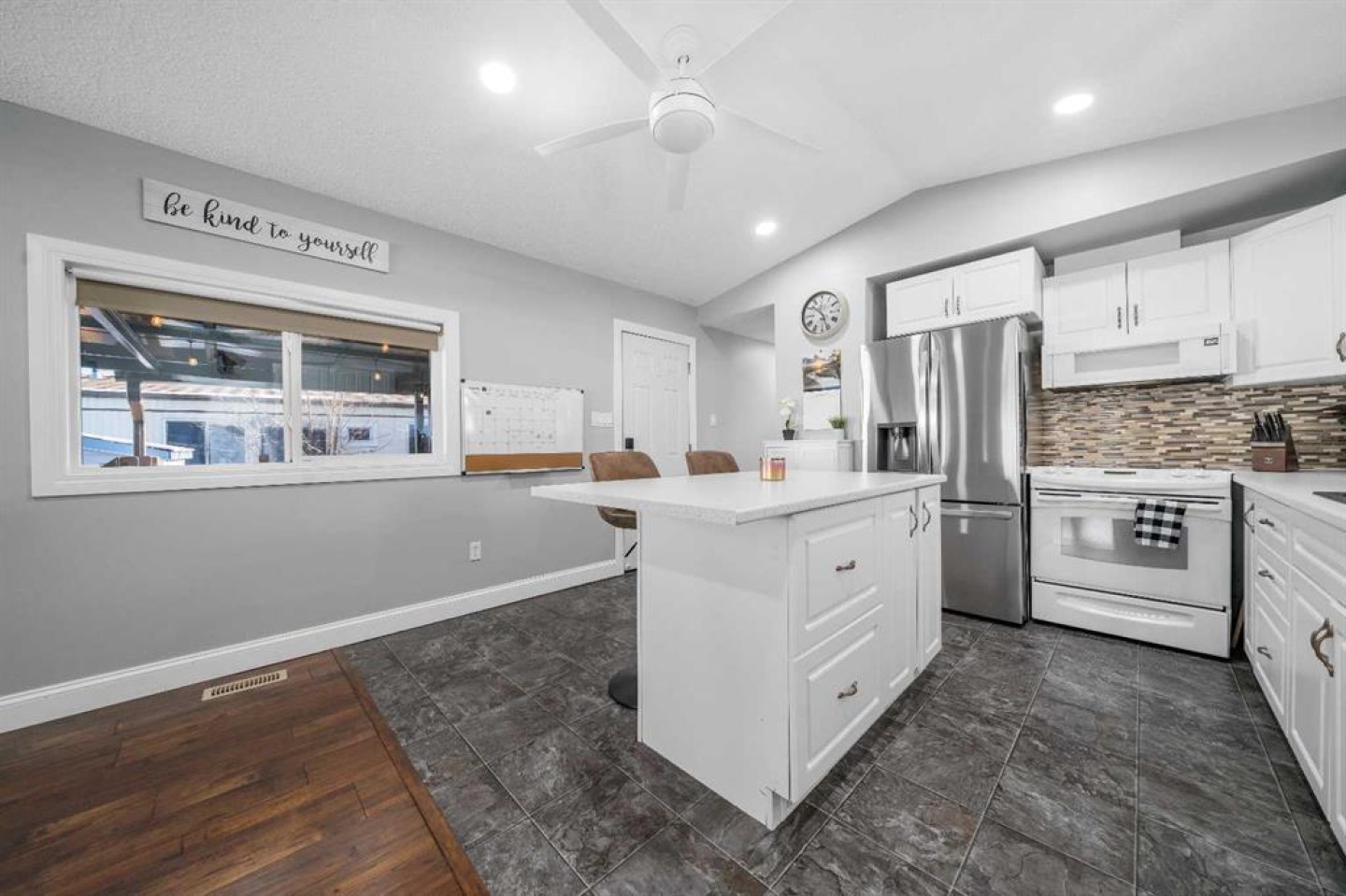 Ceiling Fan(s), Kitchen Island, Laminate Counters, No Smoking Home, Open Floorplan, Vaulted Ceiling(s), Vinyl Windows