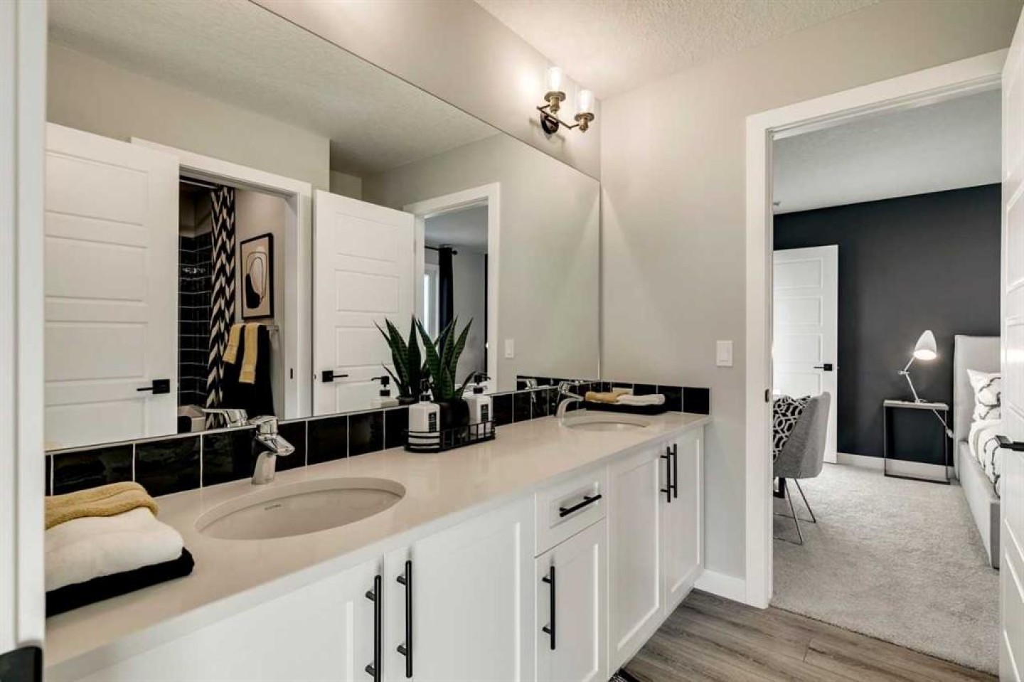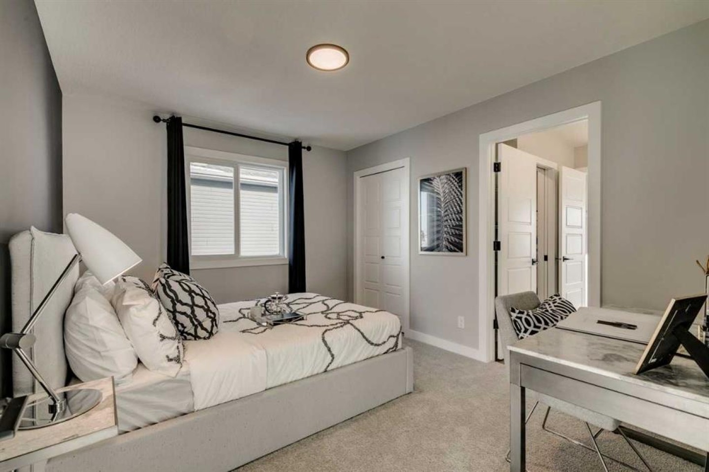 This beautifully upgraded family home offers style, space, and functionality. Built by a trusted builder with over 70 years of experience, this home showcases on-trend, designer-curated interior selections tailored for a home that feels personalized to you. Energy efficient and smart home features, plus moving concierge This home features a 3-car garage, main floor bedroom with full bath, and a side entrance for added flexibility. The executive kitchen shines with built-in stainless steel appliances, gas cooktop, chimney hoodfan, and a separate spice kitchen with gas range and French door. A walk-through pantry with wood shelving adds smart storage. Enjoy the warmth of the electric fireplace, vaulted ceiling in the bonus room, and extra windows for natural light. The luxurious 5-piece ensuite includes a soaker tub and a stunning walk-in tiled shower with dual glass walls. All bathrooms feature elegant tile flooring, and the upper main bath offers dual sinks—perfect for busy mornings.This energy-efficient home is Built Green certified and includes triple-pane windows, a high-efficiency furnace, and a solar chase for a solar-ready setup. With blower door testing that may be eligible for up to 25% mortgage insurance savings, plus an electric car charger rough-in, it’s designed for sustainable, future-forward living. Featuring a full range of smart home technology, this home includes a programmable thermostat, ring camera doorbell, smart front door lock, smart and motion-activated switches—all seamlessly controlled via an Amazon Alexa touchscreen hub. Photos are representative.