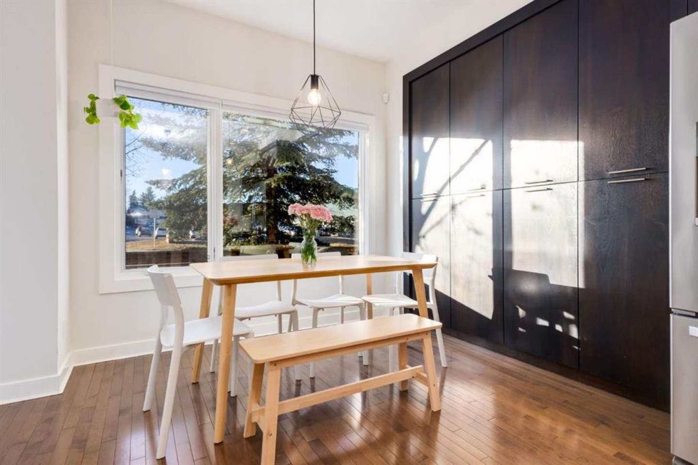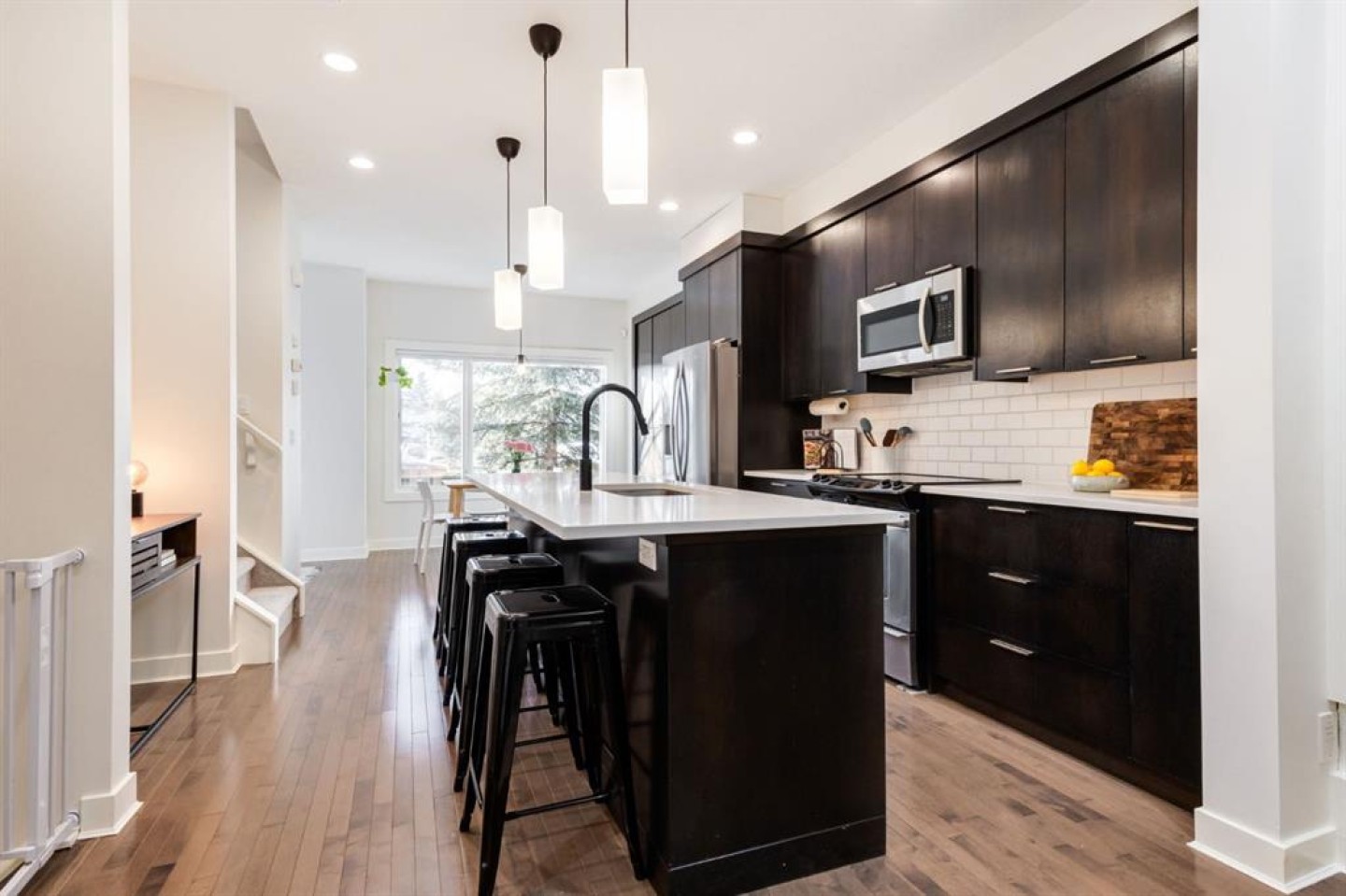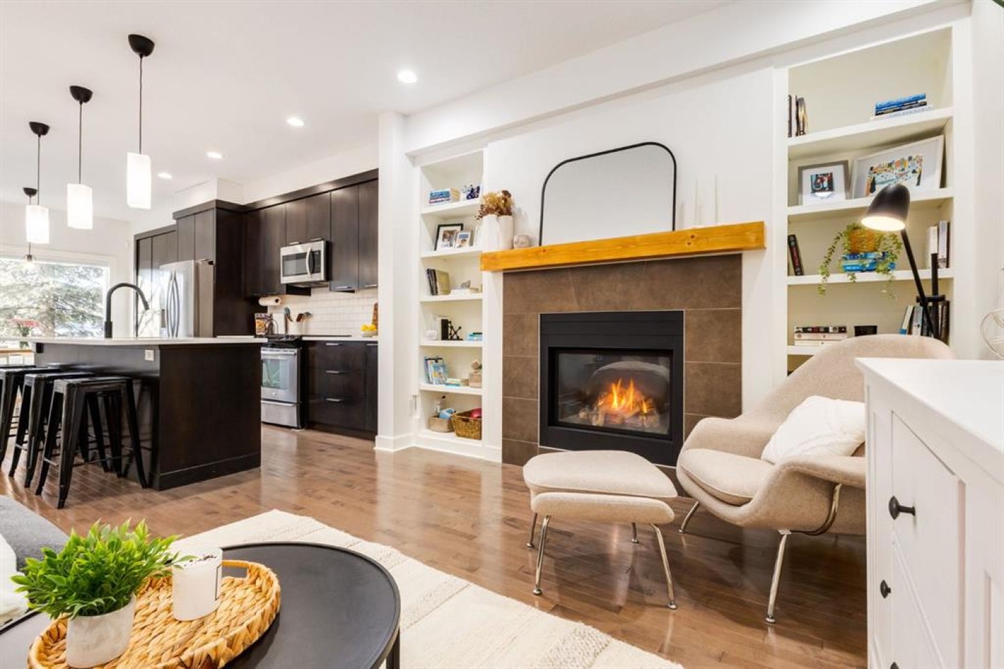 Welcome to this beautifully updated, open concept home located in highly coveted Killarney, and ideally situated across from a massive green space. Showcasing a fully enclosed west yard that boasts a sprawling patio that is drenched in sunlight for most of the day and creates the perfect place to relax and unwind with family, friends, and pets. As you enter the home, you are greeted by a bright front entryway that is flooded with natural light through your west facing windows and door. The main floor highlights include beautiful hardwood flooring and an open concept layout that is perfect for all occasions. The expansive kitchen has been upgraded to include beautiful quartz countertops, stylish pendant lighting, stainless steel appliances, a classic Subway tile backsplash, and stunning full-height cabinetry a pantry and tons of additional storage space. The living room boasts south facing transom windows, a cozy gas fireplace with stylish tile surround, a bespoke wooden mantle, and custom built-in bookshelves symmetrically flanking the fireplace. The main floor also features a designated dining space with views of the park through large, west facing windows. Upstairs features your expansive primary suite with room for king-sized furniture, park views with mature trees out your windows, and a large walk-in closet. The luxurious upstairs 5 piece bathroom has been tastefully updated to include dual vanities, tons of storage, a spacious stand-up shower, and a large separate soaker tub. The large second bedroom is located down the fall from the primary bedroom providing a thoughtful layout with excellent privacy. Downstairs features high-ceilings, a large media space, a flex space for an additional office, a Murphy bed and full bathroom for your guests, and ample storage. This home truly has everything you need to enjoy a vibrant inner-city lifestyle and comes complete with a single detached garage. Situated across from a green space and the Killarney Aquatic Centre, this home provides incredible access to public transit, all the amenities you need and affords a quick commute downtown, to the mountains, to 17th AVE, Killarney off-leash dog park and more.