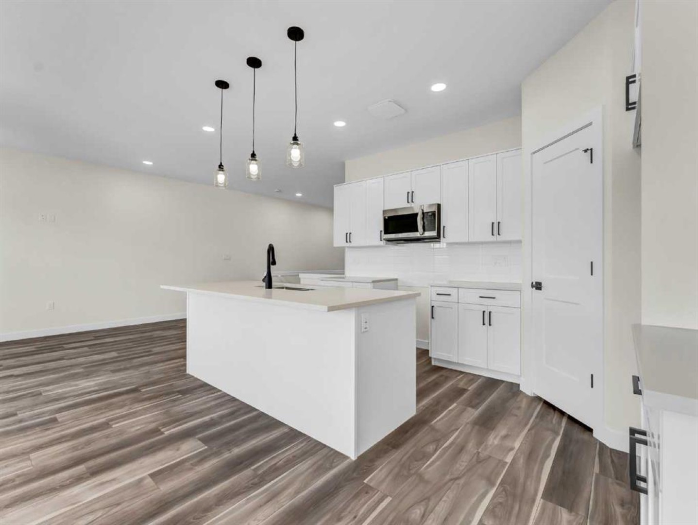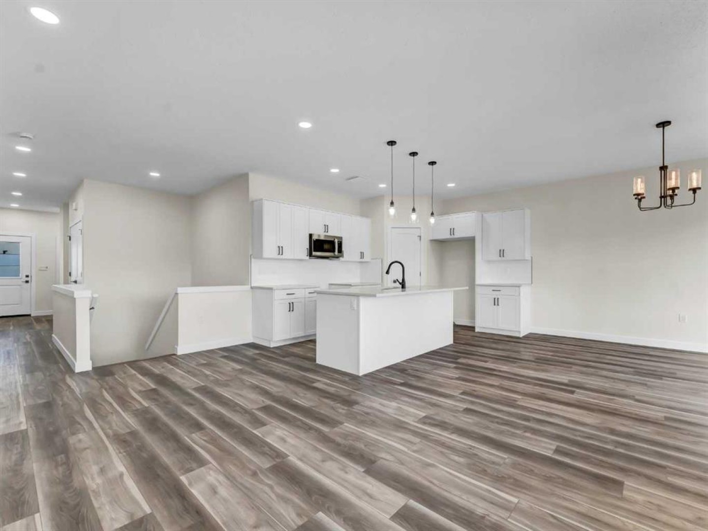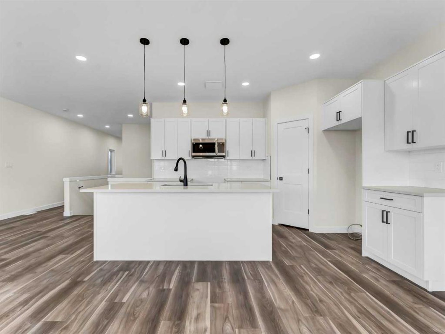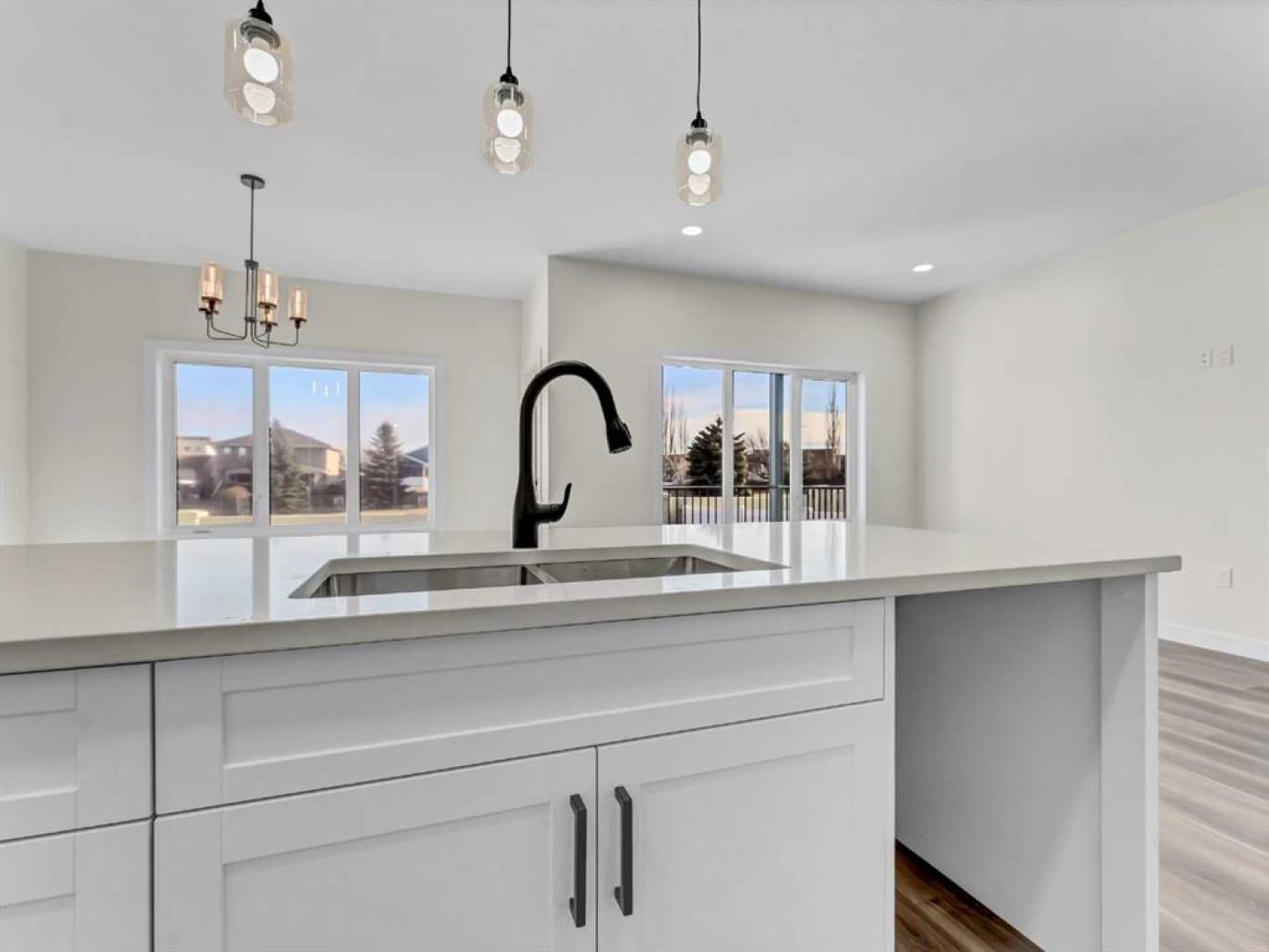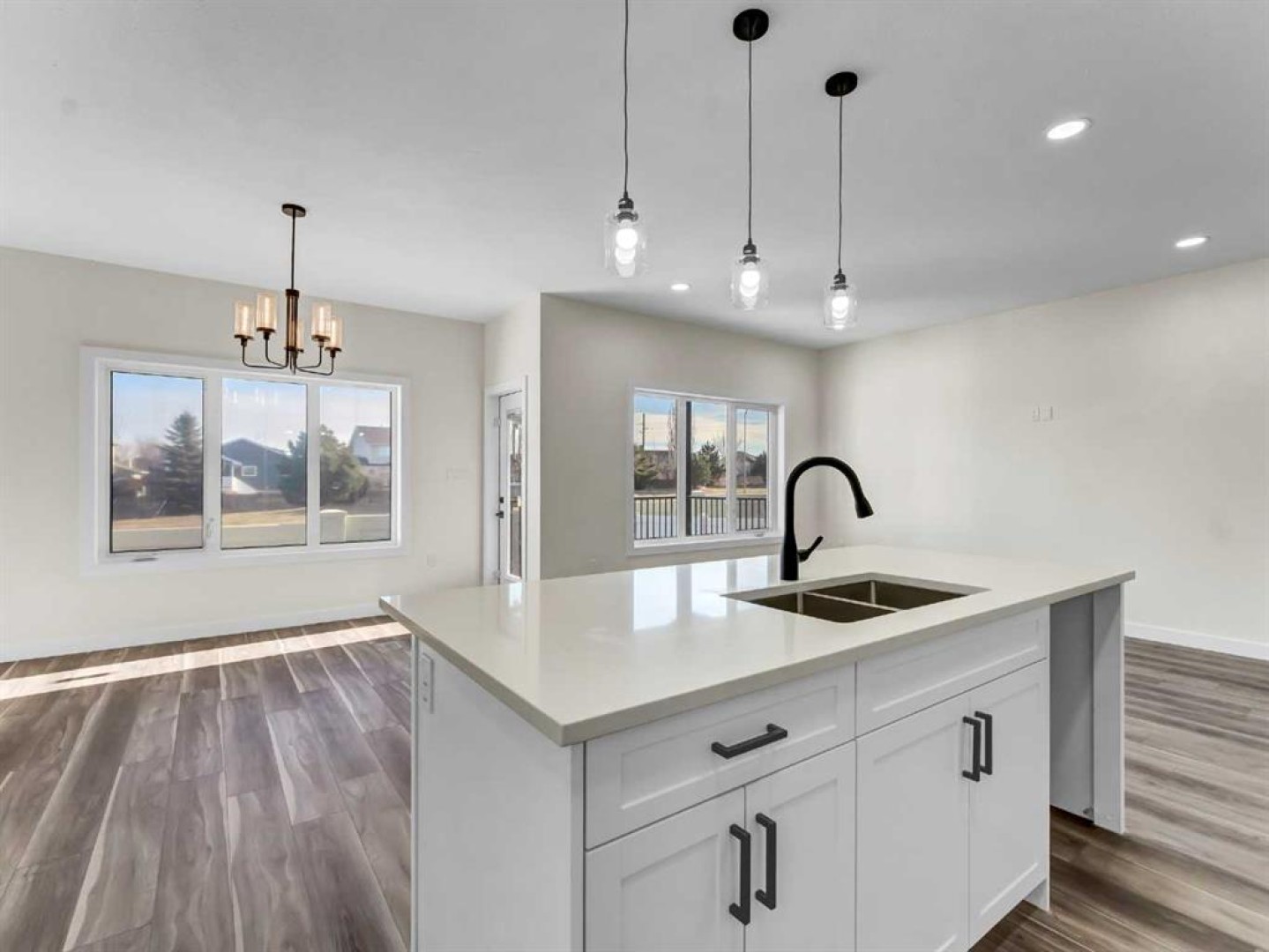 This beautiful new construction bungalow offers the perfect blend of style, comfort, and flexibility with over 1,100 sq. ft. of thoughtfully designed main floor living. Located in a growing community, this property is fully completed from top to bottom and move-in ready for a family to call it home. Step inside to a bright and open main level featuring luxury vinyl plank flooring throughout and a seamless flow between the spacious kitchen, dining, and living areas—ideal for both everyday living and entertaining. The kitchen showcases crisp white cabinetry, quartz countertops, a corner pantry, and a large central island offering ample prep and storage space. The adjacent dining and living areas open onto a 12' x 8' covered deck, perfect for relaxing or enjoying easy indoor-outdoor living. The main floor is anchored by a generous primary retreat with a walk-in closet and a sleek 4-piece ensuite, along with a convenient 2-piece powder room and main floor laundry. Downstairs, the fully finished basement expands your living space with two additional bedrooms, a full bathroom, and a large family room—ideal for movie nights, guests, or a kids’ hangout space. Completing the package is a double attached garage, providing plenty of room for vehicles, storage, and hobbies.