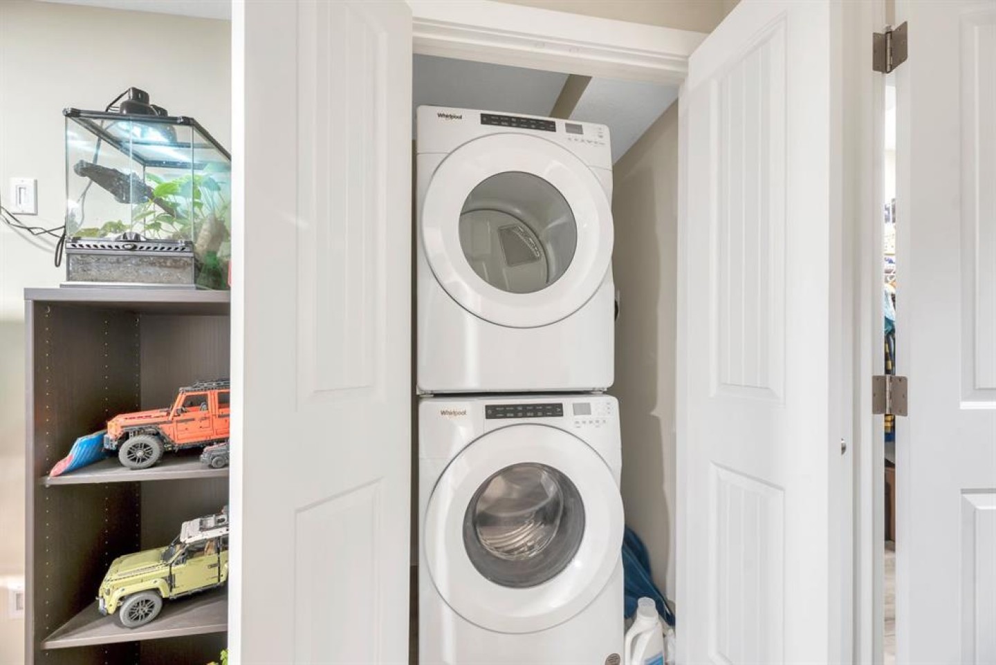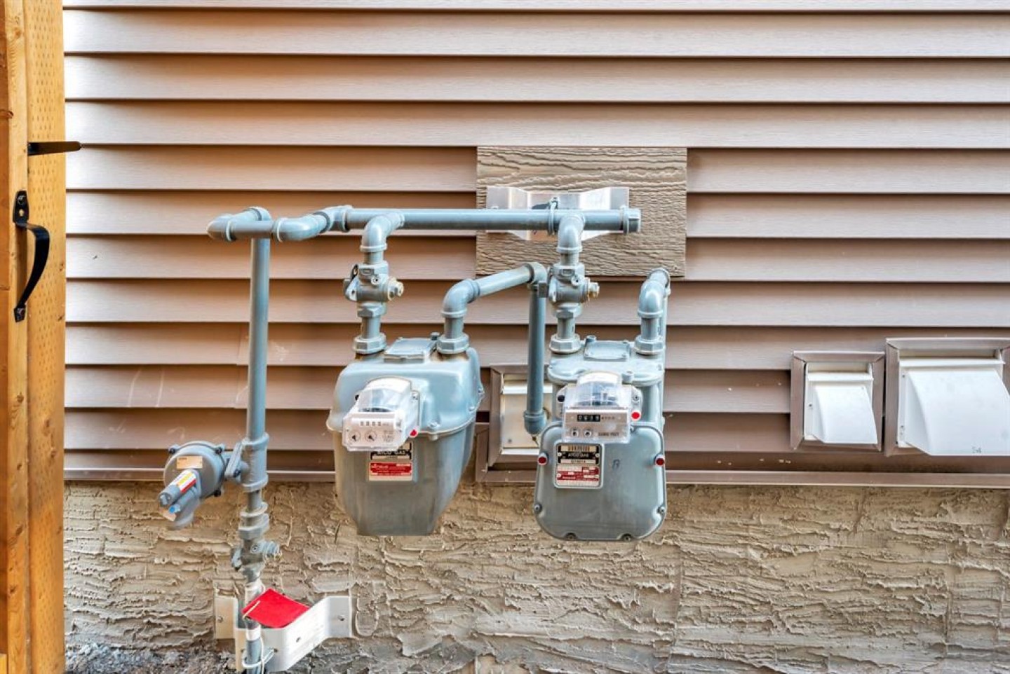 The maintenance-free backyard is fully fenced and complete with a cement patio and gas line for BBQ, ideal for outdoor enjoyment. The double detached garage is insulated, drywalled, and equipped with extra storage shelving, with the added benefit of joined garages allowing a full 4’ walkway to the rear alley. A 50-amp breaker for future EV charging, electrical hookup for A/C, keyless entry, Ring doorbell, and upgraded lighting package further elevate the home’s value.