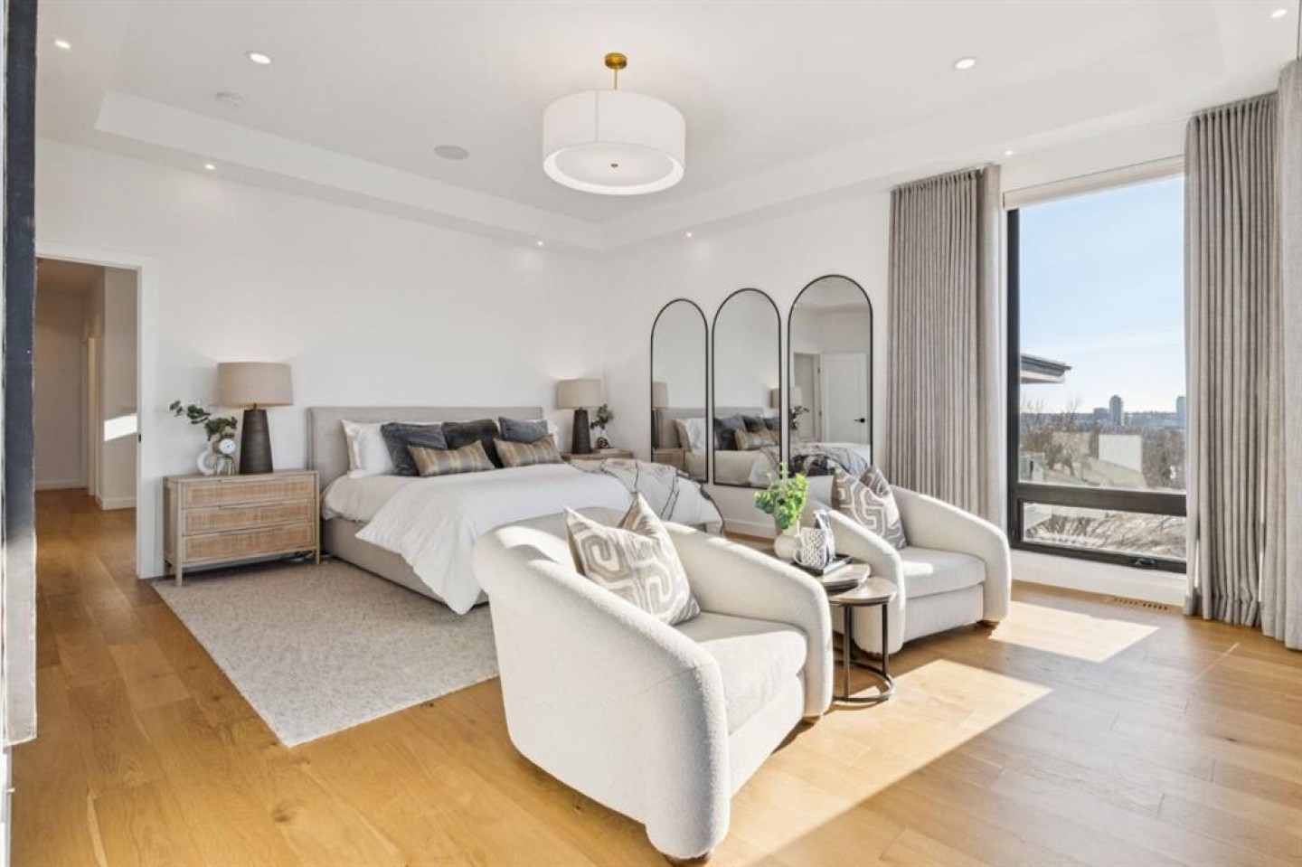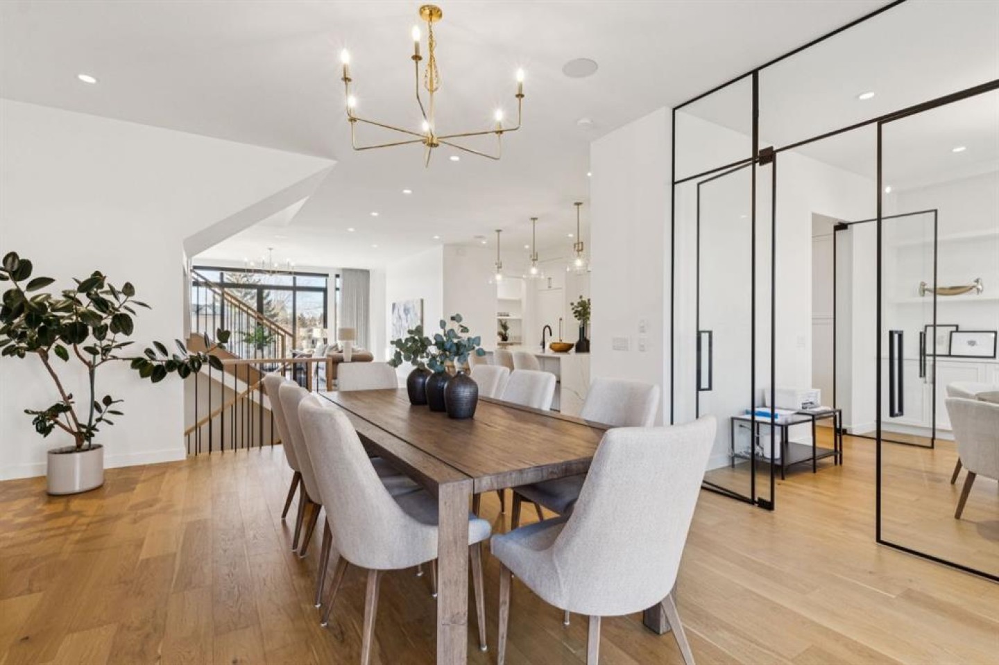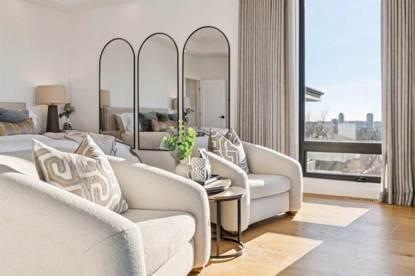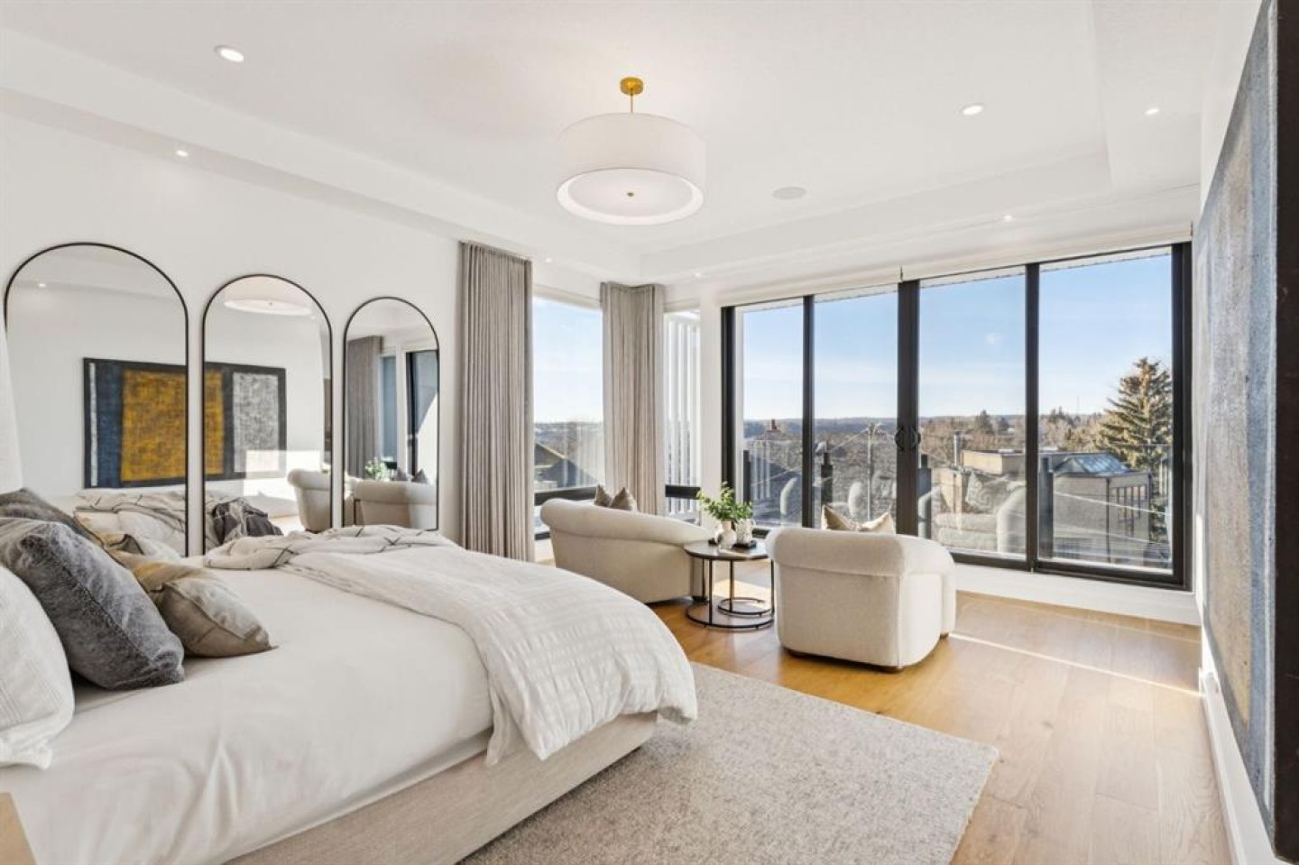 Discover a sensational hillside oasis in the exclusive inner-city community of Briar Hill. Ideally located on a peaceful street, this beautiful home offers over 4,600 square feet of contemporary living space and sweeping views of the city skyline and the Rocky Mountains. Sunlight streams through floor-to-ceiling windows, filling the open main floor with natural light. A heated porcelain-tiled foyer, 10-foot ceilings, and wide-plank white oak floors throughout provide warmth and sophistication. Relax by the modern gas fireplace on quiet winter evenings with a book or with friends and family for conversation and connection. The chef’s dream kitchen features a large quartz-topped island with cabinetry on both sides, ideal for meal prep and casual dining. Premium Italian-designed Fulgor Milano appliances—including a professional 6-burner gas stove, an integrated warming drawer, and a combi speed oven—make entertaining seamless. The butler’s pantry adds functionality with an additional workspace, storage, and a wine/beverage fridge for extra convenience. Host memorable dinners in the expansive dining room, with sliding doors to a private back patio and backyard, which is perfect for BBQ's and al fresco dining in warmer months. The private office, accessible from the kitchen and backyard, is filled with morning light and offers a tranquil, creative workspace. Upstairs, the serene primary suite impresses with a 10-foot tray ceiling and a second balcony with west-facing mountain views. A cozy seating area is perfect for morning coffee, watching the city wake, and enjoying the incredible, vibrant Calgary sunsets. The luxurious ensuite has a massive double steam shower with a bench, heated floors, oversized soaker tub, dual vanities, and a large walk-in closet. Begin and end your day with relaxation and rejuvenation in the bonus wellness room, featuring an authentic Finnish sauna with a Bluetooth sound system. Two additional bedrooms with oversized windows, spectacular city views, and walk-in closets provide comfort for family or guests. A convenient laundry room with sink and storage completes the upper level. The lower level includes a spacious rec room with a wet bar, a beverage fridge, and flex space for a gym or game tables. The entertainment area is ideal for movie nights or game day parties. The fourth bedroom and full bath provide guests with privacy and ease. Two massive storage rooms and a large mudroom lead to the oversized 698 sq. ft. heated double garage, with even more storage or a perfect spot for a workshop. Additional highlights include a Sonos audio system, Hunter Douglas electronic window coverings, Lutron integrative lighting, hydronic in-floor heating in the basement, and central air conditioning. Only 10 minutes from downtown, a 20-minute walk to shops and restaurants in Kensington, and steps from walking paths on the hillside. Experience luxury, comfort, and breathtaking surroundings—this is the quintessential urban lifestyle you’ve been waiting for.