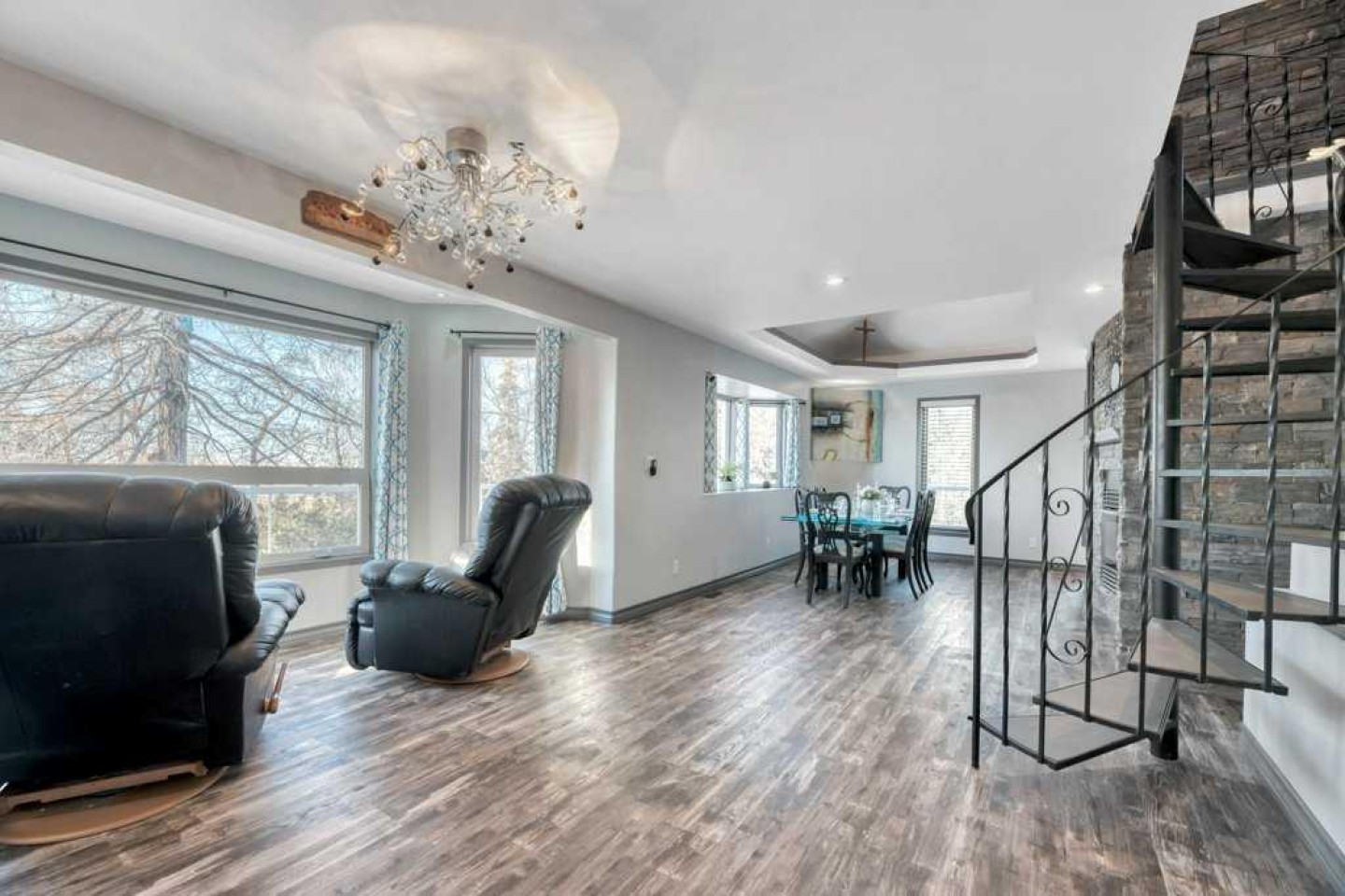 A rare property with one-of-a-kind home. This fully wooded acreage is where space, privacy, and everyday comfort come together—just 20 minutes from Strathmore. Set on 1.89 acres, this property offers the perfect blend of country living with the convenience busy families need. This walk-out bungalow with a loft offers 2,997 sq ft of total developed living space and a layout designed to grow with your family. With five bedrooms, there’s room for kids, guests, home offices, and hobbies. Vaulted ceilings, multiple skylights, and the open loft space flood the home with natural light and give it a bright, welcoming feel you’ll notice the moment you walk in. A spiral staircase adds character and connects the spaces in a way that feels fun, functional, and far from cookie-cutter. Outside is where family memories are made. A deck that wraps the entire home creates endless options for outdoor living—morning coffee, family dinners, kids playing, or entertaining friends. A hot tub is included, offering a private place to unwind. The acreage is perfectly set up for both play and practicality. Equipped with air conditioning for year-round comfort, a detached double garage, a tack shed or playhouse, and a root cellar cold room for extra storage. The mature trees provide privacy while still leaving plenty of open space for kids to explore and enjoy the outdoors. If you’ve been dreaming of more room to breathe, a safe place for your family to grow, and a home with real personality—this property delivers.